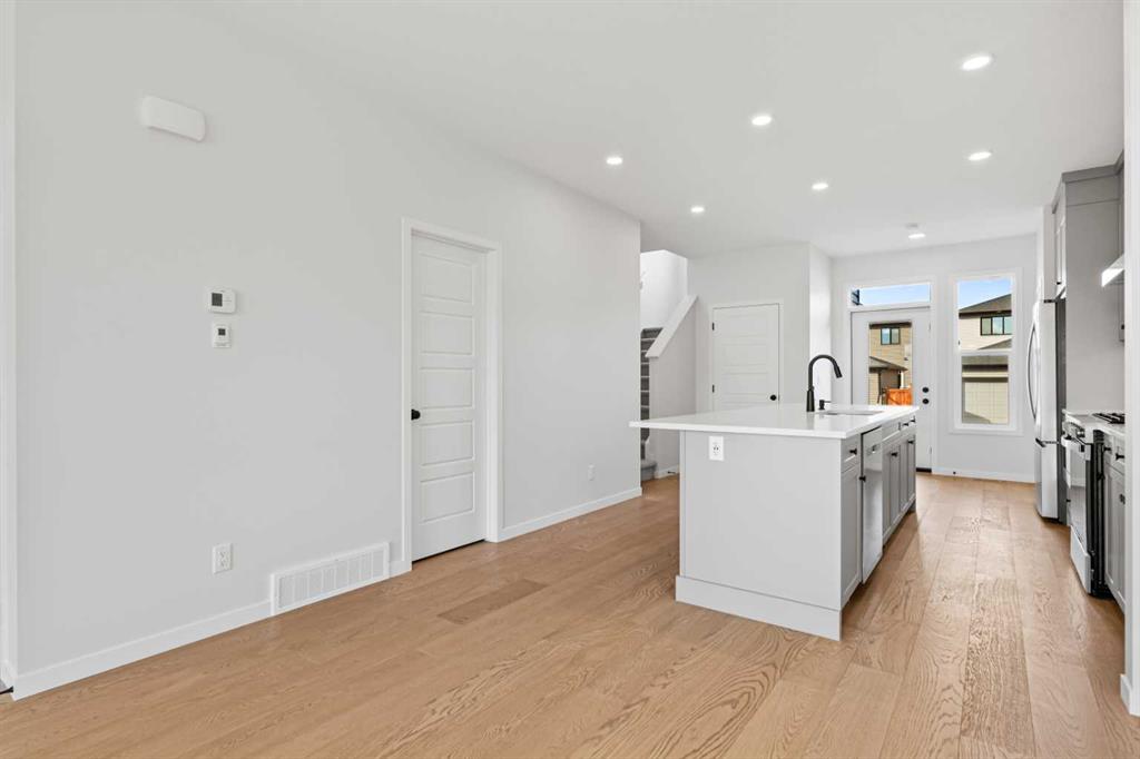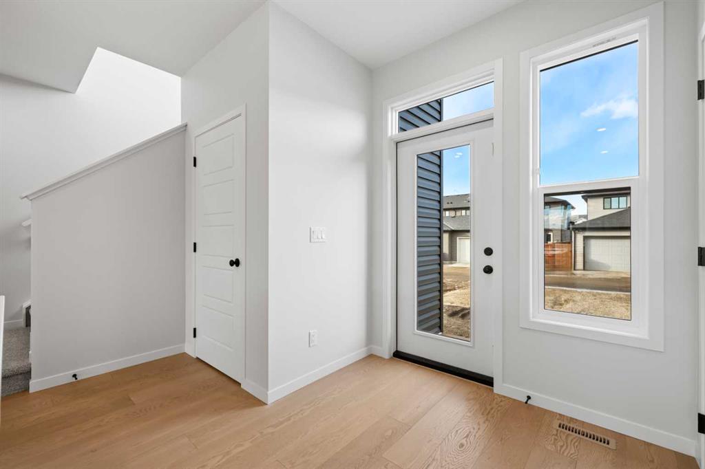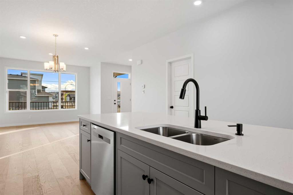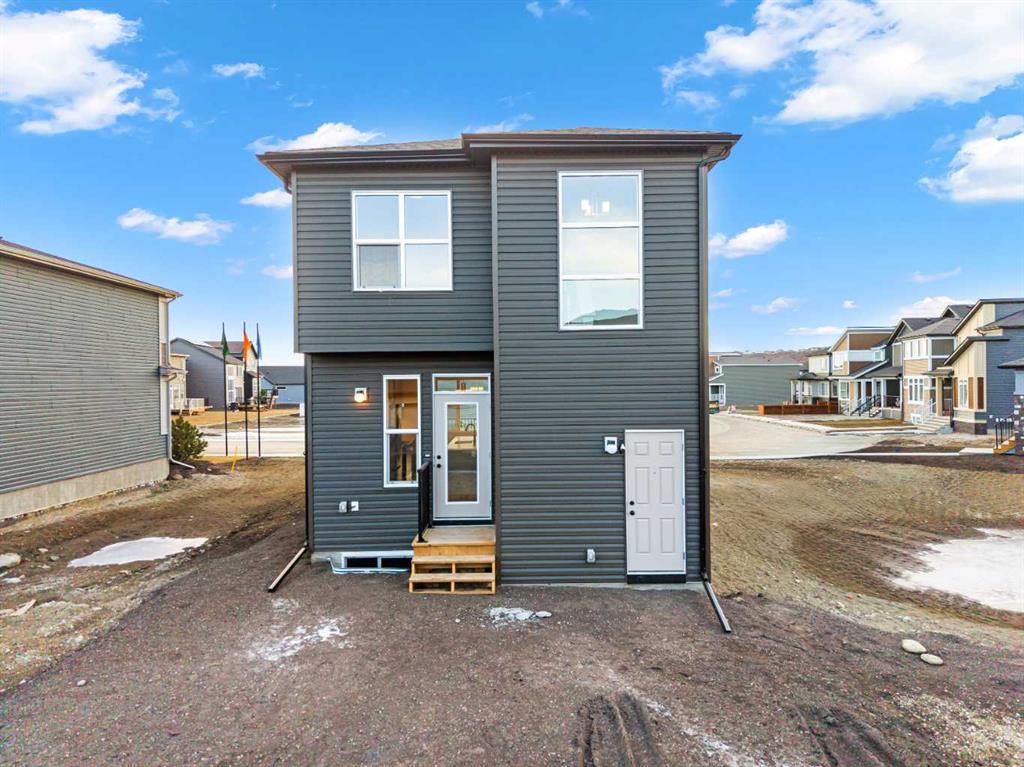 Located in the scenic and growing community of Wolf Willow, 83 Wolf Hollow Rise SE offers a thoughtfully designed two-storey home by Trico Homes that blends modern finishes, functional living spaces, and an exceptional location close to nature. With approximately 1,578 sq. ft. above grade, this brand-new home is ideal for families, first-time buyers, or anyone seeking contemporary comfort in a vibrant southeast Calgary neighbourhood. The main level features a bright open-concept layout enhanced by high ceilings and large windows that allow natural light to flow throughout the space. The kitchen is designed to be both stylish and practical, showcasing quartz countertops, a spacious kitchen island, breakfast bar seating, and a gas stove—perfect for everyday cooking or entertaining guests. The seamless connection between the kitchen, dining area, and living room creates a welcoming environment for gatherings and daily living. A convenient two-piece bathroom completes the main floor. Upstairs, you’ll find three bedrooms, including a spacious primary suite with a walk-in closet and private ensuite featuring a double vanity and relaxing soaking tub. Two additional bedrooms share a well-appointed four-piece bathroom, making the upper level ideal for family living. The laundry area is conveniently located in the upper hallway, simplifying everyday routines. The unfinished basement provides excellent potential for future development, allowing new owners to customize additional living space to suit their needs—whether it’s a recreation room, home gym, or additional bedrooms. Outside, the home features a welcoming front porch and a rear parking pad with space for two vehicles, accessible from the back lane. A BBQ gas line is also included, making outdoor entertaining easy. Wolf Willow is known for its connection to nature and community lifestyle, offering nearby parks, playgrounds, walking and biking paths, and easy access to schools and shopping. Residents also enjoy close proximity to the Bow River pathway system, making outdoor recreation part of everyday life. With modern finishes, functional design, and a fantastic location, 83 Wolf Hollow Rise SE presents a wonderful opportunity to own a new home in one of Calgary’s most exciting emerging communities.