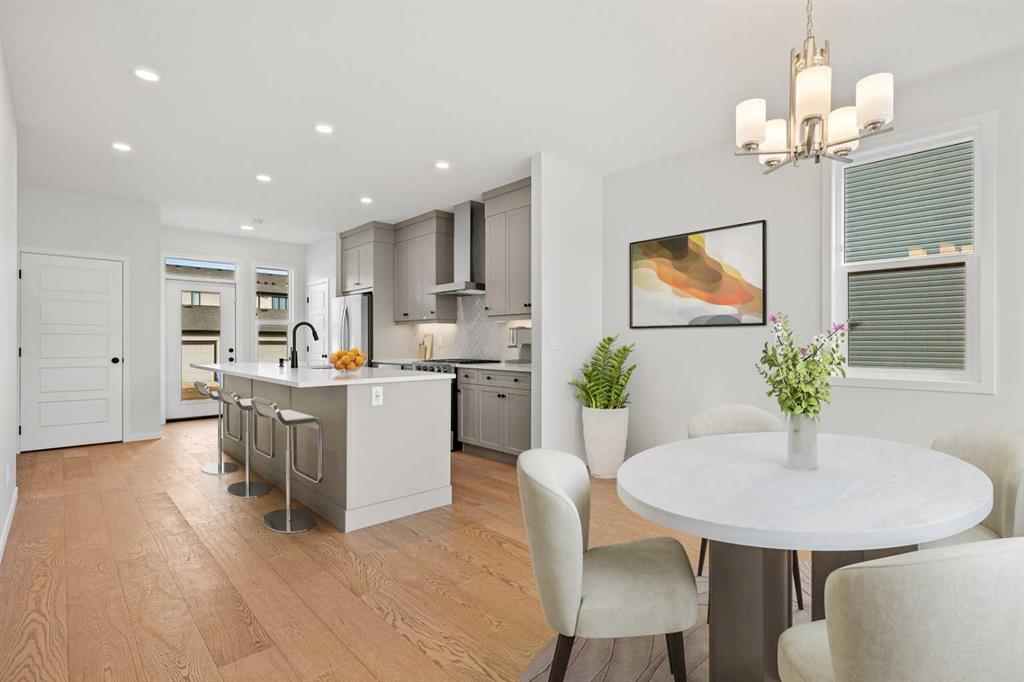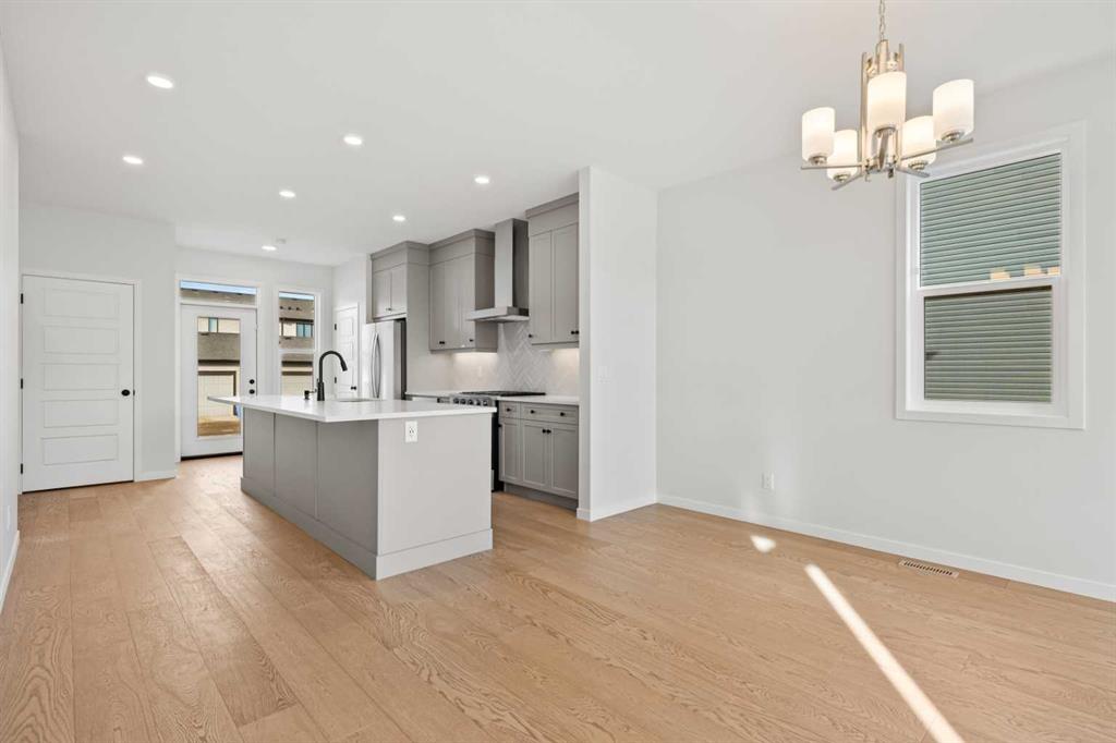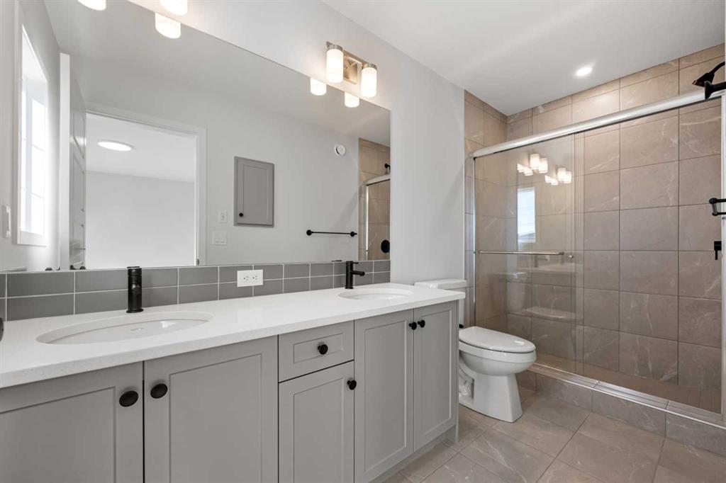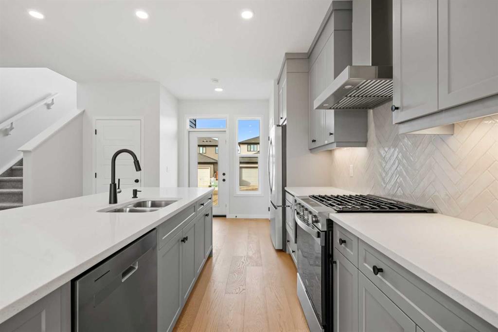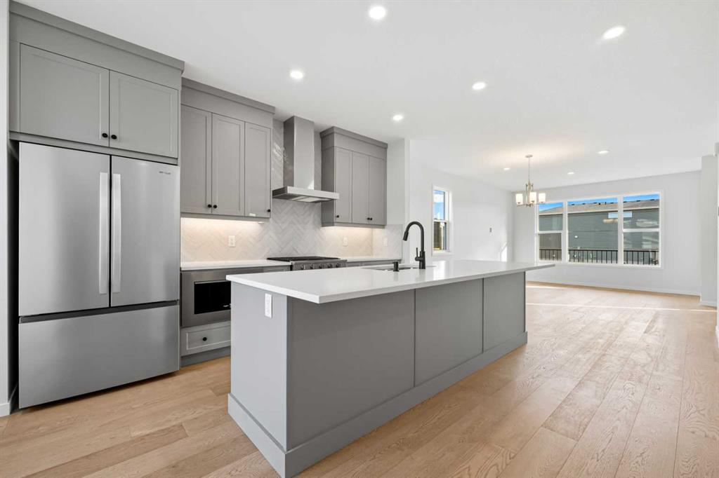 Located in the scenic and growing community of Wolf Willow, 83 Wolf Hollow Rise SE offers a thoughtfully designed two-storey home by Trico Homes that blends modern finishes, functional living spaces, and an exceptional location close to nature. With approximately 1,578 sq. ft. above grade, this brand-new home is ideal for families, first-time buyers, or anyone seeking contemporary comfort in a vibrant southeast Calgary neighbourhood. The main level features a bright open-concept layout enhanced by high ceilings and large windows that allow natural light to flow throughout the space. The kitchen is designed to be both stylish and practical, showcasing quartz countertops, a spacious kitchen island, breakfast bar seating, and a gas stove—perfect for everyday cooking or entertaining guests. The seamless connection between the kitchen, dining area, and living room creates a welcoming environment for gatherings and daily living. A convenient two-piece bathroom completes the main floor. Upstairs, you’ll find three bedrooms, including a spacious primary suite with a walk-in closet and private ensuite featuring a double vanity and relaxing soaking tub. Two additional bedrooms share a well-appointed four-piece bathroom, making the upper level ideal for family living. The laundry area is conveniently located in the upper hallway, simplifying everyday routines. The unfinished basement provides excellent potential for future development, allowing new owners to customize additional living space to suit their needs—whether it’s a recreation room, home gym, or additional bedrooms. Outside, the home features a welcoming front porch and a rear parking pad with space for two vehicles, accessible from the back lane. A BBQ gas line is also included, making outdoor entertaining easy. Wolf Willow is known for its connection to nature and community lifestyle, offering nearby parks, playgrounds, walking and biking paths, and easy access to schools and shopping. Residents also enjoy close proximity to the Bow River pathway system, making outdoor recreation part of everyday life. With modern finishes, functional design, and a fantastic location, 83 Wolf Hollow Rise SE presents a wonderful opportunity to own a new home in one of Calgary’s most exciting emerging communities.