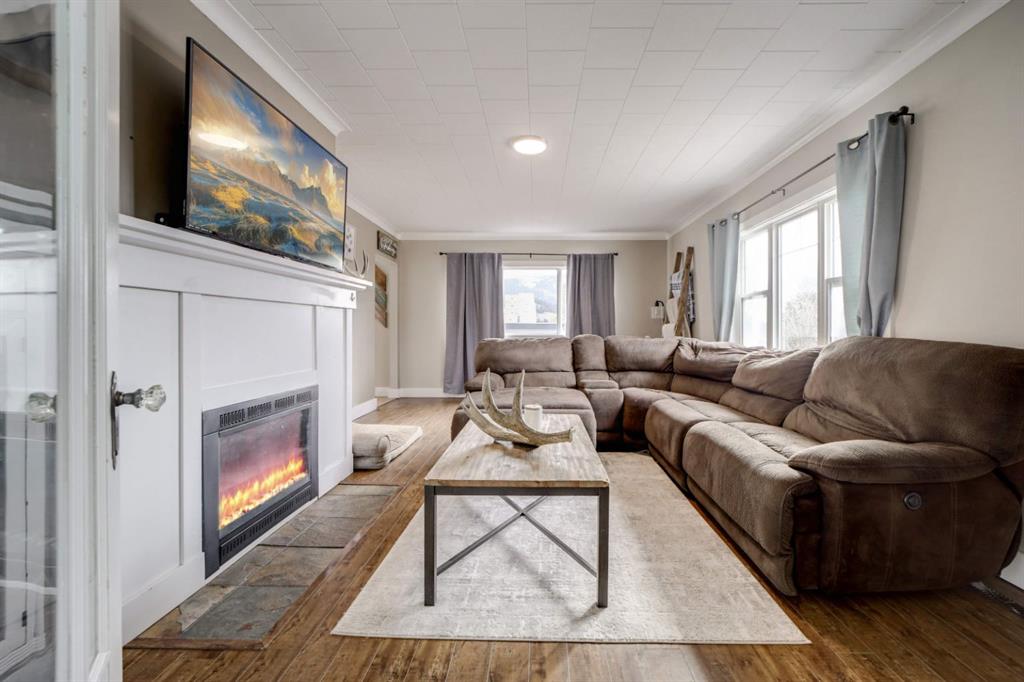 Welcome to Coleman, Crowsnest Pass. This 1,239 sq. ft. home features three bedrooms, two bathrooms and is perfectly situated on a desirable corner lot, offering beautiful mountains views and a private fenced yard. Enjoy a spacious kitchen with a large dining area, ideal for family gatherings and a comfortable living room with a cozy n/g fireplace for those cooler evenings. Step out from the kitchen onto an sheltered deck, backyard has been privacy fenced, a great place to spend summer evenings entertaining friends or enjoy the hot tub. Additional highlights include a single detached heated garage, parking for guests or recreational vehicle. Whether you are a first time buyer, downsizing, or searching for a weekend retreat in the mountains, this property offers incredible potential.