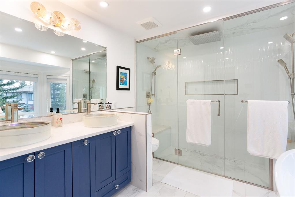 Ever dreamed of a home that’s classy enough for dinner parties, comfy enough for sweatpants, and smart enough to never make you hang Christmas lights again? Welcome to your new favourite chapter — where elegance meets low-maintenance brilliance in Hawkwood Estates. Step inside this refreshingly spacious home offering almost 3300 SqFt of developed living space, where the bedrooms are so big you might lose a laundry basket in them (on purpose). The kitchen delivers serious chef vibes with veined quartz counters, built-in stainless steel appliances, and lighting so good even your takeout looks gourmet. The primary ensuite? A five-star spa escape — complete with heated floors, a freestanding tub, and a shower boasting three shower heads (because two just isn’t enough). Downstairs, the fully finished basement invites both binge-watchers and cocktail shakers with a cozy living area, wet bar, and an accessible tile shower for your guests. Outside, you’ll find a large composite deck, a private 6,700 SqFt lot framed by mature trees, and Gemstone exterior lighting that handles the holidays for you. Perfectly located near schools, parks, Crowfoot Crossing, and the LRT — this home truly lets you have it all (minus the string lights and cramped closets). Upgrades include: High efficiency furnace (~2015), New water tank (2024), New asphalt shingle roof (~2020), New vinyl plank flooring throughout the main level and new carpet upstairs, Newer windows upstairs and on main level, Pot lights added through main level (~2020)