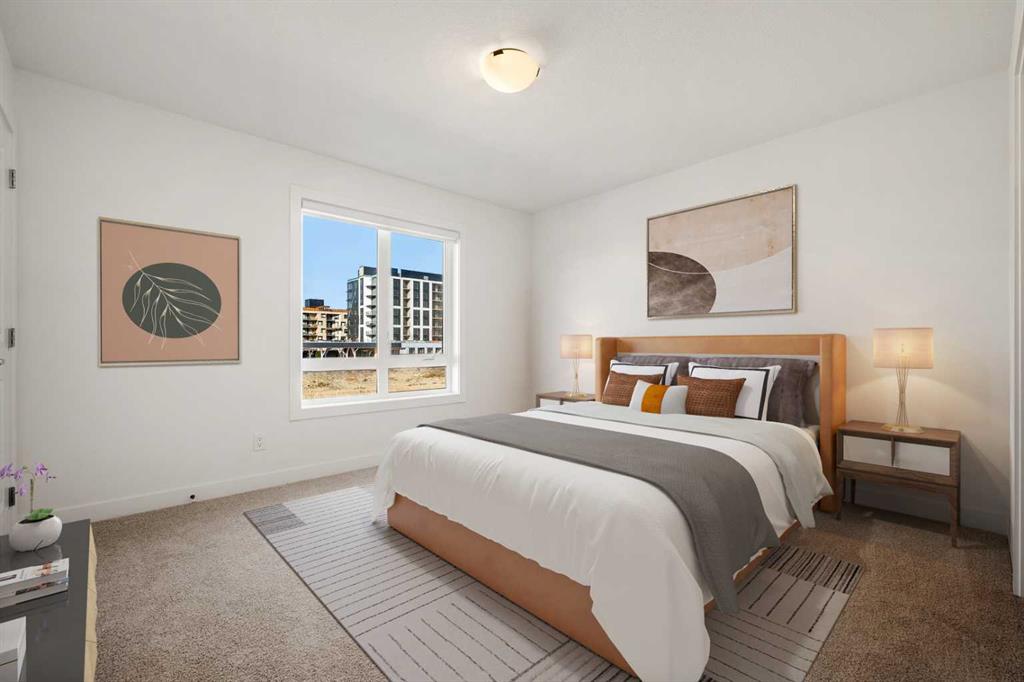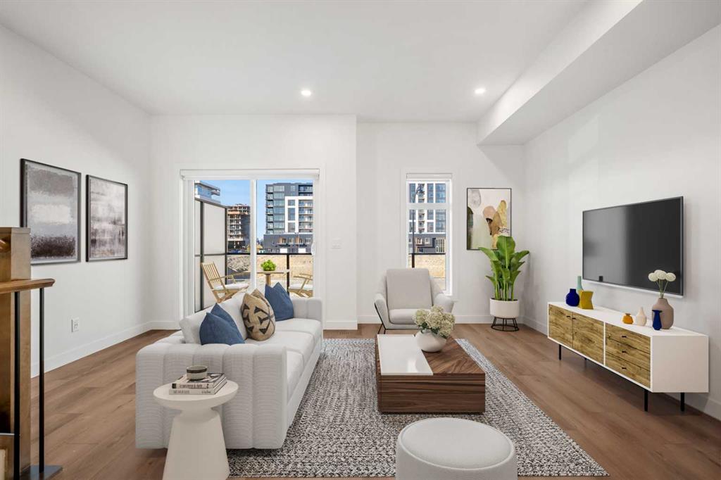 ***Open House Saturday from 2pm to 4pm*** Welcome to 8331 8 Avenue SW, an exceptional Granville model townhome offering over 1,360 sq ft of contemporary living in the highly sought-after West 83 community. Designed with a perfect balance of comfort, sophistication, and functionality, this residence showcases a modern Spanish Modern colour palette and an open, light-filled layout ideal for today’s lifestyle. The entry level features a closed flex room—a versatile space perfect for a private home office, workout room, or cozy media lounge. Upstairs, the bright and airy main floor welcomes you with an expansive open-concept layout, elevated by upgraded cabinetry, sleek quartz countertops, and a gas line to the deck, ideal for outdoor grilling and entertaining. The kitchen’s contemporary design blends clean lines and premium finishes, complemented by upgraded four flush-mounted LED lights in the great room that create a warm, inviting ambiance. Both the kitchen and bathrooms feature enhanced cabinetry for a refined touch, while zebra blinds throughout add modern style and practical light control. A/C rough-ins provide easy future installation for year-round comfort. The thoughtful floor plan maximizes functionality and flow, offering space for both relaxing and entertaining in equal measure. Upstairs, the home offers two well-appointed bedrooms, each with access to their own full bathrooms for optimal privacy and convenience. The primary suite features a three-piece ensuite and dual walk-in closets, combining luxury and practicality. Ideally located just steps from Sobeys, Radio Park, restaurants, and boutique shops, West 83 provides a walkable, connected lifestyle. You’re also only 15 minutes to downtown Calgary and about 45 minutes to the Rocky Mountains, making this the perfect home for those who crave both urban convenience and outdoor adventure. With its premium finishes, smart design, and unbeatable location, 8331 8 Avenue SW delivers a low-maintenance lifestyle without compromise—perfect for professionals, couples, or anyone seeking modern west-side living at its finest. Includes Alberta New Home Warranty.