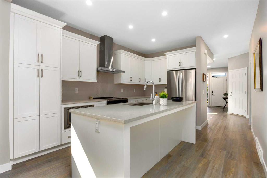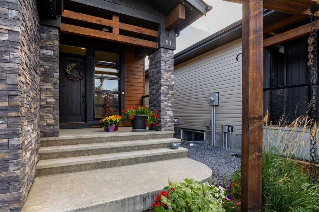 Welcome to Riviera Court — where timeless design meets river valley serenity in one of Cochrane’s most desirable neighbourhoods. This beautiful mountain-inspired villa duplex by Jayman Built captures the feeling of Mountain Side living, surrounded by mature trees, the Bow River pathway, and luxury craftsmanship at every turn. From the moment you arrive, you’ll notice thoughtful upgrades throughout. The exterior features gemstone lighting that adds an elegant glow to the evening skyline and an electric retractable awning that shades your east-facing deck overlooking the protected nature reserve. Pride of ownership is evident from the curb appeal to the immaculate interiors. Step inside to discover an open-concept main floor designed for both comfort and sophistication. The kitchen showcases classic white shaker cabinetry, quartz countertops, and stainless steel appliances, perfectly complemented by a large central island that anchors the space. The adjoining great room is warm and inviting, featuring a gas fireplace and peaceful treed views as your backdrop. A dedicated den on the main floor makes the perfect home office or reading space, and a spacious dining area sets the stage for family gatherings. The primary suite feels like a private retreat, with a large walk-in closet that will exceed your expectations and a beautiful ensuite featuring dual vanities, an oversized shower, and a relaxing soaker tub. Every finish feels intentional, creating an atmosphere that blends elegance with everyday function. Downstairs, the fully finished lower level offers incredible flexibility with two bedrooms, a private office, and a large recreation room, ideal for movie nights, hosting guests, or multi-generational living. Though not a walkout, this level is bright, spacious, and exceptionally well-planned, providing comfort for both family and visitors alike. Additional highlights include a heated garage with epoxy-coated floors, wide-plank hardwood, and triple-pane windows. Step outside to enjoy your east-facing backyard that greets the morning sun, where gemstone lighting and the surrounding forest create a serene retreat. The Bow River pathway system is only steps away, offering endless opportunities for morning walks, evening bike rides, or simply enjoying the calm of nature right outside your door. This quiet enclave in Riviera is known for its friendly neighbours, pristine streetscapes, and proximity to Cochrane’s best amenities. Here, you’re minutes from downtown Cochrane, schools, parks, and golf, while still being surrounded by the peace and beauty of the natural landscape. If you’ve been searching for a home that combines mountain-inspired style, luxury finishes, and the tranquility of riverside living, 84 Riviera Court is the perfect place to call home.