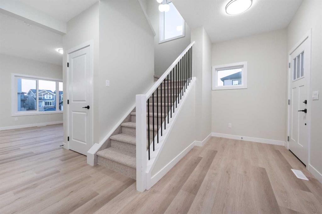 ***QUICK POSSESSION BRAND NEW BUILT*** FRONT DOUBLE GARAGE, WIDER CORNER LOT, 3 Bedrooms + Bonus Room + Den | 2.5 Baths | The most popular Moana model on over 34.5 feet wide lot, situated in the community of Waterford, minutes from the Chestermere lake. Experience the epitome of open concept living, featuring upgrades such as 9 feet Ceilings on main floor and basement, metal spindles on railing, 3cm quartz countertops, LVP flooring, under mount sinks, convenient upstairs laundry and so much more! Great room includes an electric fireplace with feature wall which adds style and warmth perfect for chilly nights. The kitchen is completed with a huge island, perfect for gathering families and friends, soft close cabinets and drawers throughout, spacious pantry plus large counter space, new appliance package including GAS range, built-in microwave, french-door refrigerator and dishwasher. The dining room is spacious enough to host a big family. Upstairs, indulge in the comfort of your perfectly sized central bonus room, ideal for the quality family time together. Retreat to the spacious master suite with a 5-piece ensuite and walk-in closet for a relaxing escape. The two secondary bedrooms, both with walk-in-closets, a 3-piece bath with another standing shower and conveniently located laundry room complete the second level. The basement is unfinished but comes with 9 feet ceiling, separate side entrance and a mechanical room moved to a corner for ease of future development. Proximity to the CALGARY, schools, diverse retail and culinary delights are just some of the highlights. Call to book your showing now !!!!!!!