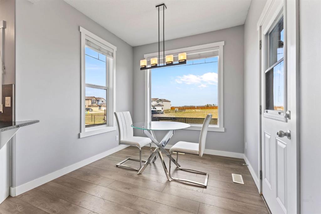 Welcome to this wonderful two-storey home located in the heart of the highly sought-after, family-friendly community of Lakewood. Designed with modern elegance and comfort in mind, this beautiful home features stylish contemporary décor and a bright, open-concept layout perfect for both daily living and entertaining. Step into the main floor and be greeted by a gleaming high ceilings. The white chef’s kitchen complete with granite countertops, ample cabinetry, and stainless steel appliances. Natural light floods the space through large windows, creating a warm and inviting atmosphere throughout the dining area and spacious living room, where a cozy gas fireplace serves as the perfect focal point. Upstairs, you’ll find three generously sized bedrooms, including a luxurious owner’s suite featuring a private 3-piece ensuite and ample closet space. The upper level provides a peaceful retreat for the whole family. The fully finished basement adds even more functional living space, offering a large recreation room ideal for movie nights, and a modern 3-piece bathroom, Outside, the private backyard is a true oasis, featuring low-maintenance landscaping and plenty of space for children and pets to play. Beautiful stonework which continues to a centre patio area of the backyard, is a focal feature of this outdoor space. Whether you’re hosting summer BBQs or enjoying quiet evenings under the stars, this outdoor area is ready for it all.