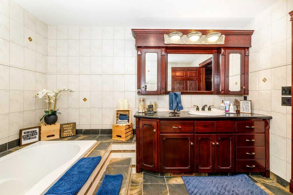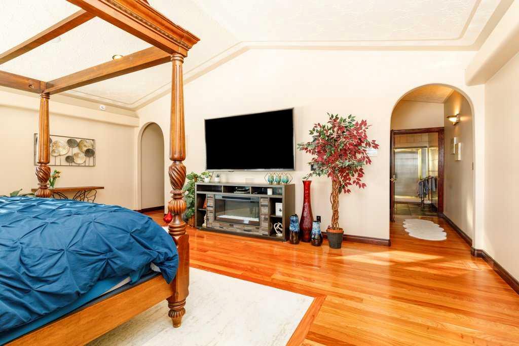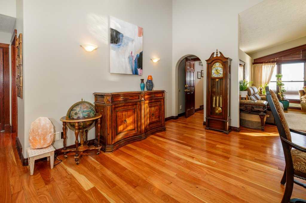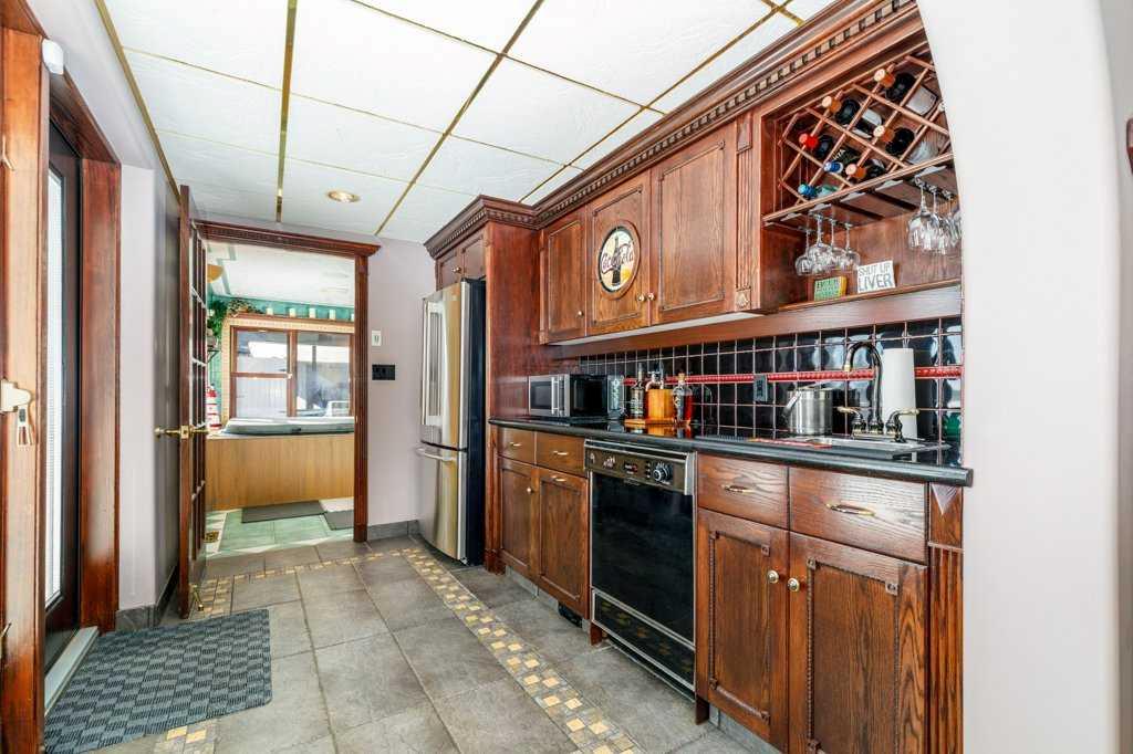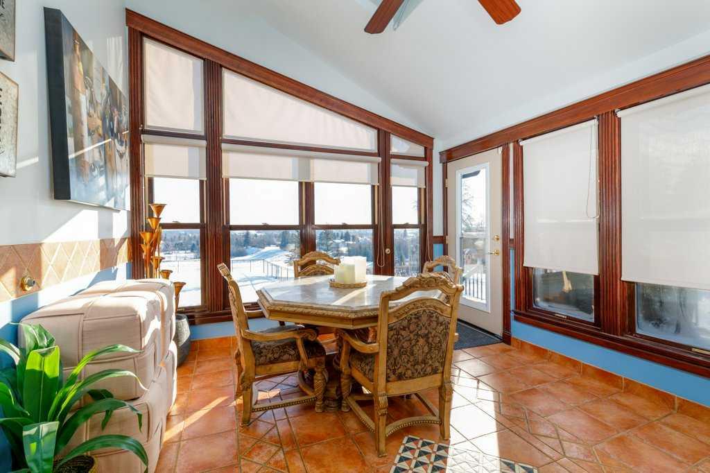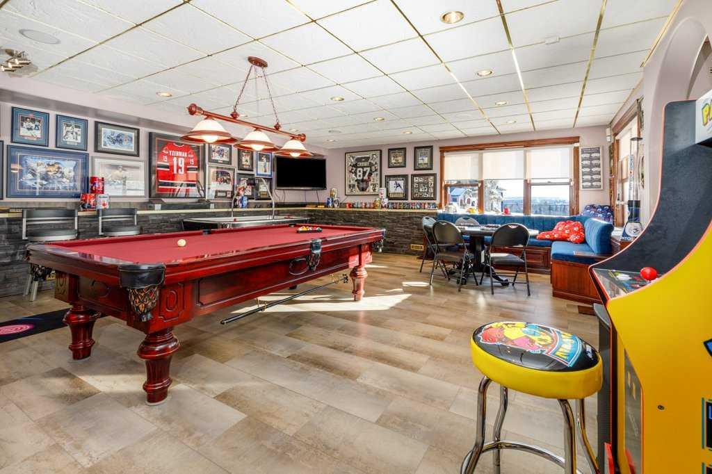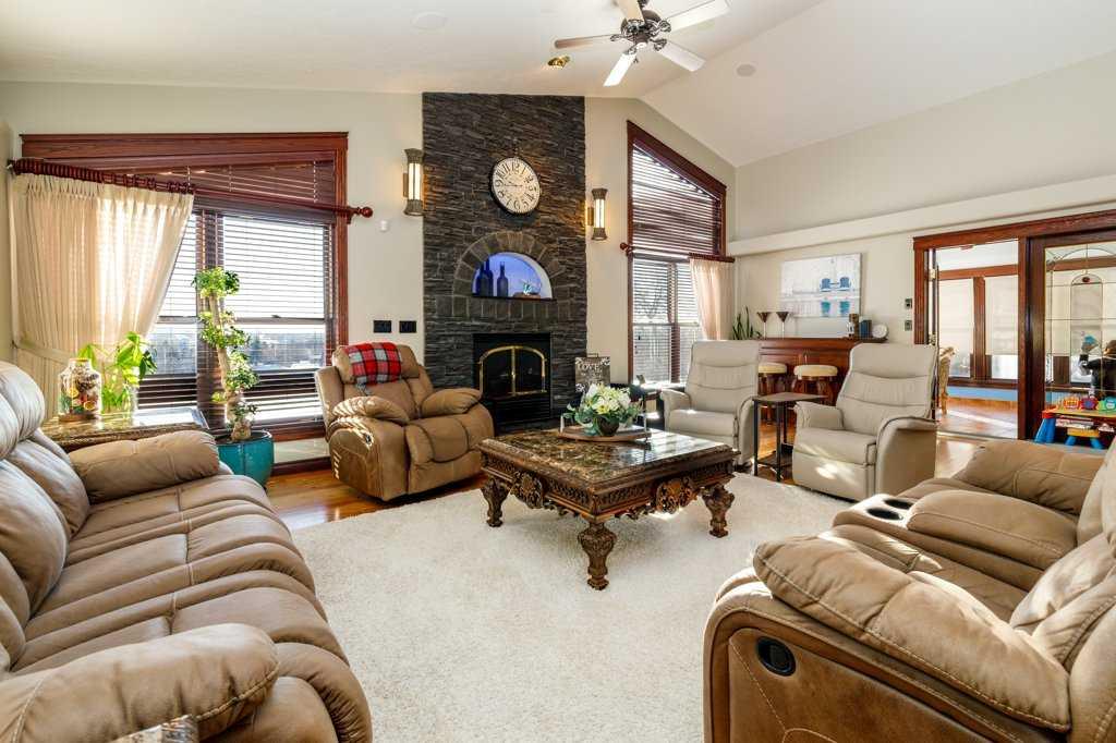 Stunning Executive Bungalow in Oriole Park – Unmatched Views & Exceptional Craftsmanship. Welcome to this extraordinary executive walkout bungalow on a highly desirable street in Oriole Park, offering an impressive 2,593 sqft on the main level and 2,290 sqft on the fully finished walkout basement. Perfectly positioned on a rare 0.36 acre lot backing onto Great Chief Park and just steps from Bower Ponds and the Red Deer River, this property delivers a lifestyle and location that are truly second to none. A grand entry welcomes you inside, where a striking tempered glass feature wall opens to the main living space. Soaring 17 foot vaulted ceilings and near floor-to-ceiling windows flood the home with natural light while capturing breathtaking park and city views — including stunning nightscapes of Red Deer. Custom finishes elevate every space, including imported rosewood flooring complemented by rich maple cabinetry, doors, and trim. The chef’s kitchen is a dream, offering extensive cabinetry, generous counter space, and a large central island designed for gathering and entertaining. The heated sunroom, complete with natural gas cooktop, additional workspace, and screened windows, overlooks the massive fenced backyard. The main level features a spacious primary bedroom with a large walk-in closet and well-appointed ensuite, a second bedroom with walk-in closet, a full guest bath, and a convenient main floor laundry and mudroom that could easily function as a chef’s pantry. The walkout basement is equally impressive, filled with natural light and designed for entertaining. Enjoy a large family room with wood-burning fireplace wired for surround sound, a generous games room with pool table, and a fully equipped wet bar with doors leading to the lower deck and backyard. An indoor hot tub room with backyard access, a 3-piece bathroom with a steam shower, two additional bedrooms (one with direct yard access), and a den/office with built in Murphy bed complete this incredible lower level. The expansive backyard offers endless possibilities — room for a pool, play areas, gardens, and more. A large storage shed with garage door provides ample space for seasonal equipment and recreational gear. Relax under the stars by the firepit, enjoy a game of horseshoes, and watch wildlife pass peacefully beyond your fence. Additional highlights include whole home wired for surround sound, an intercom system, central A/C, extensive custom millwork throughout, remote controlled blinds and skylights, heated garage, underground sprinklers, custom stamped concrete driveways, patios and walkways, concrete curbed gardens, low maintenance landscaping, fully fenced back yard with gated access to Great Chief Park and walking trails. A rare opportunity to own one of Red Deer’s most distinctive homes in an irreplaceable setting. Luxury, privacy, space, and views — this home truly has it all.