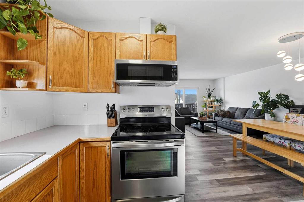 A fully developed half duplex with upgrades!The curb appeal is accented by the front deck and paved front driveway. The entryway greets you with vinyl plank flooring that carries through up the stairs and throughout the open style main floor layout. Natural light floods through the newer vinyl patio doors in the living room that lead to the front deck. The nice sized eating has upgraded lighting and adjoins to the kitchen that features oak cabinets, stainless steel appliances and a window above the sink. There are two bedrooms on the main floor and a 4 piece bathroom that was renovated last year with a furniture style vanity, new toilet and automatic fan. The basement has a large family room, 2 bedrooms (one doesn't have a closet) and a renovated 5 piece bathroom featuring double sinks & a tiled tub/shower. There is an oversized yard that is landscaped and includes the shed. Renovations include: hot water tank 2016, basement vinyl plank 2020, upstairs vinyl plank 2025, front door and patio door 2025, upstairs bathroom 2025 and the basement bathroom 2020.