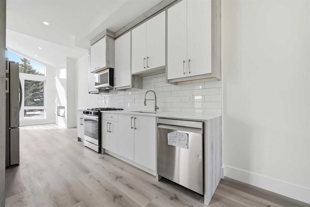 An excellent opportunity to own a newly built, architecturally refined residence in the heart of Bowness, one of Calgary’s most charming and sought-after communities. Thoughtfully designed with both elegance and versatility in mind, this semi-detached home seamlessly blends elevated modern living with outstanding income potential through its fully legal two-bedroom basement suite. The main level is defined by dramatic sloped ceilings and an abundance of natural light, creating an airy, sophisticated atmosphere. At the heart of the home, a beautifully curated kitchen showcases premium appliances, sleek contemporary finishes, and refined detailing, a space perfectly suited for quiet mornings and effortless entertaining alike. Two well-appointed bedrooms and a stylish full bath and a powder room complete the main floor, offering comfort and functionality without compromising design. The fully legal 2 bedroom walkup lower-level suite continues the home’s elevated aesthetic, featuring rare high ceilings, a fireplace, a bright and thoughtfully designed layout, and a private patio that enhances its strong rental appeal. Whether for extended family, guests, or additional income, the flexibility is exceptional. Outside, a private backyard and detached double garage provide everyday convenience, while the location offers immediate access to river pathways, parks, and outdoor recreation. Just minutes from Canada Olympic Park, with quick connections to downtown Calgary and the mountains, this address delivers an unbeatable lifestyle balance. A rare combination of architectural design, income versatility, and location. This is modern living redefined.