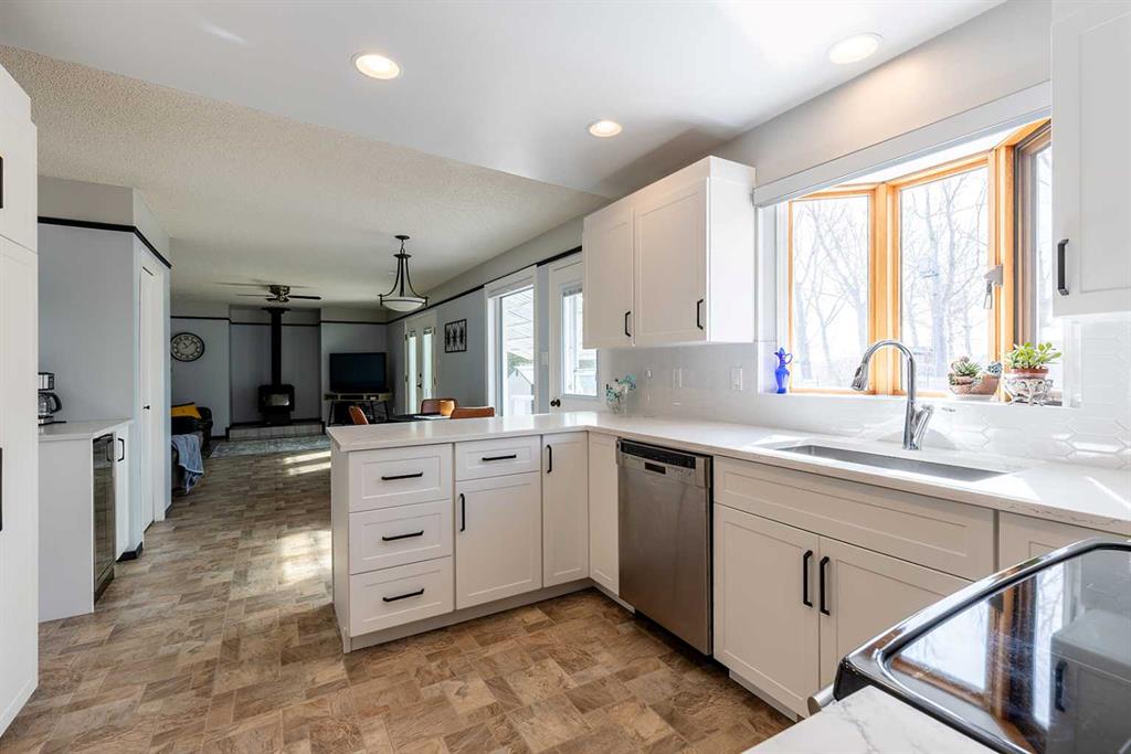 Welcome to this beautifully updated 1.5-storey home in Dunmore on just under an acre – a property that feels warm, inviting, and ready to enjoy through the cozy seasons ahead. Only 10 minutes from Medicine Hat, this home blends modern comfort with the quiet charm of country living. The 48’x26’ heated shop is fully equipped for year-round use, featuring a 14’ automatic garage door, full bathroom with shower, washer/dryer, and its own septic field. With 200 Amp service and 220 power, it’s the perfect space for projects, hobbies, or keeping things running smoothly through the colder months. The home also offers a triple heated attached garage (24’x25’) with cabinetry, a workbench, and a summer kitchen–ideal for extra workspace or family gatherings. Inside, the home has been thoughtfully updated with modern finishes while maintaining a comfortable and welcoming feel. The renovated kitchen features quartz countertops, pot lighting, electric blinds, a garburator, and a built-in mini fridge for your morning coffee nook. Fresh paint, new lighting, and updated blinds add a bright, refined touch throughout. The wood-burning stove brings the whole home together–a timeless feature that fills the main floor with warmth and character. It’s the perfect place to unwind on cool autumn evenings or gather with family while snow falls outside. The open layout connects the kitchen, dining, and living space seamlessly, creating an atmosphere that feels both elegant and relaxed. Upstairs, you’ll find three generous bedrooms, each with a walk-in closet. The primary suite includes a private ensuite and built-in vanity, offering a quiet retreat at the end of the day. The fully developed basement adds a fourth bedroom and flexible space for guests, hobbies, or a home office. Step outside to a spacious deck that overlooks the peaceful yard–a perfect spot to enjoy a cup of coffee on a crisp morning or sit under the stars in the hot tub on a winter night. The property is surrounded by fruit trees, perennials, and a fenced garden area, creating a setting that feels private and beautifully cared for year-round. Additional features include Hardie Board siding with 2” Foam board insulation, a concrete apron on the shop, covered patio, and numerous upgrades throughout. This Dunmore home offers more than space–it offers a feeling. From the glow of the wood-burning stove to the quiet stillness of a snowy evening, it’s a space designed for comfort, connection, and lasting memories through every season. Contact your real estate agent today to schedule a private showing and experience it yourself.