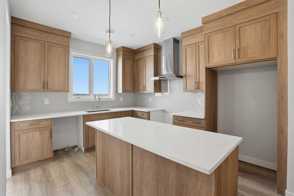 Brand New | Semi-Detached | Built by Broadview Homes | Main Level Office | 1,685 SqFt | Open Floor Plan | High Ceilings | Top of the Line Finishes | Full Height Cabinets | Granite Countertops | Kitchen Island | Pantry | Rear Mud Room | Ample Natural Light | 4 Upper Level Bedrooms | Upper Level Laundry | Legal Suite-Ready Basement (Subject to City Approval) | Side Entry | Laundry & Kitchen Rough-ins | Deck | Rear Gravel Parking Pad | Alley Access. Welcome to the Annex model by Broadview Homes! This brand new, never lived in semi-detached home offers 1,685 sqft of modern, thoughtfully designed living space with quality upgrades throughout. The main floor features an open-concept layout with high ceilings and luxury vinyl plank flooring. At the front of the home, a private office makes the perfect workspace, while a convenient 2-piece powder room adds everyday functionality. At the rear of the home, the modern kitchen overlooks the backyard and features granite countertops, a large island with barstool seating, stainless steel appliances including a gas range, hood fan, and built-in microwave, plus stylish 42” upper cabinets with soffit and crown molding. A bright dining and living area completes the main floor, with access to a rear deck—perfect for summer BBQs (gas line included!). Upstairs, you’ll find 4 spacious bedrooms, all with plush carpeting. The primary bedroom includes a walk-in closet and a 5-piece ensuite with dual vanity, tiled flooring, and a tub/shower combo. The remaining three bedrooms share a well-appointed 4-piece bathroom, and the convenient upper-level laundry is located near all bedrooms. The basement is legal suite-ready (subject to city approval) and includes a separate side entrance, true 9’ ceilings with web joists (no dropped ceilings), second furnace & HRV, and rough-ins for a kitchen sink and laundry room—offering excellent potential for future development or rental income. Additional features include a gel-stained fiberglass front door, tile in bathrooms and laundry, a 200 AMP electrical panel, and a rear parking pad with alley access. A perfect blend of modern design, comfort, and future potential—this move-in ready home is a must-see!