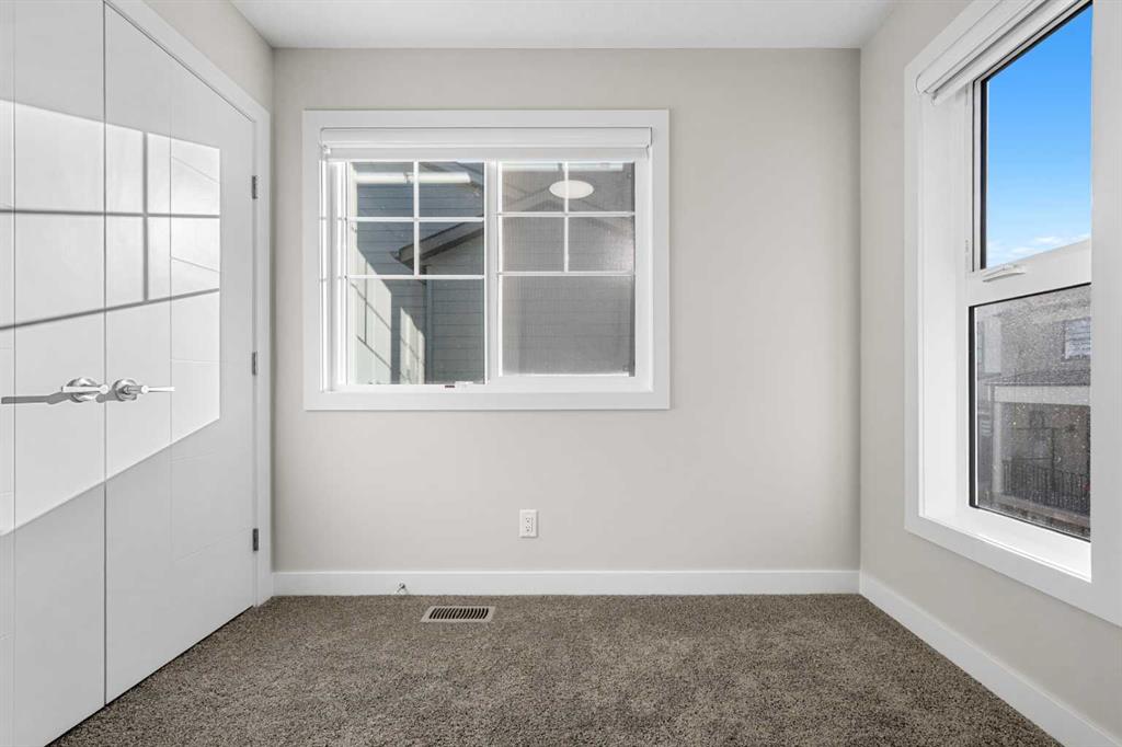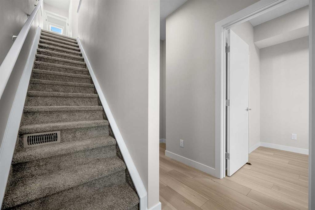 Welcome to Chelsea Court, where the “Monarch” townhome by Trico Homes combines modern design, comfort, and everyday functionality in one thoughtfully planned home. This pre-construction property includes three bedrooms, two and a half bathrooms, and more than 1,200 square feet of well-designed living space. The entry level features a two-car tandem garage and offers the option to add a flexible room with a full bathroom. This additional space can serve as a guest suite, home office, or hobby area, giving you the flexibility to customize the home to suit your lifestyle. The main floor is bright and inviting with nine-foot ceilings and an open-concept layout that enhances the sense of space. The kitchen is finished with quartz countertops and stainless steel appliances, providing a stylish and practical setting for both everyday living and entertaining. From the main living area, you can step out onto the private front deck overlooking green space and pathways, creating a peaceful spot to enjoy your morning coffee or unwind in the evening. Upstairs, the owner’s suite offers a comfortable private retreat with a spacious walk-in closet and a four-piece ensuite bathroom. Two additional bedrooms, a full bathroom, and a conveniently located laundry area complete the upper level, providing a functional layout for family living. Chelsea is a vibrant new community on the western edge of Chestermere that has been thoughtfully designed with families in mind. Residents have access to more than nine acres of park space, three storm ponds, a natural wetland eco-park, and interconnected pathways that make it easy to enjoy the outdoors. The neighborhood includes a mix of townhomes, duplexes, and single-family homes, creating an attractive and welcoming streetscape. Schools, shopping, and recreational facilities are located just minutes away, making daily errands convenient. Outdoor enthusiasts will also appreciate the proximity to Chestermere Lake, which offers year-round activities and beautiful scenery close to home. This is an opportunity to become part of a growing community. Schedule your visit to Chelsea Court today and discover where modern living meets natural charm. *Measurements are pulled from builder drawings; ground level measurements added to main floor*