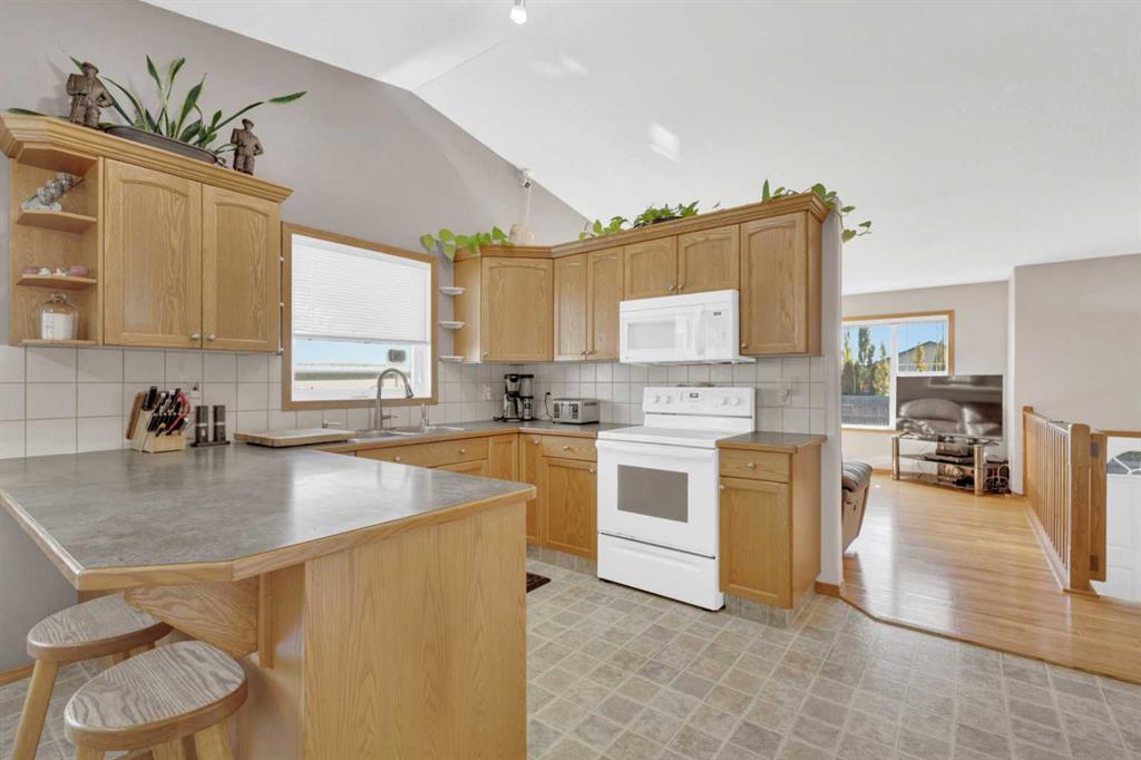 There is great value in this fully finished and spacious bi-level located on a desirable close in Davenport, featuring an oversized heated detached garage and RV parking. The home offers excellent curb appeal with a beautifully landscaped front yard complete with underground sprinklers, a rubber-coated walkway, and a welcoming front porch. Inside, the bright living room is filled with natural light from the large south-facing window and features hardwood flooring that extends through the hallways and bedrooms, as well as a vaulted ceiling that continues over the kitchen and dining area for an open, airy feel. The kitchen offers ample oak cabinetry and counter space, and the adjoining dining area accommodates a large table, perfect for hosting family and friends. The primary bedroom includes a walk-in closet and a 3-piece ensuite, while two additional bedrooms (one currently used as an office) and a 4-piece main bathroom complete the upper level. The fully developed basement offers a large family/games room, two more bedrooms, a 3-piece bathroom, laundry room with storage space, and the utility room. From the dining area, step out onto the covered back deck. The west deck stairs lead to a rubber-coated patio, under-deck storage, a large shed, and an 8-person hot tub with a covered enclosure, while the east stairs provide access to the RV parking area complete with a 30 AMP plug-in. The 22’ x 27’8" heated garage features a high ceiling and overhead door. The oversized lot still has room remaining for additional trailer parking at the back. Updates and upgrades not yet mentioned include: central A/C, new shingles on the home in 2024, a new hot water tank in 2021, and a kitchen garburator. Ideally situated just steps from a green space, a nearby playground, and close to multiple schools, shopping, and the Collicutt Recreation Centre, this home combines comfort, functionality, and outstanding value.