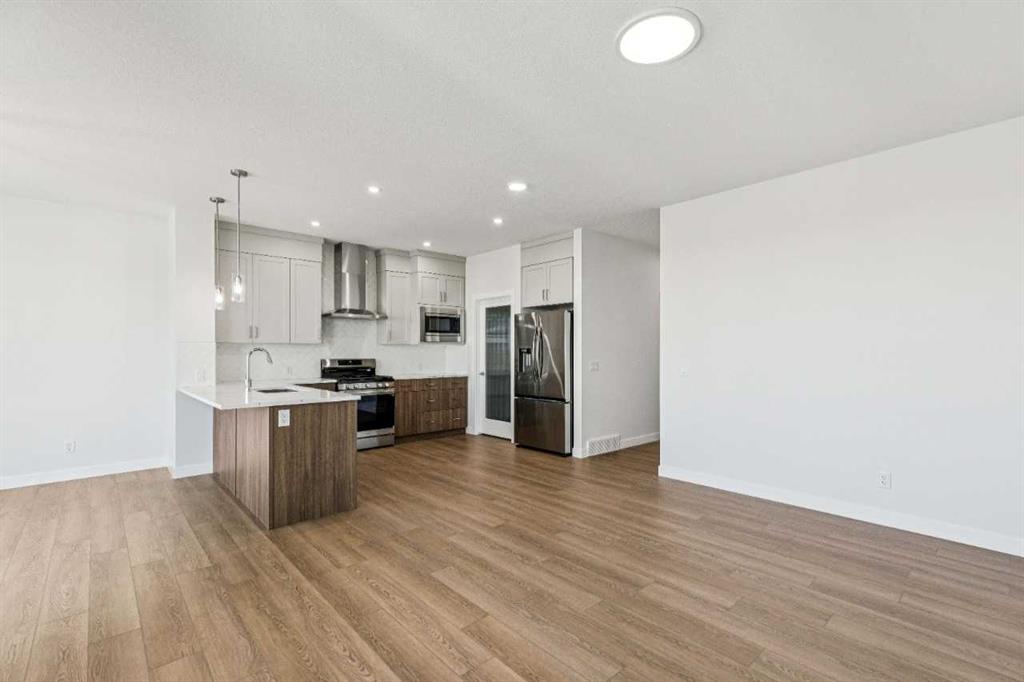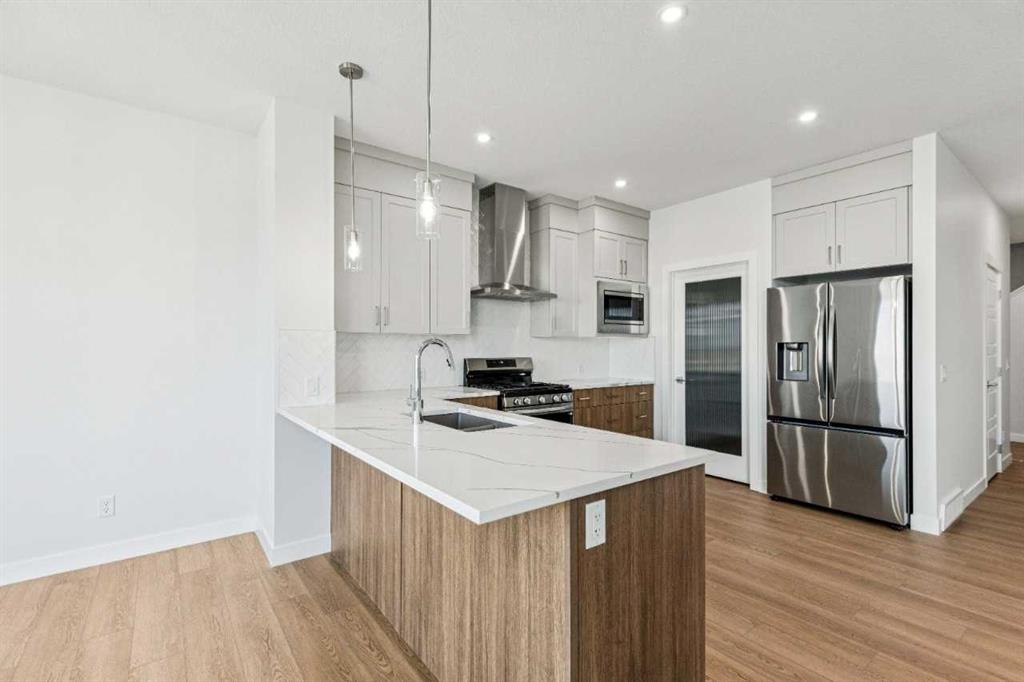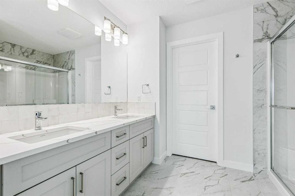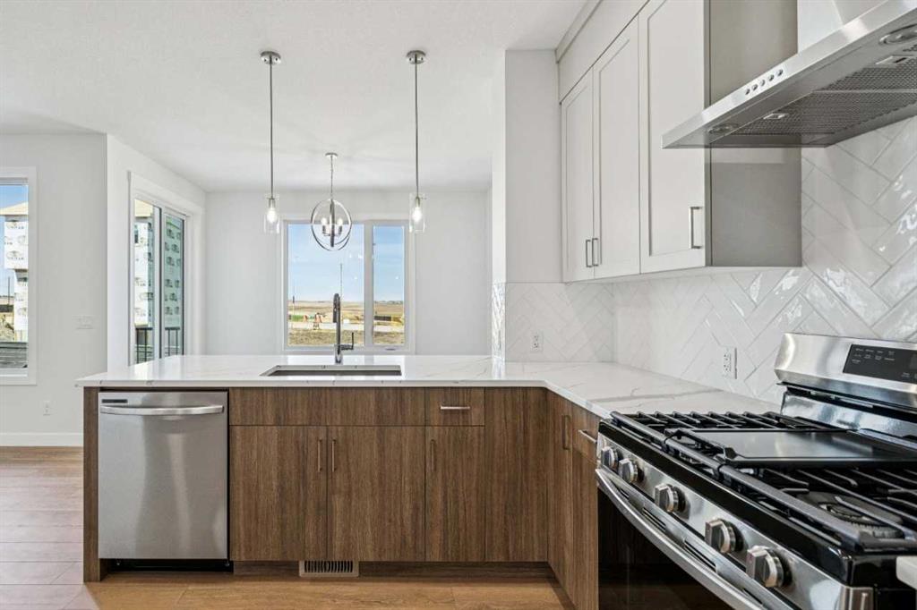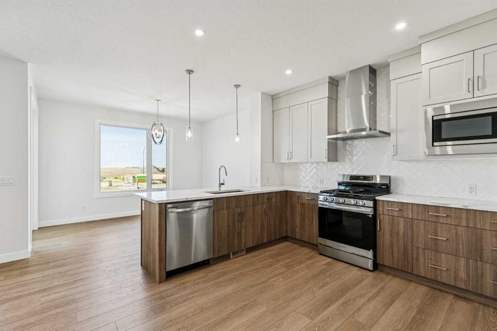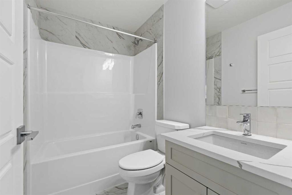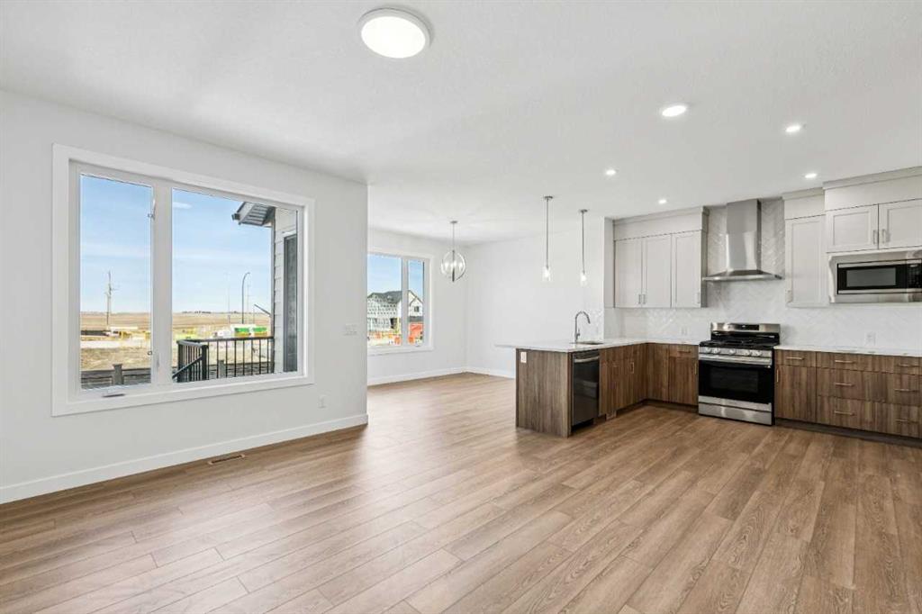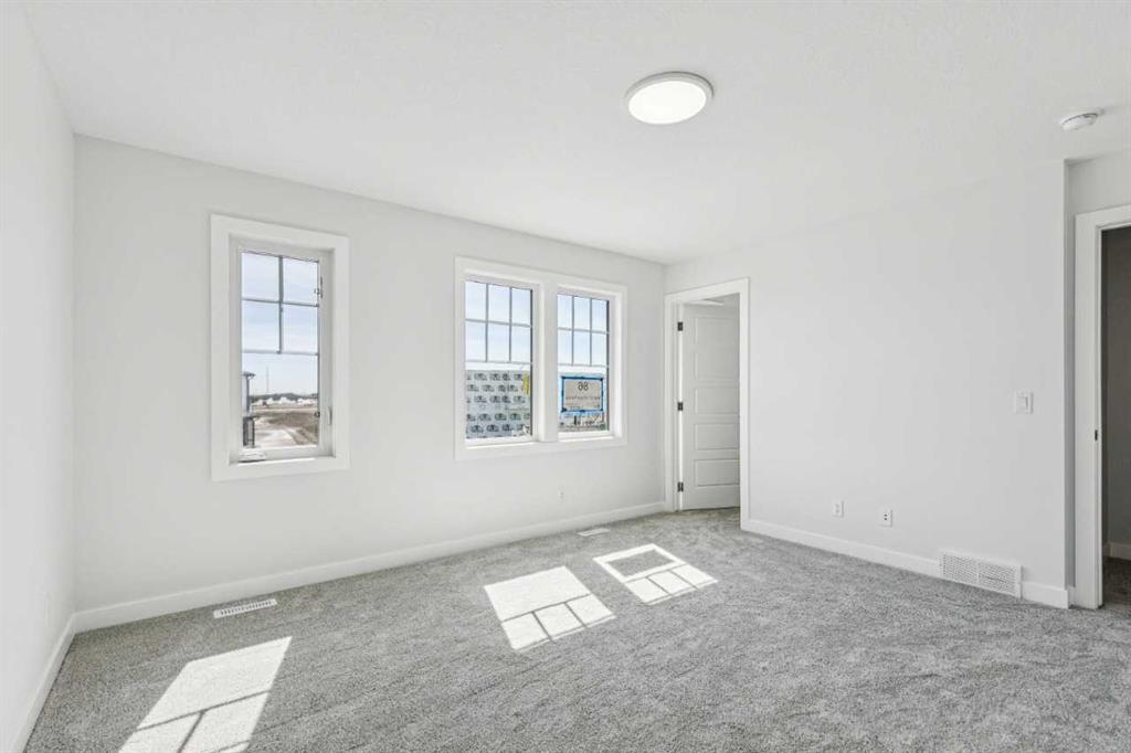 Immediate possession available at 86 Keystone Creek Terrace NW. This 2,184 sq ft NuVista Homes property offers 4 bedrooms and 2.5 bathrooms with a bright, open-concept design perfect for modern family living. The main floor features a stylish kitchen with quartz countertops, premium cabinetry, and a large island that flows into the dining area and great room. A versatile flex space provides options for a home office or additional seating. Upstairs, the spacious primary bedroom includes a walk-in closet and private ensuite, complemented by three additional bedrooms, a full bathroom, a central bonus room, and convenient upper-floor laundry. Large windows throughout enhance natural light, creating a warm and inviting atmosphere. A double attached garage offers parking and extra storage. Located in a desirable community near parks, pathways, schools, and amenities, this move-in-ready home blends comfort, functionality, and modern style. Photos are representative.