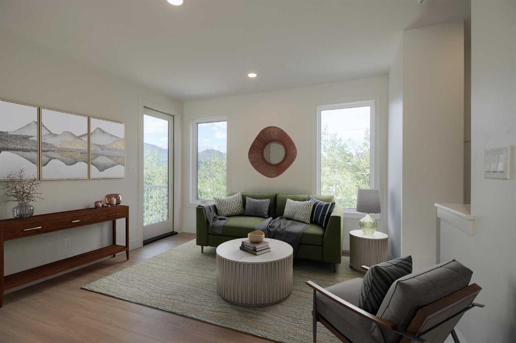 Welcome to the Aspen model by Stranville Living Master Builder! Located in the Coleman, Alberta community of Aurora, this home is perfect for a wide range of buyers, including first-time homeowners, empty-nesters, vacation home buyers, and growing families. Nestled on the northern edge of Coleman, the community of Aurora boasts breath-taking southern views of the Rocky Mountains, including among others, Chinook Peak and Turtle Mountain. The orientation of this 1,635 square foot home, which faces directly east, provides a stunning landscape view to the west from the primary bedroom and private balcony. This model includes three bedrooms, 2 bathrooms, and a 26' wide attached double-car garage. The kitchen is equipped with Stranville Living's top-tier appliance package, including a seamlessly integrated Fisher & Paykel fridge, paneled dishwasher, slide-in induction range and electric oven, and an OTR microwave with fan. It is designed with nicely appointed cabinets extended to the ceiling, fully-tiled backsplash, and quartz countertops for the base cabinets and island. The large primary bedroom is conveniently located on the main floor and the massive walk-in closet with laundry connects to the ensuite bathroom. Upstairs, you'll find two more bedroom and a dedicated 4-piece main bathroom. Once again, Stranville's award-winning design team has finished this home beautifully inside and out. The James Hardie fiber cement siding and exterior accents really make this home stand out in the backdrop of this mountain setting. High-efficient mechanical equipment, Low E windows, and spray foam in the rim joists help keep your heating and cooling costs in check. Must be seen to be appreciated! Photos may contain virtual staging.