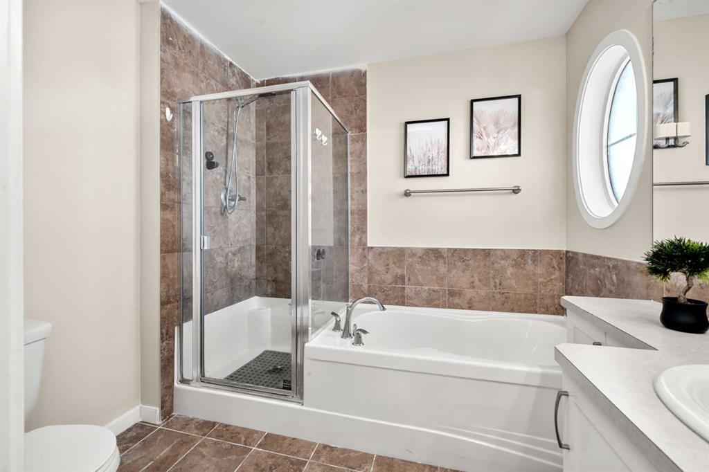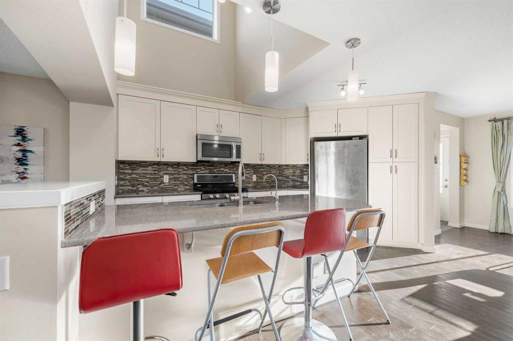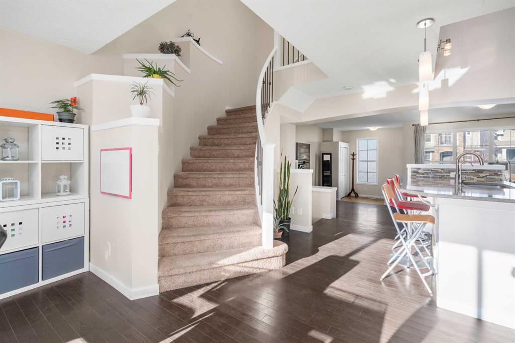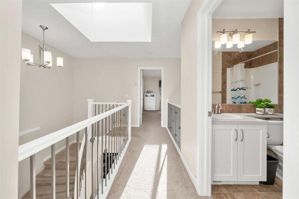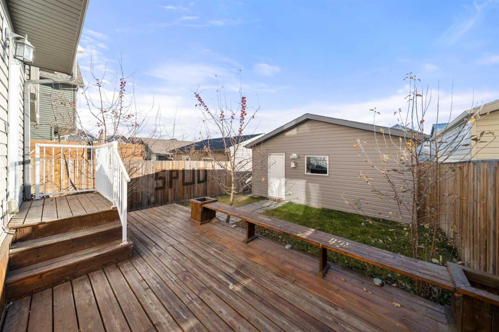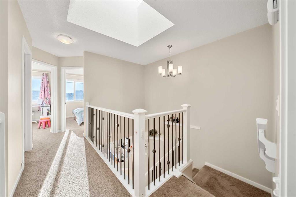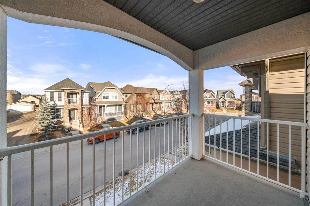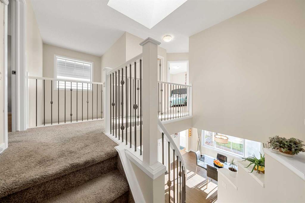 Welcome to the Heart of Cranston – Where Community Meets Comfort! Located on a quiet street in one of Calgary’s most beloved family-oriented neighbourhoods, this immaculately maintained Belvedere model offers the perfect blend of comfort, function, and architectural charm. With 3 bedrooms upstairs — including a spacious primary suite with a private balcony and 4-piece ensuite — this home is ideal for growing families or couples seeking room to thrive. The main floor features gleaming hardwood flooring, a stylish two-piece powder room, and an open-concept living and dining area anchored by a cozy gas fireplace. The vaulted ceiling over the kitchen floods the space with natural light, highlighting the rich granite countertops and sleek stainless steel appliances. Upstairs, you’ll love the elegant arched staircase, bright open hallway with skylight, and generously sized secondary bedrooms. The fully finished basement offers even more space to work or relax, with a large rec room, dedicated office, full bathroom, and a well-appointed laundry area. Additional comfort features include central air conditioning to keep you cool in the summer months, a water softener system, and a reverse osmosis filtration system at the kitchen sink for pure, clean drinking water. Step outside to your sunny south-facing backyard—complete with a spacious deck, green grass, and room to play or entertain. The double detached garage provides plenty of room for parking and storage. Cranston is a welcoming, mature community known for its established schools, shopping plaza, and community events, making it a top pick for families and newcomers alike. Enjoy easy access to the ridge, river pathways, and endless outdoor recreation — all while being just a short drive from major city amenities. This home is move-in ready and offers so much more than meets the eye. Come experience the peace, pride of ownership, and neighbourly charm that Cranston is known for!