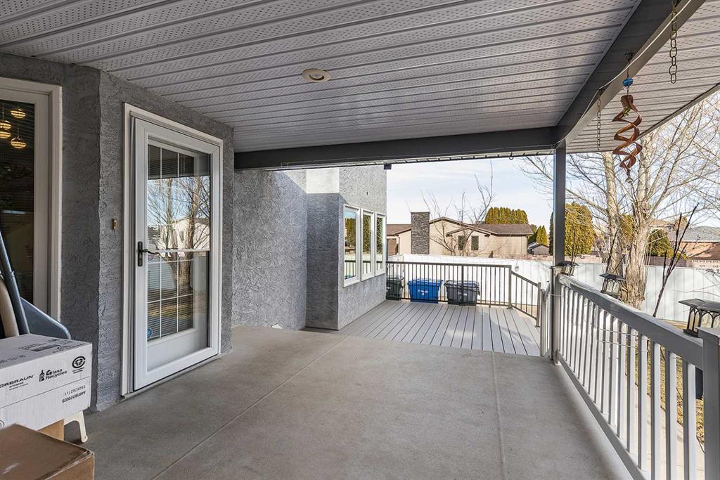 Located in the highly sought-after Parkview neighbourhood, just one minute from the Medicine Hat Golf & Country Club, this well-maintained two-storey split home offers space, flexibility, and a long list of updates. Featuring 3 bedrooms and 3.5 bathrooms, this property is ideal for families looking for a comfortable home in an established location. The main floor welcomes you with a front flex room currently used as a formal dining area, but easily suited for a living room, home office, or play space. The kitchen offers ample oak cabinetry, updated countertops and backsplash, newer stainless appliances (including fridge with ice maker), and a spacious dining area with direct access to the back deck and yard. From here, the layout flows into the large sunken living room, highlighted by a cozy gas fireplace. A convenient 2-piece powder room and main-floor laundry are located just off the attached double garage. Upstairs, you’ll find three bedrooms, including the primary suite featuring a walk-in closet and a private updated 3-piece ensuite with a newer air-jetted tub. A full updated 3-piece bathroom with a newer large spa-style shower completes the upper level. The lower level provides a generous family room, an updated 3-piece bathroom, and a huge storage room, offering plenty of space for recreation and organization. Outside, the fully fenced (Metal) and landscaped backyard is a standout feature. Enjoy the new, oversized two-tier covered deck, underground sprinklers, RV parking, and an abundance of mature fruit including plum and apple trees, raspberry and blueberry bushes. Two sheds ( 16' x 6' and 10' x 9.5') provide additional storage. Notable updates include a new roof (4–5 years), windows (6 years), A/C and furnace (6 years), hot water tank (2024), updated kitchen finishes and appliances, renovated bathrooms, and the new deck. A wonderful opportunity to own a move-in ready home in one of Medicine Hat’s most desirable neighbourhoods. Garage will be reverted back to a fully finished heated garage for possession.