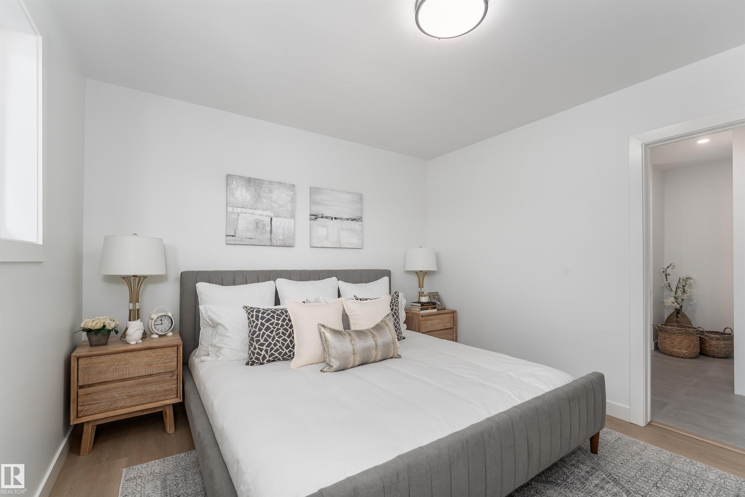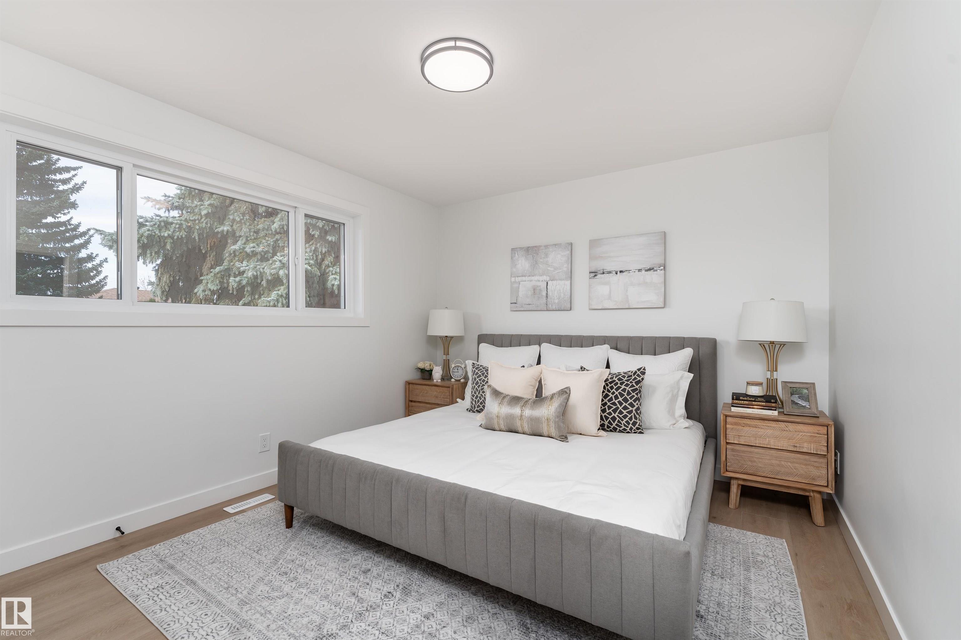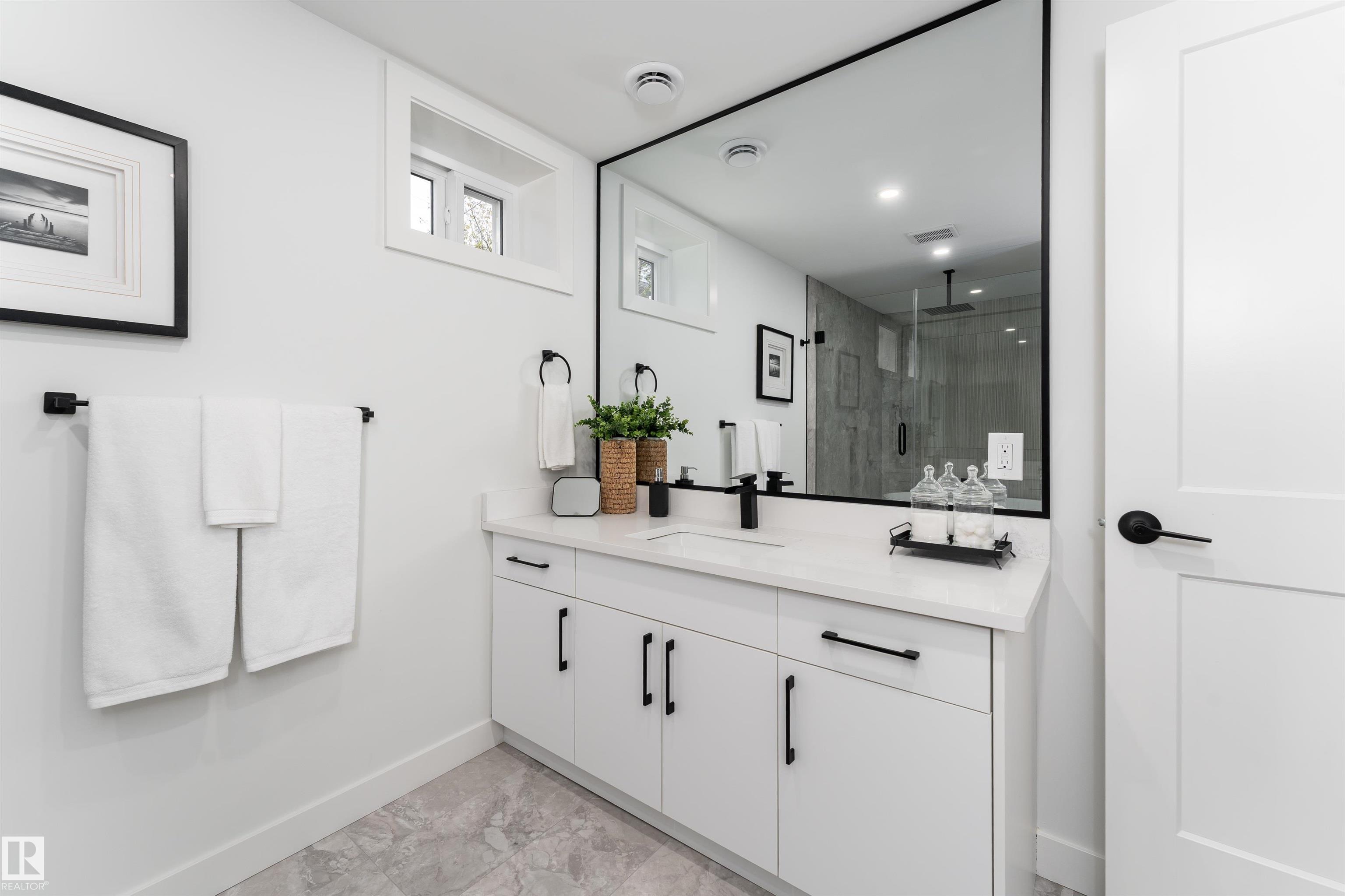 This stunning 1166 sq ft bungalow blends modern upgrades with comfort and style. The home features light vinyl plank flooring, upgraded windows that fill the space with natural light, and an upgraded fireplace finished in dark tile to the ceiling and framed by white brick. The open dining area flows into the white kitchen with stainless steel appliances, pot filler, and a 36” gas stove. The primary bedroom offers a beautifully upgraded 4-piece ensuite with double sinks and a tiled shower, while the second bedroom is bright with an upgraded 4-piece bath featuring marble tile nearby. The finished basement includes a cozy rec room with a second upgraded fireplace, wet bar, two bedrooms, another upgraded 4-piece bath with jetted tub, and a large laundry and storage area. Additional upgrades include a new hot water tank, concrete, and garage door. Outside, enjoy a fenced yard and a prime location near Fulton Ravine Park, Capilano Golf Course, and Hardisty Pool, making this mov-in ready home a true standout!