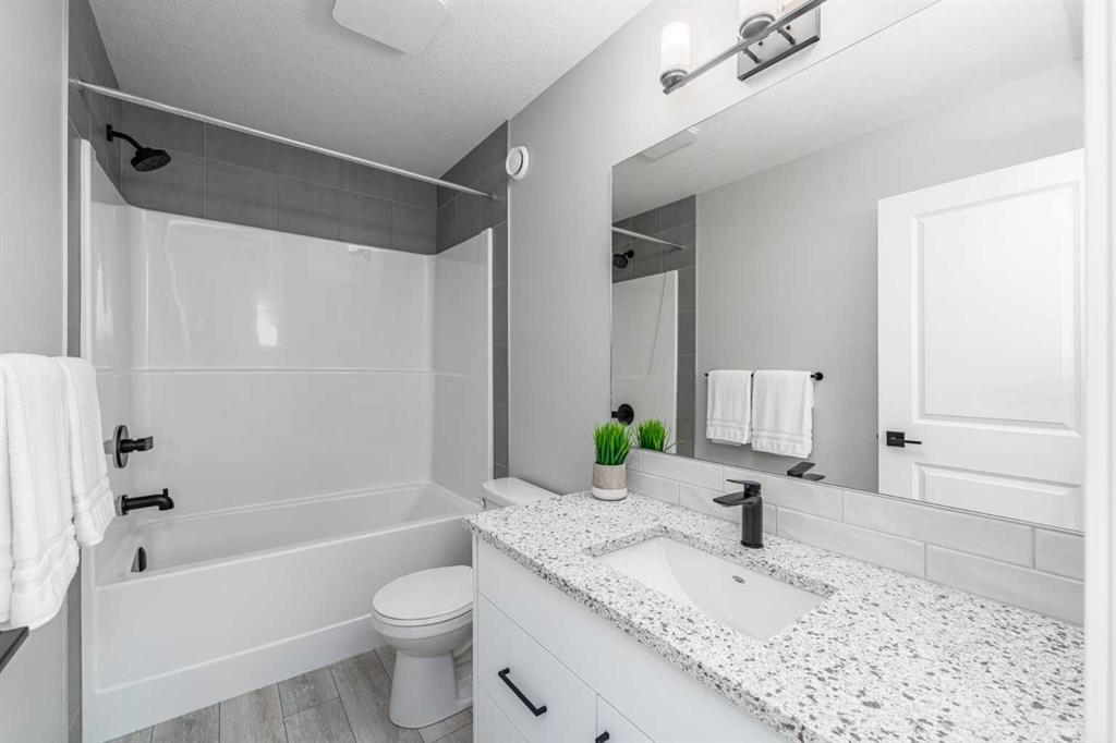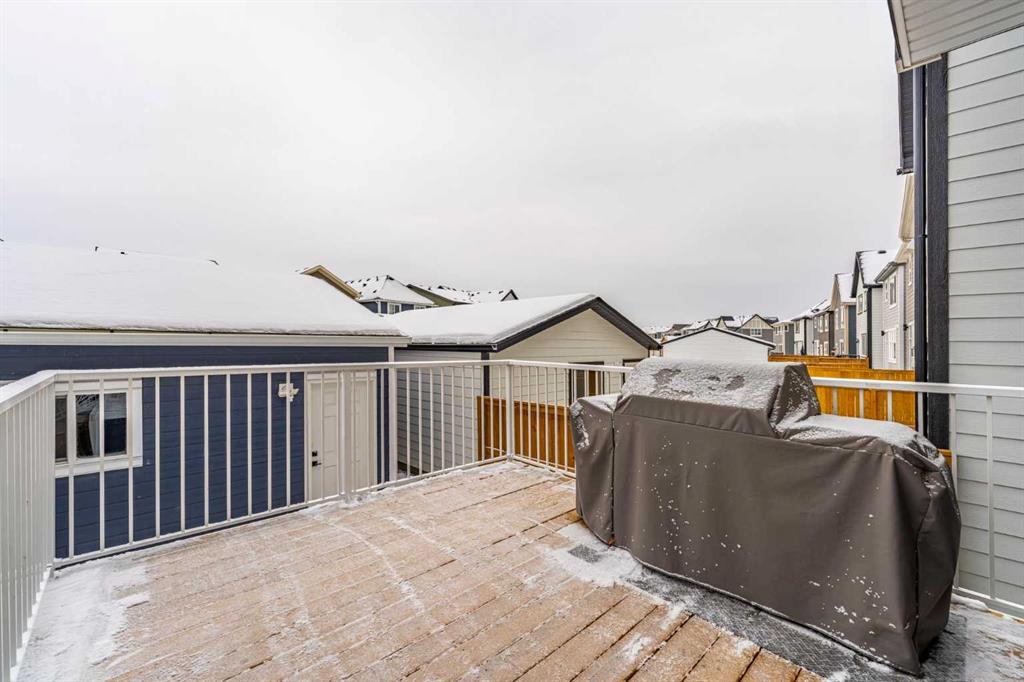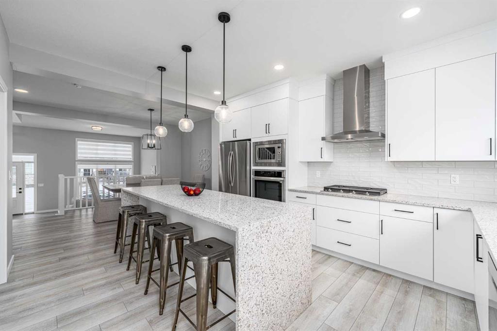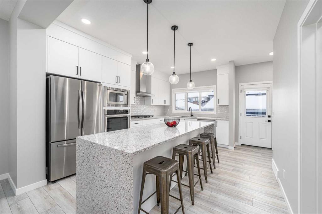 If you’ve been waiting for a home in Mahogany that actually checks every box and then adds a few you didn’t even know you needed, this is the one! A nearly brand-new, 2023-built Creston model by Excel Homes, sitting in Calgary’s most desired lake community. And here’s the thing: homes like this don’t sit. EVER. Not in Mahogany. Not at this finish level. Not around 1800 sq ft PLUS a fully finished basement with side-entry. As you step in, the first thing that hits you? Light. Space. Height. That 12-foot ceiling in the great room doesn’t just open up the home, it makes it feel luxurious. The massive triple-pane windows pull in sunlight year-round, and you’ve even got a power window covering for the great room… because of course you do. The flooring? Sleek LVP throughout the main, beautiful, durable, and made for real life. Now, if you love to cook or at least love looking like you cook, this kitchen is a head-turner. You’re getting a 10-foot quartz island with a waterfall edge, upgraded gas cooktop, built-in wall oven + microwave, chimney hood fan with tile backsplash going all the way to the roofline and a full-height slab profile cabinetry with pull-out garbage & recycling. Add in pot lights on dimmers, black farmhouse lighting inside and out, and black hardware throughout, and the whole aesthetic leans modern, warm, and beautifully designed. Head upstairs to the vaulted bonus room with more pot lights on dimmers so you can set the perfect mood for Netflix nights, early mornings, or convincing the kids it’s bedtime at 7:30. The primary suite gives you everything you’d hope for. A walk-in closet, A gorgeous ensuite with a glass-enclosed shower, full-height tile and upgraded cabinetry. The basement is fully finished with exceptionally high ceilings, a huge rec room with a massive window letting in natural light, a large under-stair storage area that even includes a freezer, and a bedroom with its own walk-in closet. This level feels nothing like a "basement." More like extra living space you’ll actually use. Outside, you have a 10x11 deck with railing, a gated storage area finished with James Hardie board, rundle rock and obsidian rock landscaping and a BBQ gas line ready to go. An oversized finished garage with an 8-ft bay door, 240V EV charging, WiFi-enabled openers And of course James Hardie board siding matching the home. This is the garage you want in Calgary. Big enough for actual vehicles, gear, bikes, tools, and still room to walk around. This home is packed with thoughtful upgrades, and you’re in Mahogany - Calgary’s top lake community with private beaches, skating, paddleboarding, and parks. Homes at this level don’t sit. If you want the full tour or think this could be your next move, come check it out today!