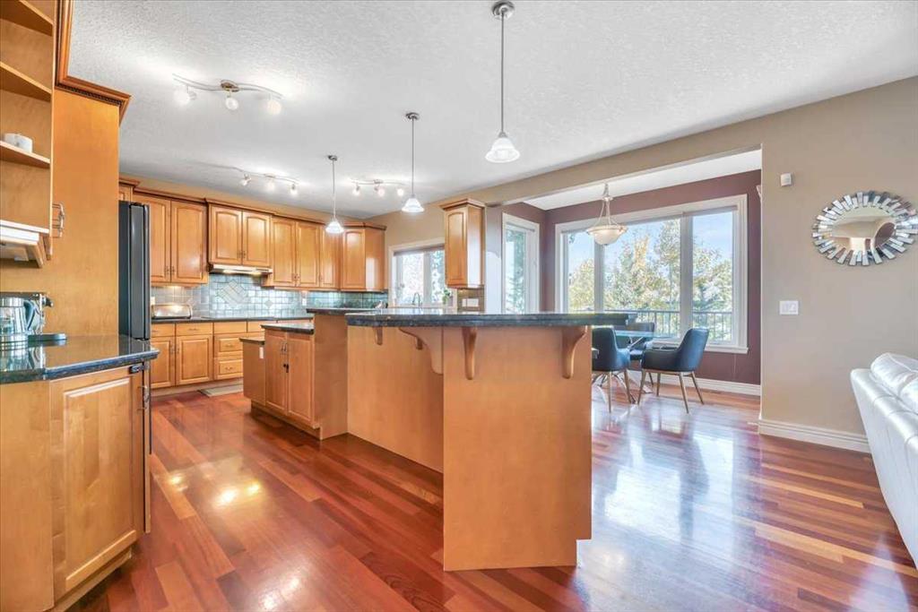 Executive Home in Springbank Hill | Mountain Views | Walkout Basement Welcome to this stunning executive residence in sought-after Springbank Hill, offering near about 4,000 sq. ft. of beautifully upgraded living space. This elegant two-storey home features 9’ ceilings and gleaming hardwood floors throughout the main level, where a spacious living room with a gas fireplace flows seamlessly into the formal dining area — perfect for entertaining. The chef-inspired kitchen is equipped with granite countertops, stainless steel appliances, a large central island, and a sunlit breakfast nook with access to the balcony. A dedicated main-floor office provides the ideal work-from-home setup. Upstairs, the vaulted bonus room showcases incredible views and soaring ceilings. Four generous bedrooms include a luxurious primary retreat with a walk-in closet and spa-inspired ensuite featuring dual vanities and a jetted tub. The fully developed walkout basement is designed for entertaining, complete with a wet bar, large family room with fireplace, a fifth bedroom, and a full bath — opening out to a covered patio and landscaped yard. Custom finishes, panoramic views, and a premium location make this a truly exceptional home. Don’t miss your chance — book your private showing today!