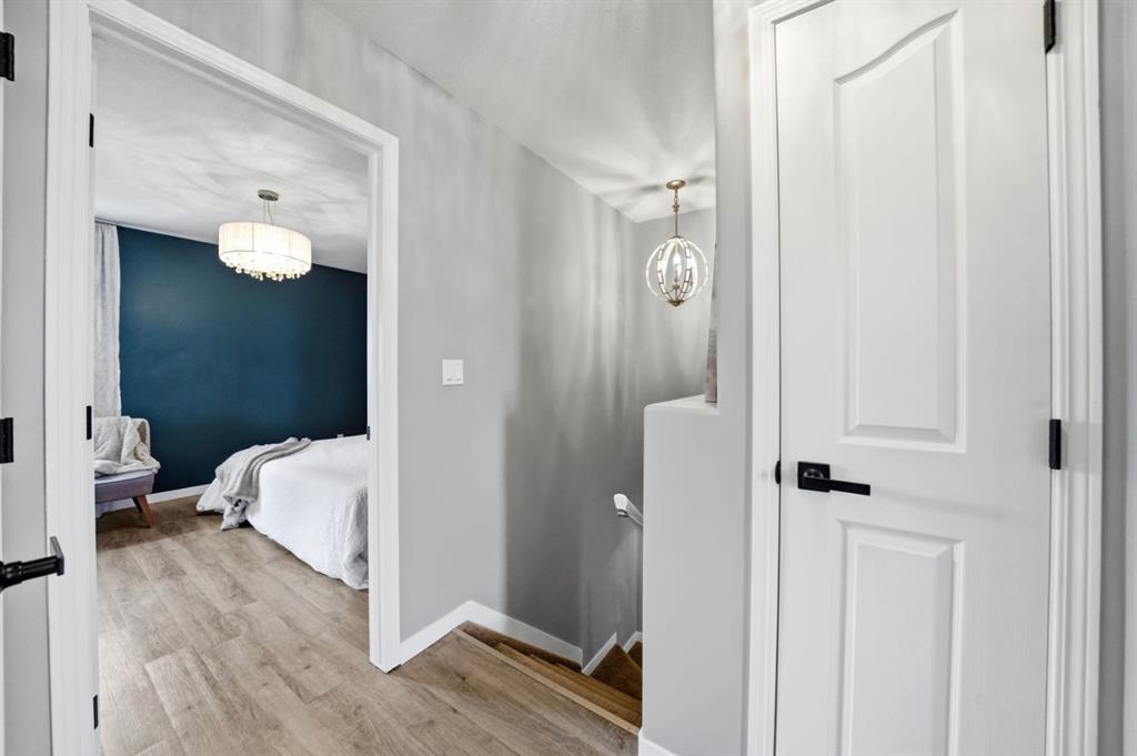 Fully renovated and move-in ready, this 4 bedroom, 4 bathroom townhouse condo offers incredible value. The bright main floor features very high ceilings and large windows that fill the living room with natural light. The updated kitchen includes stone countertops, upgraded appliances, a center island, and a corner pantry for extra storage. A convenient powder room with classic white subway tile and main floor laundry is located just off the kitchen. Upstairs, the spacious primary bedroom offers a walk-in closet and a beautifully tiled ensuite shower. Two additional bedrooms are complemented by a full 4-piece bathroom. The fully finished lower level provides a fourth bedroom which could be enjoyed as a den or extra living space, as well as one more 3 piece bathroom. Enjoy the south-facing balcony, welcoming front foyer with built-in bench and storage, and the convenience of a single attached garage. Condo fees are under $340/month and include professional management and snow removal. Pets are allowed with some restrictions. A fantastic opportunity for first-time buyers or families looking for space, style, and affordability.