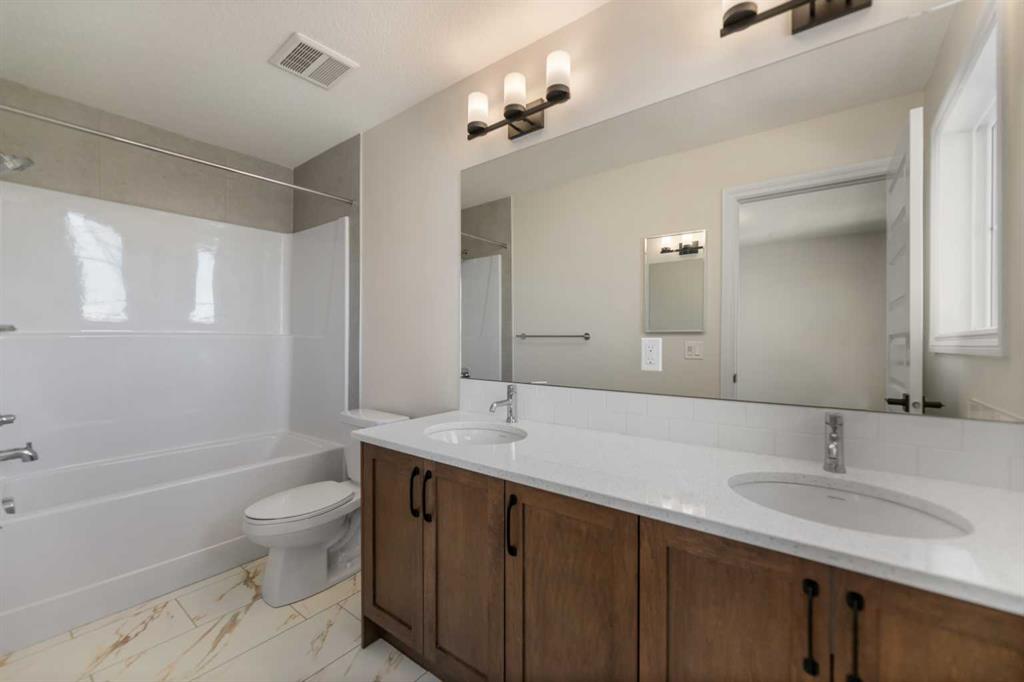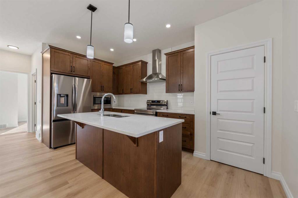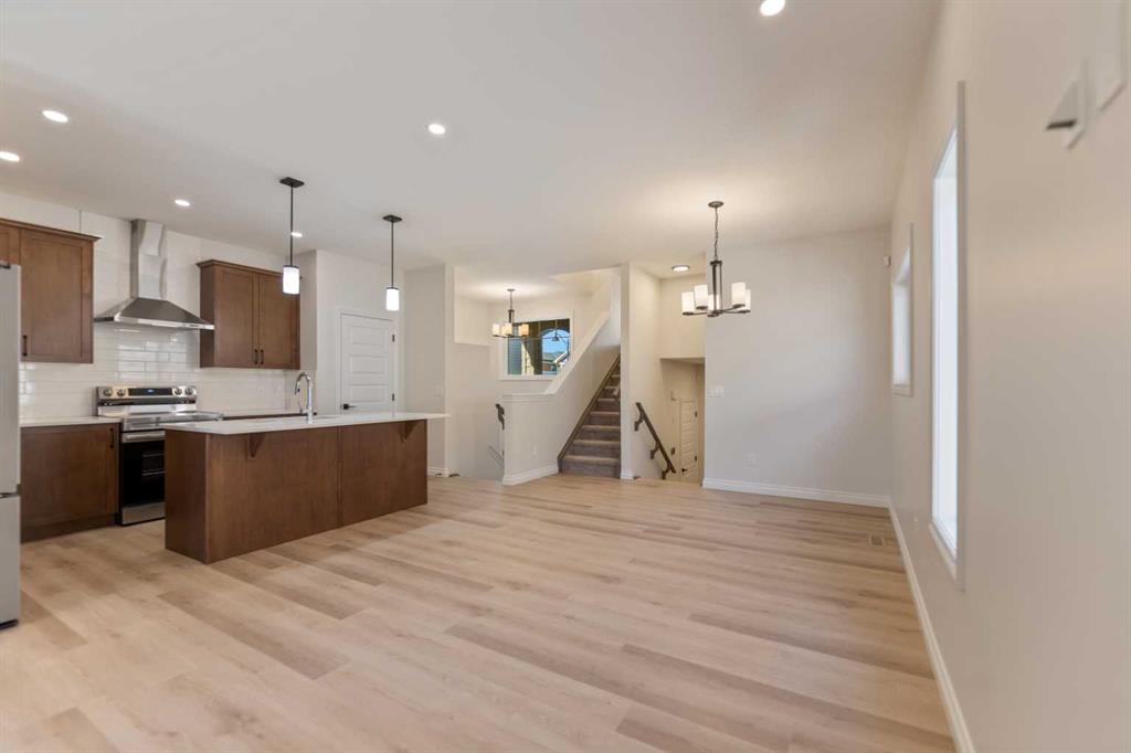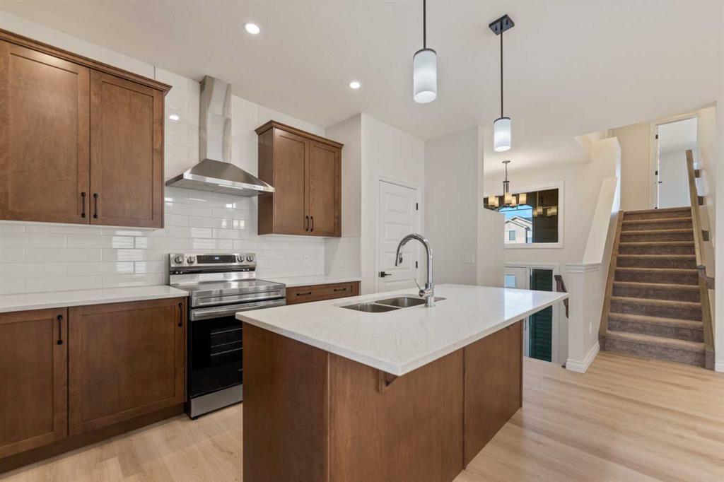 Welcome to this beautifully designed front-garage home in the sought-after community of Homestead, offering a perfect blend of functionality, space, and modern finishes. Situated on a west-facing lot, this home is filled with natural light throughout the day, creating a bright and inviting atmosphere. As you enter, you are welcomed by a stunning open-to-above foyer that adds a sense of space and elegance. The main floor features a well-thought-out layout including a spacious living room, dining area, and a modern kitchen complete with stainless steel appliances, recessed lighting, and stylish light fixtures throughout. This level also offers two generously sized bedrooms, a full 4-piece bathroom, and a convenient mudroom. Upstairs, the primary retreat provides a private and comfortable space, featuring a walk-in closet and a luxurious 5-piece ensuite with double vanity. A conveniently located laundry room completes the upper level. The fully finished basement with separate entrance adds incredible value and flexibility, offering two additional bedrooms, a full 4-piece bathroom, kitchen, living area, and its own laundry—ideal for extended family or potential rental income. Located close everyday amenities, this home is perfect for families, investors, or anyone looking for a versatile and well-appointed property in a growing community.