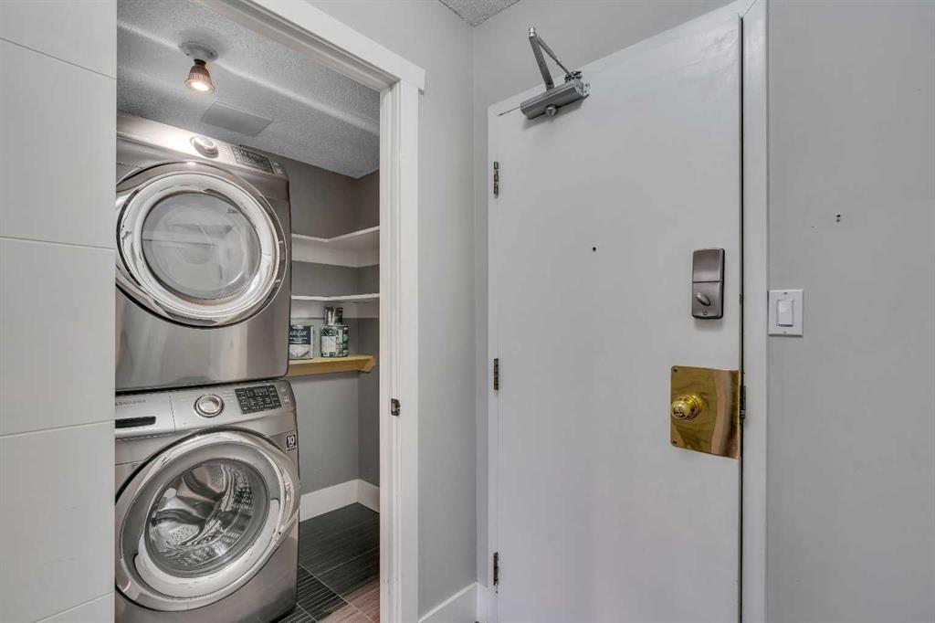Welcome to this beautifully renovated one-bedroom, one-bathroom condominium in Calgary’s vibrant Beltline neighbourhood. Featuring laminate flooring throughout and a modern kitchen with sleek cabinetry and quartz countertops. Thanks to its desirable south exposure, the living space is flooded with natural light, while a cozy wood-burning fireplace adds charm and warmth. The spacious bedroom can easily accommodate a king-sized bed, work from home space and offers a generous walk-in closet. Living here means enjoying urban convenience with a secure parking stall and additional storage locker for all of your gear. Pet owners will love living across the street from the fenced Connaught off-leash park. The building provides desirable amenities, including bike storage and a cedar sauna, perfect for relaxing at the end of your day. With a walk score of 99, you’re mere steps away from trendy 17th Avenue, where you’ll have access to a diverse mix of cafes, restaurants, shops, and a Save-On Foods grocery store. Whether you are a first-time buyer, an investor, or looking to downsize, this move-in-ready condo offers a perfect blend of modern finishes, amenities, and inner-city living.