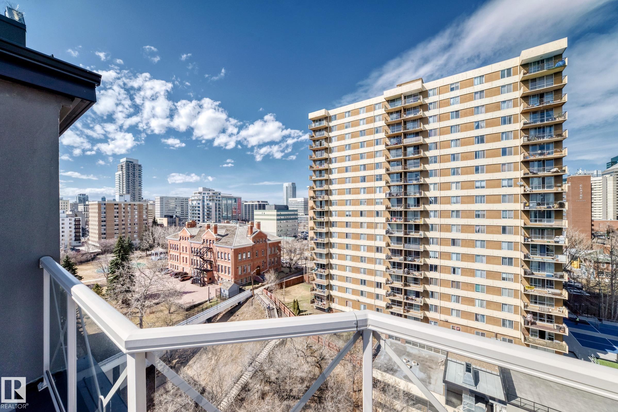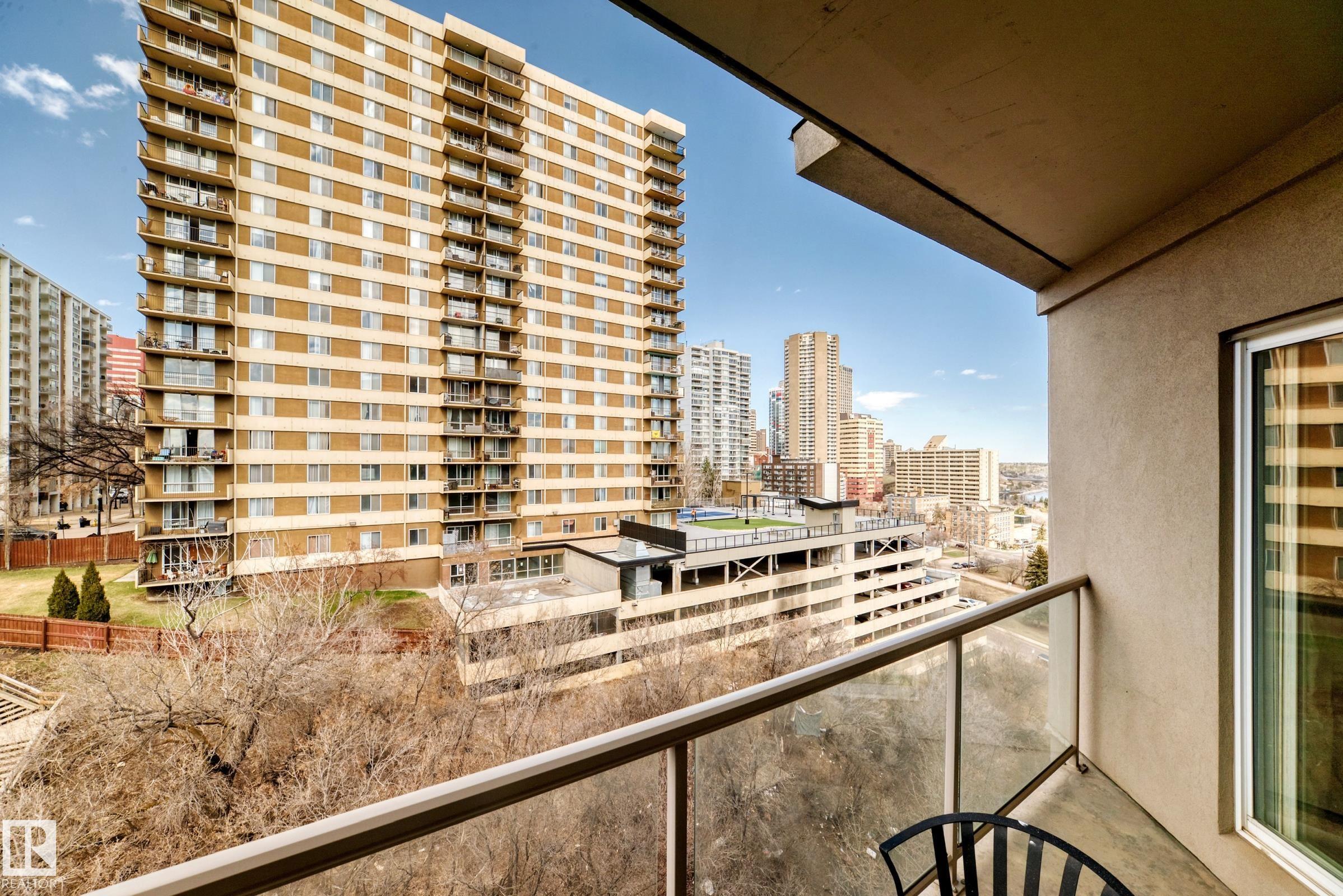 Discover this perfect urban retreat with this spacious 9th floor CORNER UNIT condominium in the Vivacity One concrete building. Gorgeous views of the river valley, Historic McKay Avenue School Archives & Museum, and the stairwell leading to R. J. W. (Dick) Mather Memorial Park in the heart of downtown! This spacious home with an open floor plan features a modern maple cabinetry kitchen with stainless steel appliances and granite countertops. Large bedroom with walk-in closet & a cheater door to the main bath. The living room is very spacious - perfect for adding a hobby area. All the necessities of condo living with in-suite laundry, AIR-CONDITIONING (AC) and Titled UNDERGROUND PARKING. Well-managed building (no pets allowed). Amenities include social room with kitchen and patio, fitness room and rooftop patio. Heat, water & electricity included in condo fees.