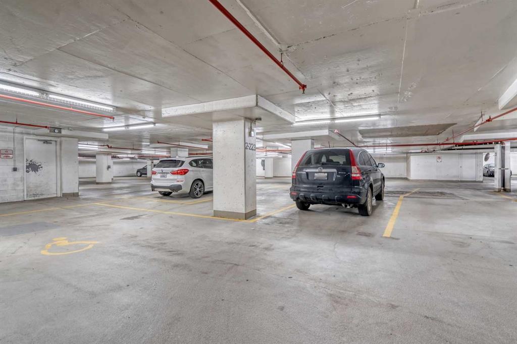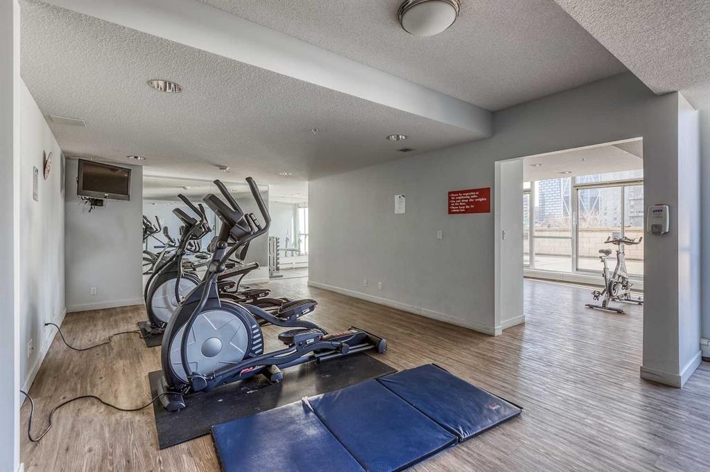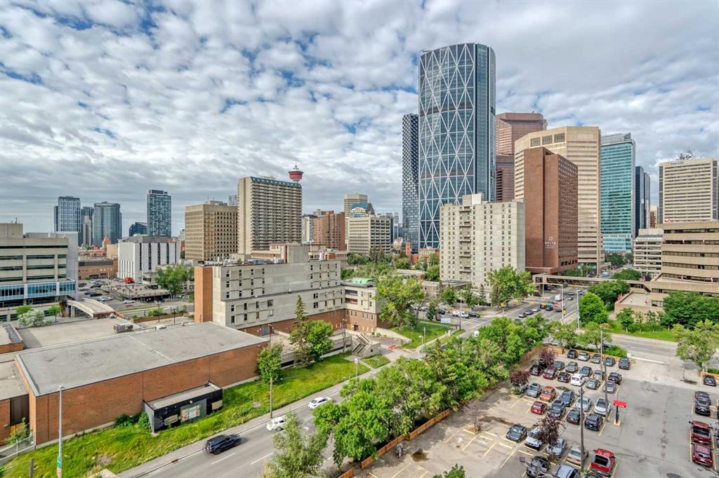VIEWS, VIEWS, and VIEWS. Experience the ever-changing views north and northwest to the Bow River, and west to the downtown core and Calgary Tower. This TWO-BEDROOM, TWO-BATHROOM CORNER unit with a DEN and a BIG PRIVATE BALCONY is the largest on the floor, according to the official Condominium Plan prepared by an Alberta Land Surveyor. Inside, you’ll find an EXTENSIVE RENOVATION with LAMINATE flooring throughout the main living areas and bedrooms, perfectly complementing the FLOOR-TO-CIELING windows that showcase stunning views. The kitchen, with its tied floor, is the ideal size, featuring GRANITE countertops, a tile backsplash, and STAINLESS-STEEL appliances. This unit has been OWNER-OCCUPIED and meticulously maintained with EXCEPTIONAL CARE! Here, you are close to everything the East Village has to offer—riverfront paths for walking and biking, paddle boarding on the river; restaurants; nightlife; Prince’s Island Park; the public library; and art centres—all within walking distance. Superstore is conveniently located just two blocks from the building. Riverfront Pointe offers a full gym, an amenities room, and an outdoor patio, along with onsite security, bicycle storage, and secure heated underground parking including visitor parking. The TITLED parking stall is conveniently located near the elevator, and a second stall is available for rent or purchase. Onsite, a small garden area adds to the welcoming ambiance of the complex. This is a fantastic property—make it your home!