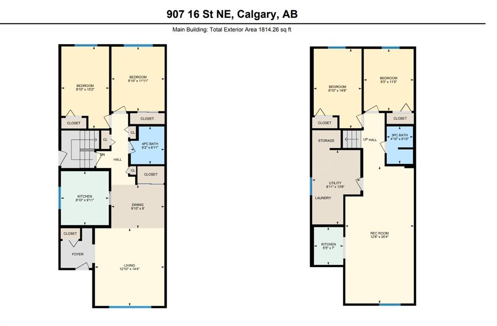 This is a prime investor opportunity to acquire a fully renovated, fully leased-out duplex at 907/909 16 Street NE in the desirable inner-city community of Mayland Heights. This property delivers immediate, robust cash flow with $66,400 in confirmed annual rental income. All units are highly desirable to tenants, offering an configuration of 2 bedrooms and 1 bathroom, each with its own separate entrance, dedicated laundry facilities, and updated electrical panels. Crucially for low operating costs and capital planning, the property features high-efficiency furnaces and a roof that was replaced in 2021. The building sits on a substantial 60 ft x 120 ft lot with coveted R-CG zoning, allowing for future high-density redevelopment (like row houses or townhouses). Additional value is provided by an oversized double detached garage and recent upgrades, including new concrete sidewalks, all set against the backdrop of appealing Downtown Calgary views. This asset is genuinely turnkey, offering a powerful combination of current income and significant long-term appreciation potential. 3d Virtual Tours: https://youriguide.com/907_16_st_ne_calgary_ab & https://youriguide.com/909_16_st_ne_calgary_ab