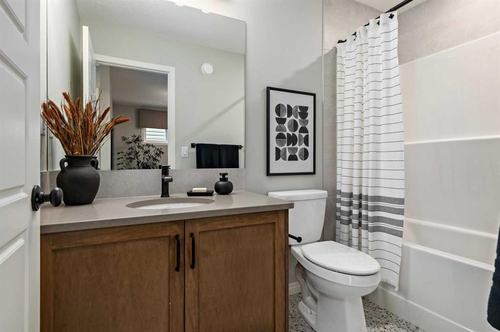 Located in the growing northeast community of Huxley, 91 Huxland Road NE offers a thoughtfully designed two-storey home that blends flexibility, comfort, and everyday convenience. Just one block from a playground, basketball court, and green space—and within walking distance to a bus stop—this property is perfectly positioned for family living. Plus, you’re only one minute from East Hills Shopping Centre, home to Costco, Walmart, restaurants, cinemas, and a wide range of amenities. The main floor features a bright and functional open-concept layout designed for both daily living and entertaining. A standout feature is the main-floor bedroom and full bathroom, making it ideal for multigenerational living, guests, or a private home office. The seamless flow between the kitchen, dining, and living areas creates an inviting space for gathering with family and friends. Upstairs, the well-planned upper level includes two secondary bedrooms that share a full bathroom, while the spacious primary suite offers a private retreat complete with a walk-in closet and ensuite bathroom. A centrally located bonus room provides additional living space perfect for movie nights, a play area, or a home workspace. The upper-level laundry room adds everyday practicality and convenience for busy households. The home also includes a side entrance, offering excellent potential for future basement development (subject to city approval), providing flexibility for extended family or additional living space down the road. A double attached garage completes the property, offering secure parking and added storage. Set in a family-friendly community with quick access to shopping, transit, and major roadways, 91 Huxland Road NE delivers both lifestyle and location. With its versatile layout, modern conveniences, and future potential, this home presents an exceptional opportunity for families and investors alike. *Photos are taken from the Showhome of a similar home. Finishes may vary*