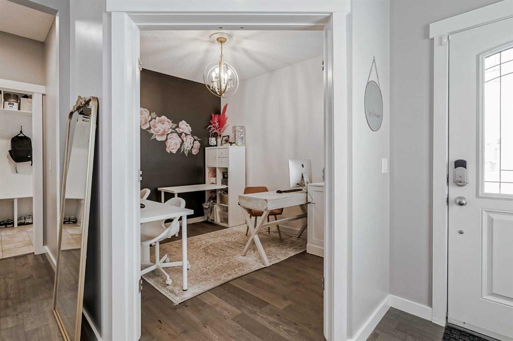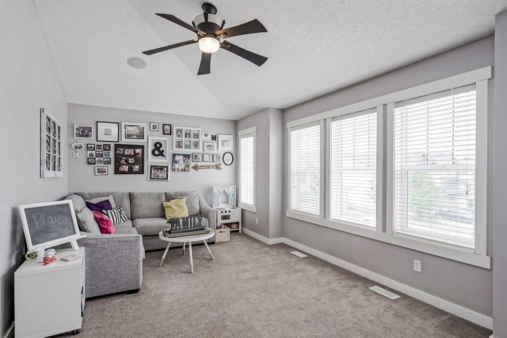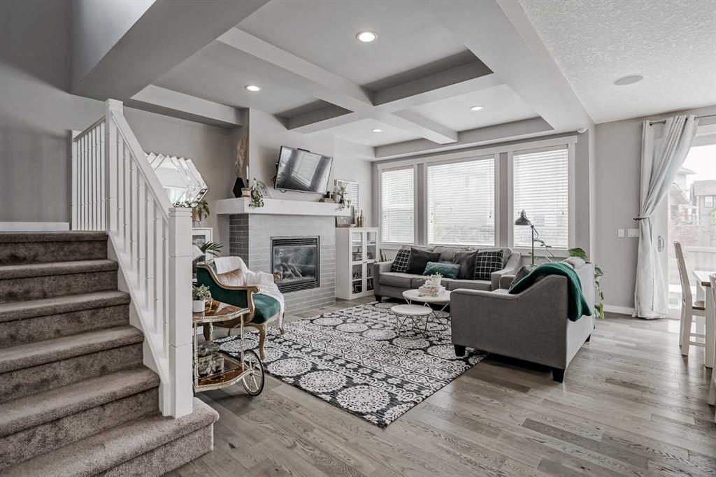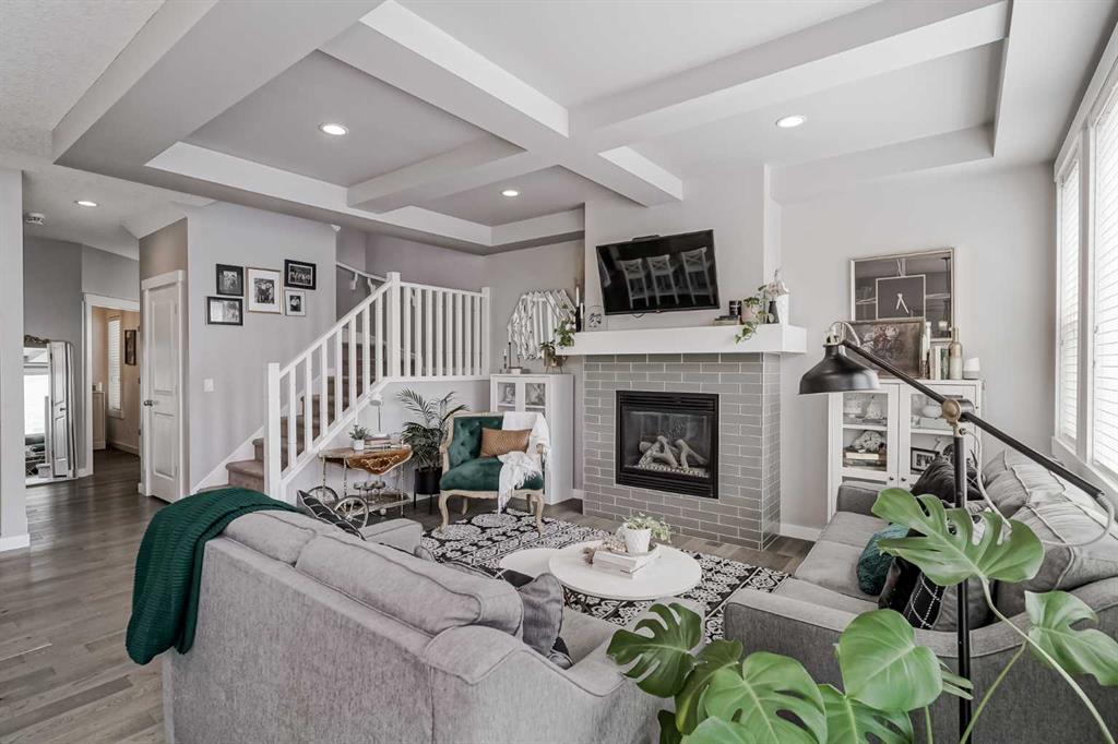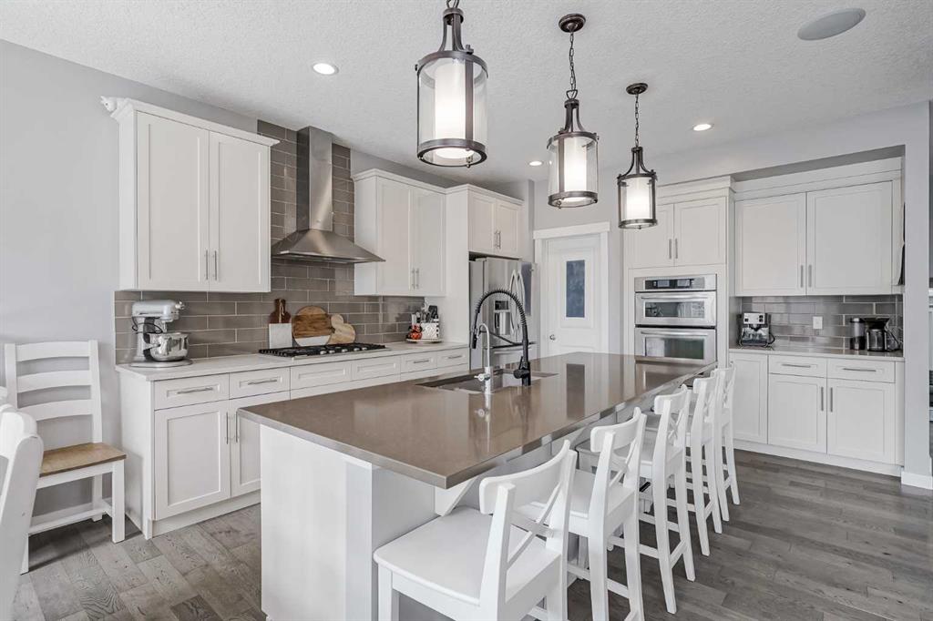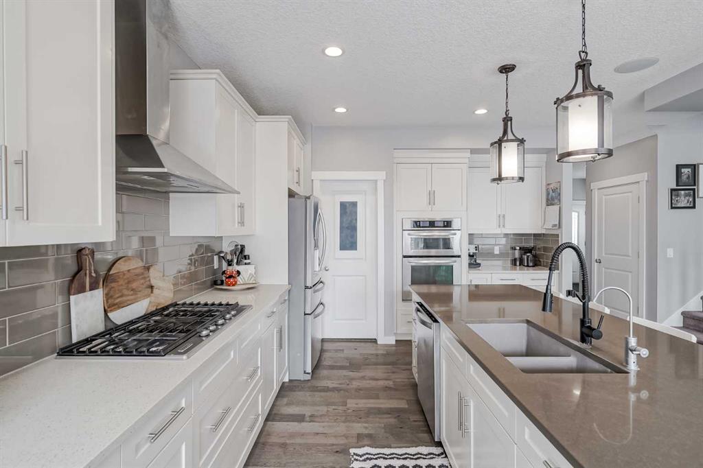 Open House on Saturday, October 18th from 2pm -4pm. This beautifully upgraded 2,418 sq ft home by Homes by Avi sits on a quiet pie lot at the end of a cul-de-sac, steps from a playground in the heart of Nolan Hill. The main level features 9-foot ceilings, hardwood floors, abundant natural light, and a built-in sound system. The upgraded gourmet kitchen is a standout with a massive 9-foot quartz island, dual Silgranite sinks, stainless steel appliances including a 36-inch gas cooktop, built-in double wall ovens, and 42-inch cabinetry. The great room centers around a gas fireplace with coffered ceilings, and there’s a versatile front flex room ideal for a home office. A spacious mudroom with a built-in locker and a rare side entrance adds to the home’s functionality. Upstairs, a vaulted bonus room provides a perfect retreat for family movie nights or a play area. The luxurious primary suite features dual walk-in closets, dual vanities, and a built-in makeup station. Two additional bedrooms, an upper-level laundry room, and a well-appointed full bath complete the upper floor. The professionally finished basement by Basement Builders continues the home’s quality, featuring 9-foot ceilings, a large recreation area with a home gym on one side and a cozy family room with a bar on the other, plus a fourth bedroom and a full bathroom—ideal for guests or extended family. Outside, the backyard has been thoughtfully landscaped with mature trees, a natural stone patio and walkway, a large deck featuring privacy screens and a hot tub, as well as a shed, dog run, and an integrated sound system. The oversized, double-attached garage is loaded with extras, including a dog wash, workbench, sink, and overhead storage. Nolan Hill continues to grow as one of NW Calgary’s most family-friendly communities, with winding pathways, playgrounds, and quick access to local amenities, including The Gates of Nolan Hill shopping plaza. New schools are in the planning stages, and a range of excellent public and Catholic schools already serve the community. Nearby transit options, well-maintained green spaces, and a strong sense of community make this home a standout choice for families seeking to establish roots.
