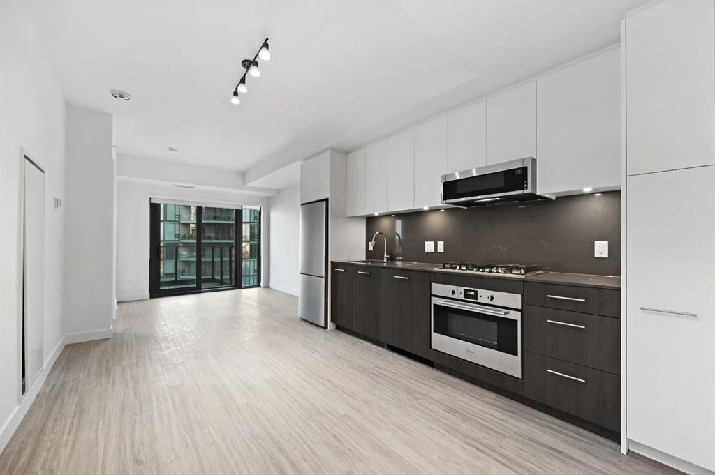 Elevate your lifestyle in this 9th floor residence at First & Park, Eau Claire’s newest luxury condo. This 2 bedroom, 2 bathroom home offers sophisticated design and sweeping north-facing views, creating a calm retreat above the city. The open layout features a modern chef’s kitchen with quartz countertops, integrated appliances, and stylish finishes, flowing seamlessly into a sun-filled living space framed by floor-to-ceiling windows. The primary suite is complete with a spa-inspired ensuite, while the second bedroom and full bath provide comfort for guests, family, or a home office. With titled underground parking and secure storage and building amenities including: upscale gym & yoga studio (outdoor space beside with gas bbq hook ups), party lounge, modern co-working space and concierge. Step outside and enjoy the best of Calgary’s downtown — the Bow River pathways, Peace River Bridge, Prince’s Island Park, and vibrant dining and shopping are just moments away. Perfect for professionals, downsizers, or those seeking a lock-and-leave lifestyle, this is urban living at its finest. Packages available for FURNISHED UNITS!
