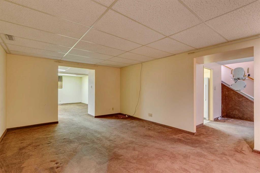 Nestled on a quiet cul-de-sac in the desirable community of Maple Ridge, this classic 1966 bungalow presents a rare opportunity. With nearly 2,500 SqFt of living space and cherished by a single owner, the home exudes a timeless appeal, starting with its picturesque front porch and built-in planters that create beautiful curb appeal. Step inside the main floor, which offers a generous 1,360 SqFt of comfortable living. The large living area, centered around a cozy wood-burning stove, is perfect for relaxing evenings. The adjoining dining area flows into a kitchen featuring an abundance of classic wood cabinets, built-in appliances, and a window overlooking the backyard. This level hosts 4 bedrooms, including a master suite complete with a private two-piece ensuite and a walk-in closet. A full family bathroom serves the remaining rooms. The lower level comes complete with a chair lift and expands your living options. Here you will find a large family room warmed by a second wood-burning fireplace, which opens into a spacious recreation room with a wet bar—ideal for hosting friends and family. A convenient three-piece bathroom, a large laundry and utility room, and ample storage complete this level. The property backs onto the Willow Ridge Community Association pickleball courts, with a paved alley providing separation. The large yard features a patio area, RV parking, and an oversized double detached garage. This home has been meticulously maintained with newer windows, a newer roof, and the added comfort of air conditioning. Its prime location is just steps from RT Alderman School and offers easy access to major routes, the amenities at Willow Park Village, and is a mere 10 min walk to the Willow Park Golf Course, making it a truly exceptional find.