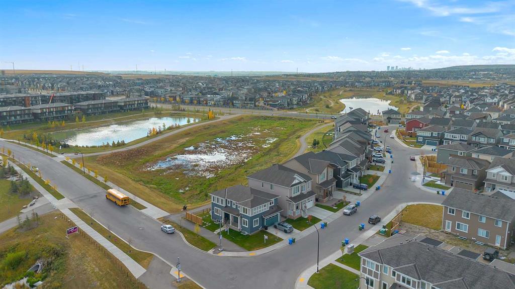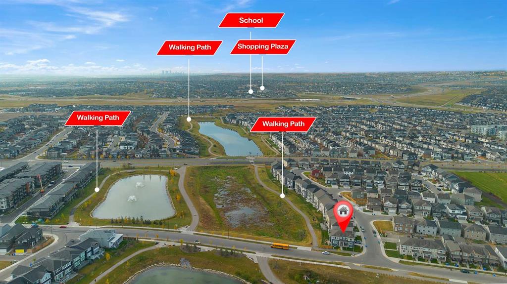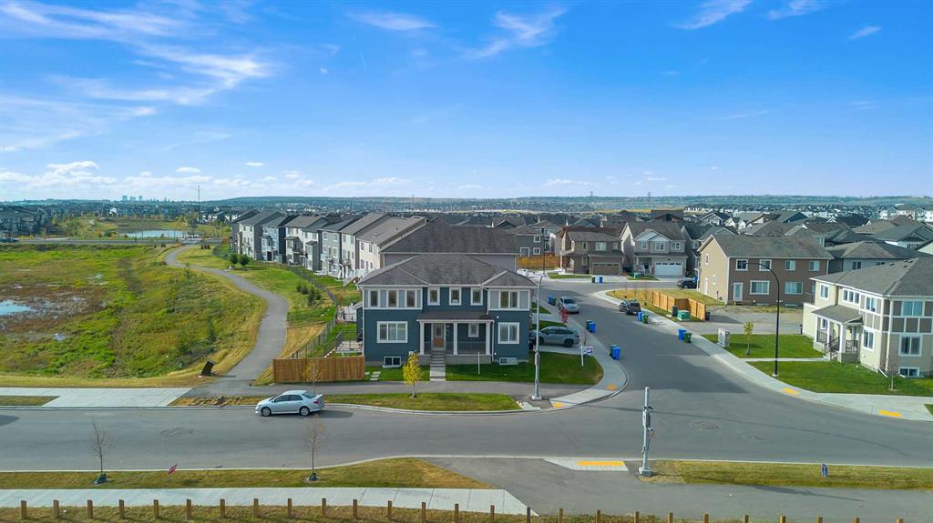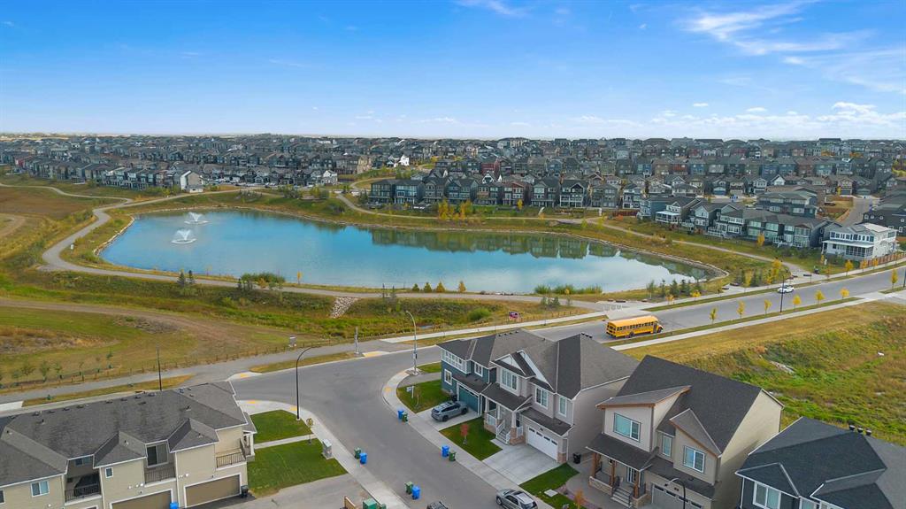Wake up to serene POND VIEWS framed by EXPANSIVE WINDOWS in the luxurious primary suite of this exceptional 7-BEDROOM, 4-FULL BATHROOM home. Perfectly positioned on a PREMIUM CORNER LOT surrounded by greenspace, it offers privacy, light, and a daily connection to nature that’s hard to match. Inside, upgraded designer lighting complements the chic, modern finishes and floods every room with warmth. A rare MAIN-FLOOR BEDROOM with FULL BATH provides the ideal setup for anyone who prefers single-level living. The LEGAL BASEMENT SUITE is a true income booster, currently leased to a professional couple (no pets) for $1,550 per month through August 2026. Upstairs, discover 4 SPACIOUS BEDROOMS, including an oversized primary retreat with breathtaking morning views of the water, plus a versatile SECOND FLOOR-BONUS ROOM that’s perfect for a media room. Outdoors, the side yard invites summer barbecues and playtime, while a picturesque walking path across the street and a nearby playground keep kids and adults active. Everyday essentials—grocery stores, schools, and local plazas—are only minutes away. This property blends elegance, functionality, and financial upside in one remarkable package. Don’t miss this rare opportunity to own a stylish family home with built-in revenue and an unbeatable natural setting—book your private showing today!