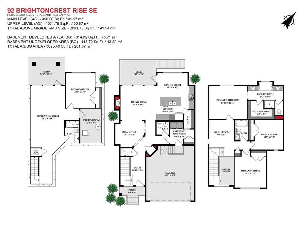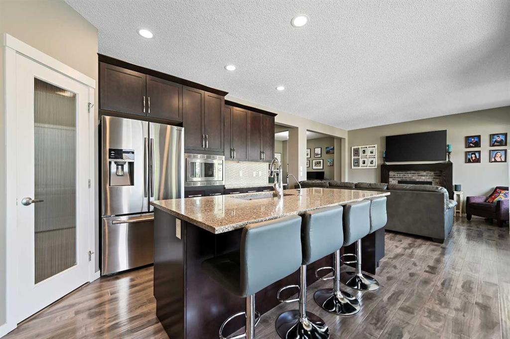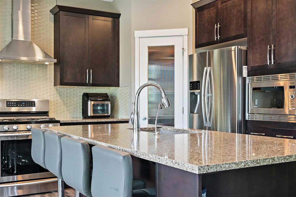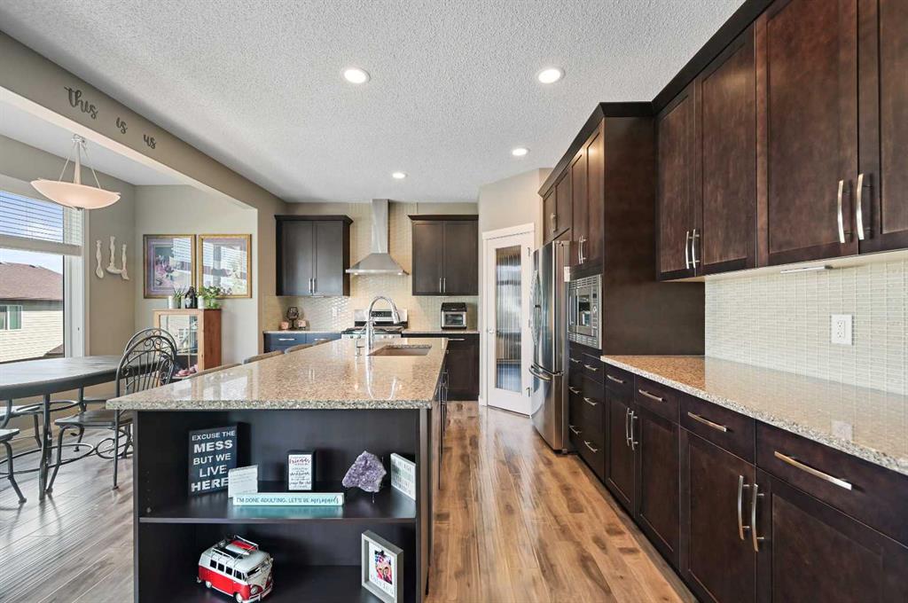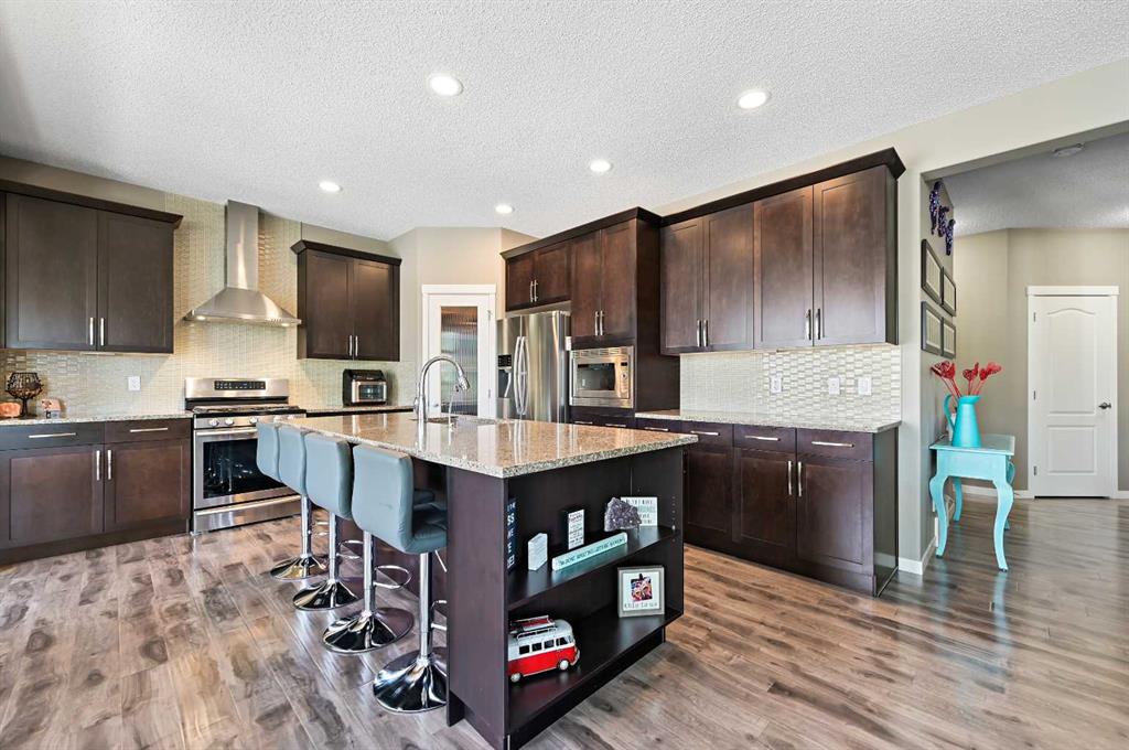 JEWEL OF A DEAL | NEW BRIGHTON WALK-OUT | PRIME LOCATION This exceptional home offers the perfect combination of style, function, and location—just steps from the New Brighton Clubhouse, ponds, ice rink, parks, pathways, schools, shopping, transit, and major south expressways. Enjoy year-round access to the community’s premier amenities including tennis, volleyball, basketball, splash park, playgrounds, and hockey rink. Meticulously crafted and upgraded, this URBAN STYLE WALK-OUT home boasts over 3,025 sq ft of living space with 4 bedrooms, 3.5 bathrooms, a bonus room, and a fully finished lower level. The main floor showcases an open-concept design with a bright and spacious great room anchored by a cozy gas fireplace, flowing seamlessly into the dining area and chef-inspired kitchen. The kitchen is designed for both efficiency and entertaining, featuring shaker-style cabinetry, gas cooktop with custom hood cover, upgraded stainless steel appliances, walk-through pantry, glass tile backsplash, recessed lighting, and a dramatic central island with flush eating bar and undermount granite sink. Gleaming engineered hardwood floors and upgraded tile in all baths elevate the space. Upstairs, a central bonus room—perfect for family movie nights—separates the expansive primary suite from two additional bedrooms. The primary retreat includes a spa-inspired ensuite with deep soaker tub, separate shower, and large walk-in closet. The fully developed walk-out basement adds a fourth bedroom, full bathroom, and spacious recreation area, providing versatility for guests, extended family, or a home gym. Outdoor living is easy with a low-maintenance landscaped yard, upper deck, lower concrete patio, and walkways. The home’s curb appeal is enhanced with stone accents, wood details, paneled garage door, and a covered front entry. Additional features: Oversized, fully insulated heated double attached garage, Modern lighting and plumbing fixtures, R/O water system, White-painted baseboards, casings, and doors, Fully fenced backyard. With its ideal location, functional floor plan, and quality finishes, this home delivers both comfort and convenience. Call your friendly REALTOR® today to arrange your private tour!