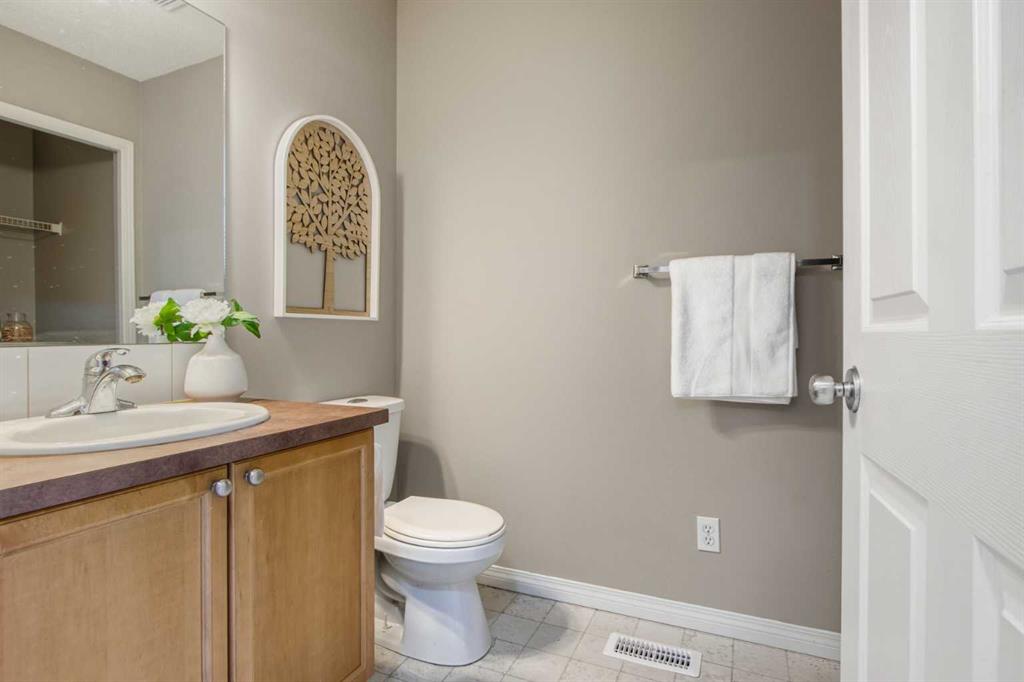 ** AWESOME location on quiet cul-de-sac – walk to school and community paths & playgrounds. ** LARGER private fenced backyard – with no neighbors behind & sunny westerly views! GREAT yard for kids! ** OPEN concept main floor plan – great room with gas fireplace – kitchen with good storage and a working island – dining area with patio doors to the deck. – MAIN floor laundry and a 2 pce POWDER room. ** UPPER level large BONUS room – good sized PRIMARY bedroom with 3 pce ensuite – two good secondary bedrooms and a full main bathroom. ** UNSPOILED lower level with good sized windows – GREAT development potential. ** RECENT upgrades – painting – flooring – light fixtures! ** BRIGHT and AIRY – shows well – Move in READY!! ** call YOUR FAVORITE realtor for a private viewing –or—come by our OPEN House both Saturday & Sunday from 1:30 pm to 4:00 pm. ** Come by and CHECK-it-OUT!!