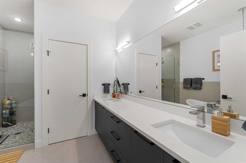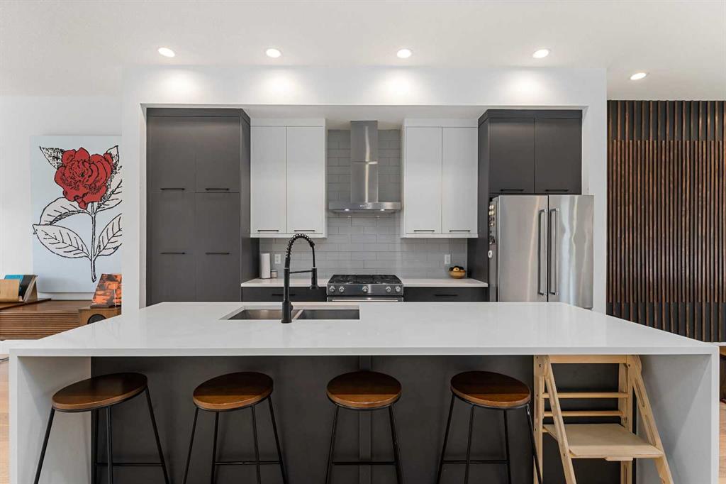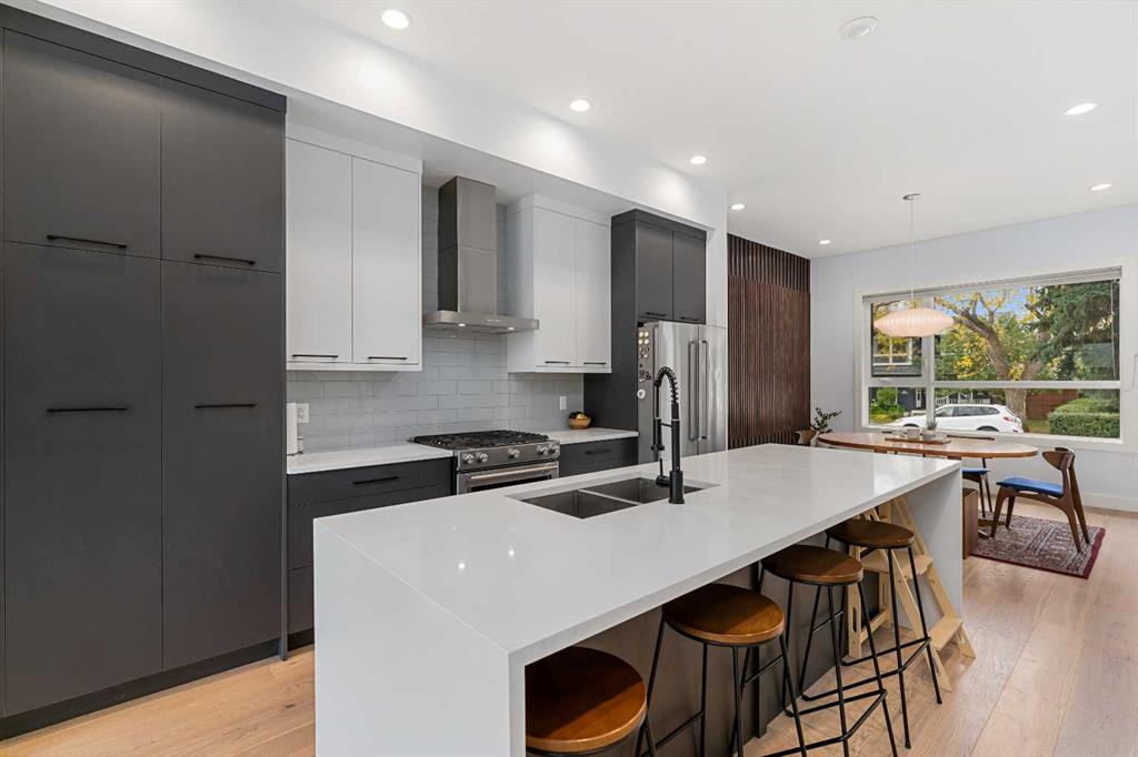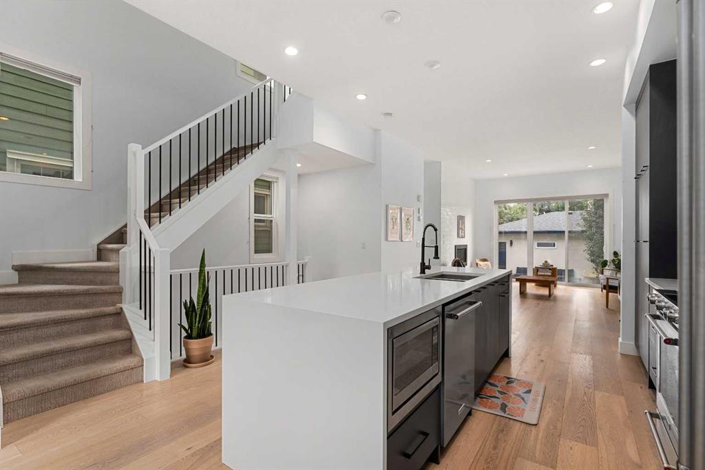 This thoughtfully designed 2-storey semi-detached infill in the heart of Renfrew combines style, function, and value with over 2,500 sq. ft. of developed living space, 4 spacious bedrooms (3 above grade), and 3.5 bathrooms. Offering quality finishes throughout and a sought-after location, this is the perfect opportunity to enjoy modern inner-city living at an attractive price point. The main floor showcases 10-ft ceilings, engineered hardwood flooring, and an open, bright layout ideal for both family living and entertaining. A formal dining area is perfect for hosting, while the living room features a sleek gas fireplace and oversized sliding glass doors that open to the backyard. The chef-inspired kitchen impresses with stainless steel appliances, custom 2-tone cabinetry, quartz countertops, and a large island with bar seating. At the rear, a tiled mudroom provides built-in millwork and direct access to the double detached garage. Upstairs, you’ll find 3 generous bedrooms, a full bathroom, and the convenience of a second-floor laundry room. The luxurious primary suite offers a large walk-in closet and a spa-like 5-piece ensuite complete with a deep soaker tub, dual vanities, and an oversized glass shower—your private retreat after a long day. The fully developed basement extends the living space with a large rec room that’s perfect for movie nights or a home gym. A spacious fourth bedroom and another full bathroom make it ideal for guests or growing families. Nestled in the vibrant community of Renfrew, this home offers quick access to schools, parks, shopping, restaurants, and downtown Calgary. If you’re looking for a move-in ready inner-city home with modern finishes, spacious living, and unbeatable value—this is the one.