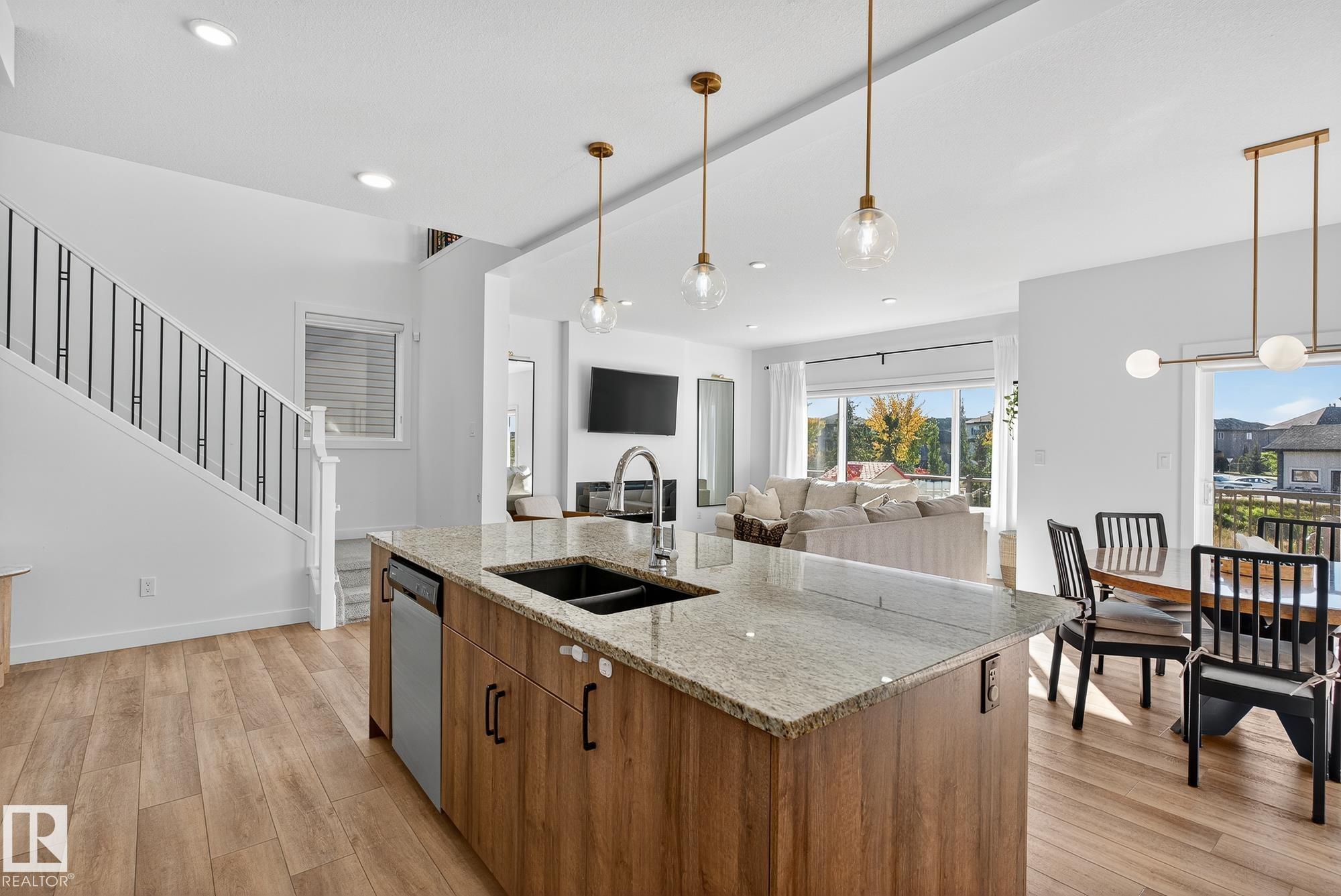 STUNNING EXECUTIVE WALKOUT! Perfectly positioned in prestigious Klarvatten, this spectacular 2-storey with a LEGAL SUITE exudes modern elegance & exceptional craftsmanship. Designed for luxury living, it features rich flooring, A/C, duel furnace, designer lighting & a stunning custom floor plan with architectural details. The chef’s kitchen is a dream—premium 2-tone cabinetry, quartz counters, butler’s pantry, island, breakfast bar, & top-of-the-line appliances. The open dining area leads to a massive deck with scenic walking trails, while the great room impresses with large windows & a sleek linear fireplace. A versatile office/bedroom, elegant bath, & custom mudroom complete the main level. Upstairs offers a stylish bonus room, laundry, & 3 bedrooms including a serene primary suite & spa-inspired ensuite. The bright, luxury legal suite below features a modern white kitchen, quartz counters, w/out patio to a SOUTH backyard. HEATED o/s garage, huge driveway & pristine landscaping—TRULY A TURN KEY HOME!