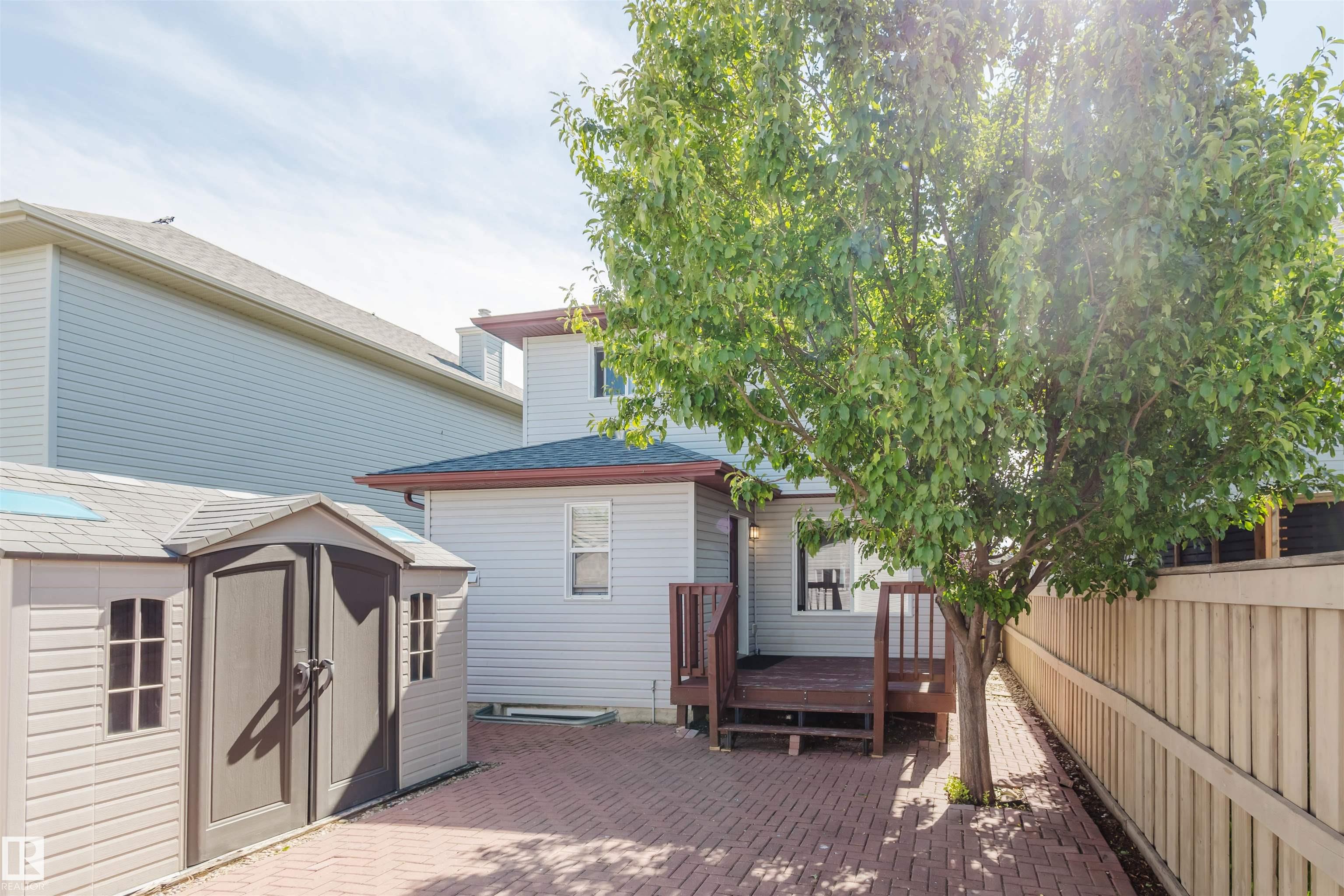 Welcome to this nicely upgraded 2 storey home in highly sought-after community of South Terwillegar! Located on a quiet street, this large 1477 sqft home welcomes you with a beautiful veranda. Main floor features a large living room w/ new vinyl flooring, open kitchen w/plenty of cabinets, counter space, island & new appliances (D/W & Microwave Hood Fan-2025), spacious dining area, 2-pc bath & laundry. Upstairs has BRAND NEW carpet & primary suite w/ a 4-pc ensuite and W/I closet, TWO more good sized brms and 4 pc bath. Basement is partially finished w/ a DEN, a 4th bdrm & a 3pc bath. Newer paint and new hot water tank (2024). Low maintenance backyard. 20’X20’ oversized detached garage and storage shed. Close to great schools, shopping, Terwillegar Rec Centre, and all other amenities.
