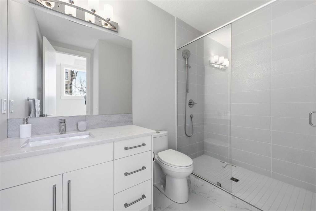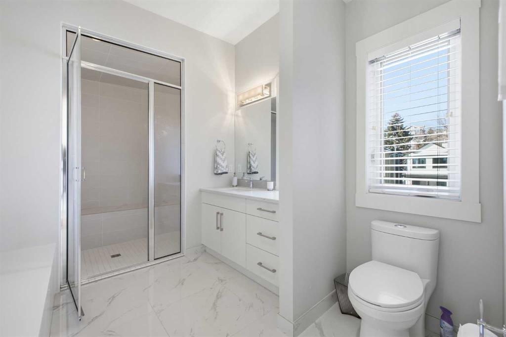 OPEN HOUSE SATURDAY, MARCH 14TH FROM NOON - 2 PM & SUNDAY, MARCH 15TH FROM 2-4 PM. PANORAMIC CITY AND DOWNTOWN VIEWS define this contemporary 4 bedroom residence in historic Bridgeland, offering over 4,600 sq ft of beautifully designed living space, including a fully developed walk out basement. Thoughtfully crafted for both everyday comfort and elevated entertaining, the home blends modern finishes with exceptional functionality. The open, airy main level features hardwood floors and soaring ceilings. A spacious dining area easily accommodates large gatherings, while the living room—anchored by a remote controlled feature fireplace—creates a warm, inviting focal point. The kitchen is tastefully appointed with quartz countertops, an island with eating bar, abundant cabinetry including a walk in pantry, stainless steel appliances, and a bright breakfast nook. A mudroom and 2 piece powder room complete this level. The second floor hosts three well proportioned bedrooms, a 5 piece bath, and a laundry room equipped with a sink and storage. The private primary retreat enjoys its own balcony, a generous walk in closet, and a secluded 5 piece ensuite featuring in-floor heat, dual sinks, a relaxing soaker tub, and an oversized shower. The third level is an exceptional entertaining space, offering a large loft with in-floor heat, wet bar and access to a spectacular rooftop patio showcasing sweeping skyline views. A fourth bedroom and a 3 piece bath with rejuvenating steam shower complete this upper level. The fully developed walk out basement, warmed with in floor heat, includes a spacious recreation/media room with wet bar, a dedicated office, and a 3 piece bath. Additional highlights include new hardwood flooring in the loft and bedrooms, built in speakers, a south facing front patio, and a private backyard with deck, swim spa, and access to the heated triple detached garage. This exceptional property enjoys an enviable location close to Bridgeland’s charming shops, cafés, and restaurants, the Calgary Zoo, Bow River pathways, schools, public transit, and offers effortless access to the downtown core.