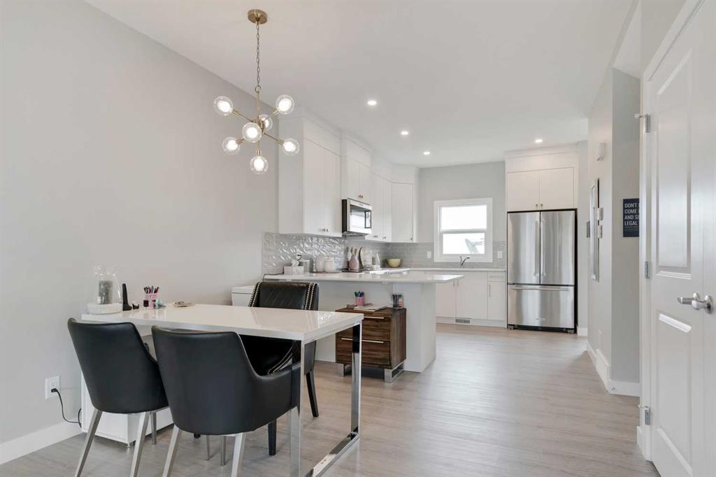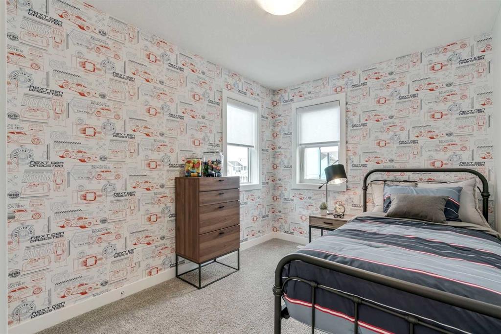 This beautifully designed show home features a double detached garage and welcoming front porch, complemented by 9’ knockdown ceilings throughout the main level. The front lifestyle room offers a spacious area to relax, while a dual-door closet provides ample storage. The center dining area flows effortlessly into the rear kitchen, which boasts stainless steel appliances including a slide-in stove, over-the-range microwave, French door refrigerator, and dishwasher, all enhanced by soft-close cabinetry, quartz countertops, and a stylish tiled backsplash with added upper soffit filler. A dual-door pantry and rear entry with a coat closet add convenience, along with a 2-piece bath on the main floor. Upstairs, plush carpeting covers the hall and two front bedrooms, while the rear primary suite features vinyl plank flooring in the 4-piece bath, complete with a quartz storage vanity, tub surround with decorative tile accents, and direct access to a spacious walk-in closet. The upper laundry area includes a washer, dryer, and additional upper cabinets for storage. A second vinyl plank 4-piece bath with quartz vanity and tiled tub surround serves the upper level, alongside an upper linen closet. The finished legal basement suite with a separate side entry offers comfortable living with carpeted floors and knockdown ceilings. It includes a common area leading to the utility room, a stacked laundry closet with full-size washer and dryer, and a vinyl plank 3-piece bath featuring a separate shower, quartz storage vanity, and tile accents. The suite’s kitchen is equipped with vinyl flooring, upper and lower cabinets, stainless steel fridge, smooth-top stove, dishwasher, quartz counters, tiled backsplash, and over-the-range microwave. A rear bedroom with closet completes this self-contained living space. Not just a home but a smart investment with a legal suite and double detached garage! This home combines modern finishes, thoughtful design, and a fully finished legal suite, perfect for families or investors seeking comfort and versatility.
