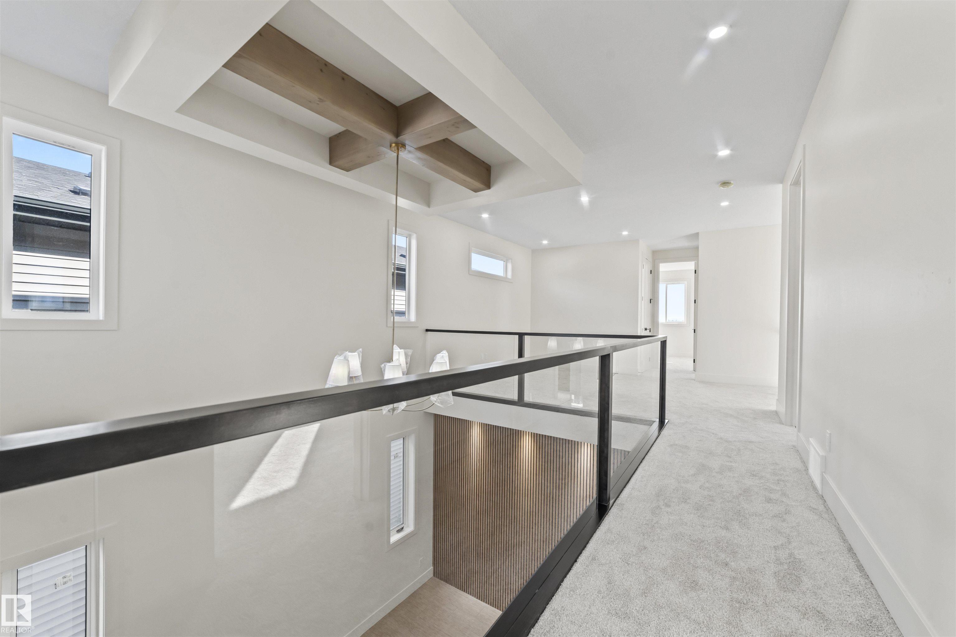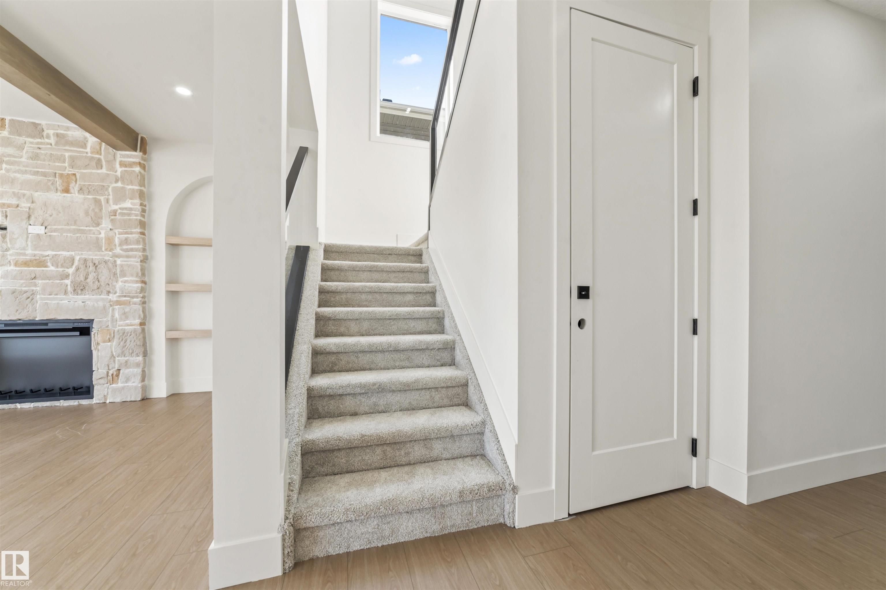 Welcome to this stunning 5-bedroom, 4-bath home in the Orchards, set on REGULAR lot with proposed future park at the back. The main floor includes a bedroom with full bath, ideal for guests or extended family, along with a bright modern kitchen featuring quartz countertops and a convenient spice kitchen. An open-to-below foyer with feature wall and elegant glass railing highlight the home’s custom design. Upgrades include 9’ ceilings on all levels, 8’ doors, vaulted ceiling in the primary bedroom, custom mudroom cabinets, and premium finishes throughout. Upstairs you’ll find 4 spacious bedrooms, including a luxurious primary suite with fireplace feature wall, walk-in closet, and spa-like 5-piece ensuite with freestanding tub, plus 2 additional bathrooms including a Jack & Jill. With a separate side entrance and separate furnace, the basement is ready for future suite development & backyard has deck also.Landscaping is done. Conveniently located near schools, shopping, Anthony Henday, and public transit.