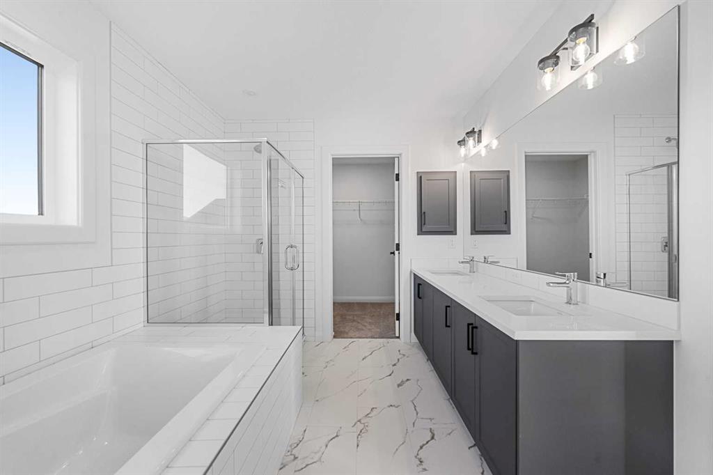 Luxurious Move-In Ready Home | The York by Broadview Homes – 2,017 SqFt of Refined Living Step into elegance with The York by Broadview Homes, a beautifully crafted move-in ready residence offering 2,017 square feet of thoughtfully designed living space across the main and upper levels. This brand-new contemporary home blends modern luxury with everyday comfort, creating the perfect setting for upscale family living. At the heart of the home, the chef-inspired kitchen is a true showstopper—featuring gleaming granite countertops, 42" upper cabinets with crown molding, soft-close cabinetry, and premium stainless steel appliances, including a gas range. A walkthrough pantry offers direct access to the mudroom and interior garage entry—perfect for effortless grocery drops. The open-concept dining area is ideal for hosting intimate dinners or large family gatherings, while the spacious great room is anchored by a stylish electric fireplace, creating an inviting ambiance. Designed with flexibility in mind, the main level offers a flex room - a great space for a bedroom and 4-piece bath, making it ideal for multigenerational living or a private guest bed. Upstairs, discover three additional generously sized bedrooms, a central bonus room, and a convenient laundry room. The lavish primary retreat is your private sanctuary, complete with a spa-inspired 5-piece ensuite featuring dual vanities, a deep soaking tub, walk-in glass shower, private water closet, and a spacious walk-in wardrobe. Additional upper bedrooms share a well-appointed 4-piece bathroom with a tub/shower combination, and the bonus room is perfect for cozy family movie nights or a relaxed lounge space. The 9-foot basement ceilings and rough-in plumbing offer endless potential for future development. This home is equipped with a 200 AMP electrical panel, two-stage furnace, and triple-car garage, providing ample space for vehicles, hobbies, and storage. Every detail has been carefully curated, from the maple hardwood and luxury vinyl plank flooring, to tile in all wet areas, superior carpeting, pot lights in the kitchen, and custom cabinetry by Wildwood Cabinets. Don’t miss your chance to own this luxurious, move-in ready masterpiece by Broadview Homes. Schedule your private showing today and experience the elevated lifestyle that awaits!