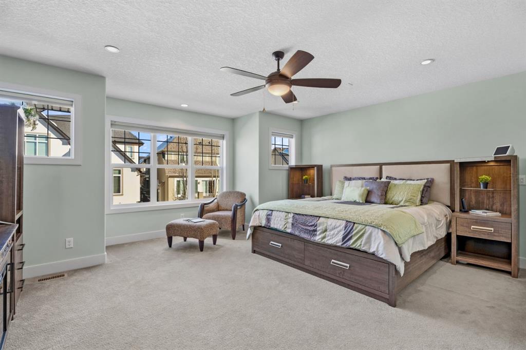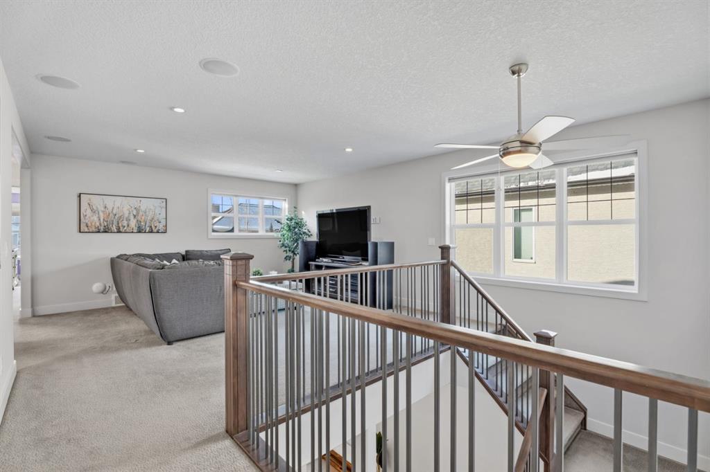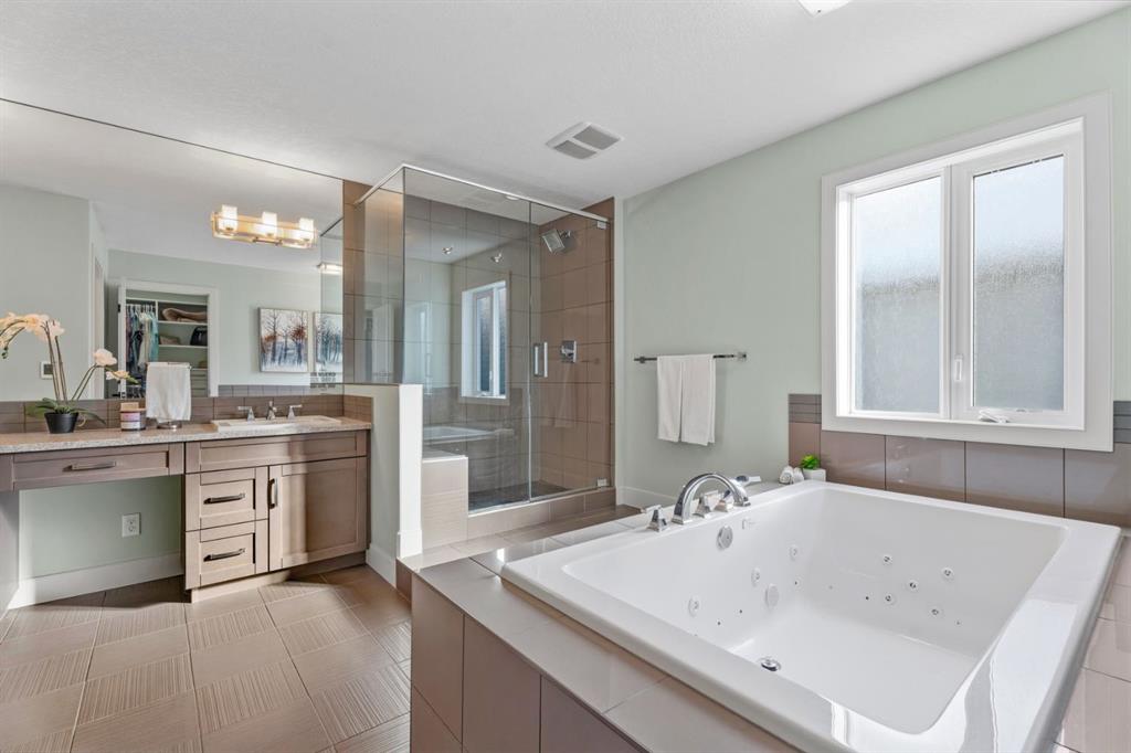 Located in the established estate area of Mahogany Waters, directly across from the private West Beach gate for lake access and just steps to a park, this impressive Baywest home offers the ideal blend of size, comfort, and lifestyle, along with the added benefit of quick access in and out of the community. Step inside to a spacious and welcoming tiled entryway that sets the tone for the rest of the home. With nearly 3,200 sq ft above grade, this home offers exceptional space and a bright, airy feel thanks to large windows that allow natural light to pour throughout the main living areas. The main floor is thoughtfully designed for both everyday living and entertaining, featuring a dedicated office that can easily function as a fifth bedroom. The open concept layout seamlessly connects the kitchen, dining, and living areas, creating an inviting space for family and guests. The kitchen is equipped with granite countertops, two toned upgraded cabinetry, a gas cooktop, wall oven, stainless steel appliances, and a butler’s pantry that functions as a prep space and additional storage. The large dining and living areas are anchored by a warm, inviting fireplace, while the covered back patio extends your living space outdoors. The main floor also features a large mudroom and powder room for added functionality. Upstairs, you’ll find four generously sized bedrooms and a bright, versatile bonus room with in ceiling surround sound. A beautiful upgraded railing enhances the staircase and upper hall, adding an elegant architectural touch while allowing even more natural light to flow through the home. The primary suite is a true retreat, offering a large walk in closet and an ensuite complete with heated floors, a soaker tub, tiled shower, and dual sinks. An upper level laundry room with a sink, cabinetry, and additional storage adds everyday convenience. The lower level presents an incredible opportunity to create something truly tailored to your needs with high ceilings and access from the front entry, the layout lends itself well to future multi-generational living, additional living space, or a potential income space. There is already a framed bedroom, with ample space for for you finishing touches. Additional highlights include an oversized double garage with a bump out for extra storage, smart lighting throughout, dual furnaces with A/C, Vacuflo system, bbq gas line, exterior hot & cold water tap, and a Kinetico water treatment system. The home has been well maintained with care and attention throughout. Beyond the home itself, Mahogany delivers one of Calgary’s most sought after lifestyles, with a 63 acre freshwater lake, private beaches, wetlands, year round recreation, extensive pathways, parks, schools, and vibrant shopping and dining all close by. This is a rare opportunity to own a spacious executive home in one of Mahogany’s most prestigious and established locations. Check out the virtual tour!