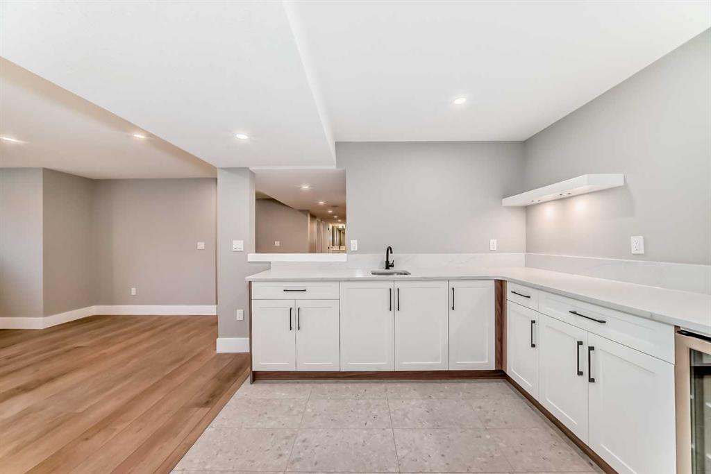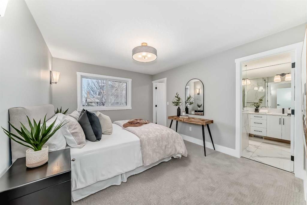 Stunning curb appeal for another wonderfully renovated home from MultiStar construction. Step inside to all newly constructed vaulted ceiling, showcasing the open concept throughout the main. Great room features electric fireplace, new skylights flooding the room with natural light and open to the kitchen cabinets complete with two toned cabinetry, a 36 inch Dacor gas cooktop, custom hoodfan, and Samsung state of the art 4 door fridge complete with interactive wifi door panel screen. There are garden doors with access to the fenced and private backyard and double detached garage plus there is a mudroom alcove with an abundance of cabinets and storage. Just down the hall is the primary bedroom, ensuite with heated floors , double sinks, large shower with multiple jets and the latest trend a toilet/bidet combination, feel the seat, its a comfortable 99F. Not to forget the walk in closet with built ins. Second bedroom and bath are across the hall. The lower level features a huge rec room and wet bar area, peninsula sit up bar facing the TV and a second built in electric fireplace. There are 2 more good sized bedrooms on hit level plus 3 pc bathroom. Laundry room has lots of built ins and sink plus quartz counters.. ALL new stucco exterior, new windows and doors, shingles 2025, furnace 2021, hot water tank 2025. Electrical panel updated 2025, plus 220 amp and panel in garage. Double heated garage features new epoxy flooring and is insulated and drywalled. Great quiet location walking distance to schools and shops, plus all lake and park access included.
