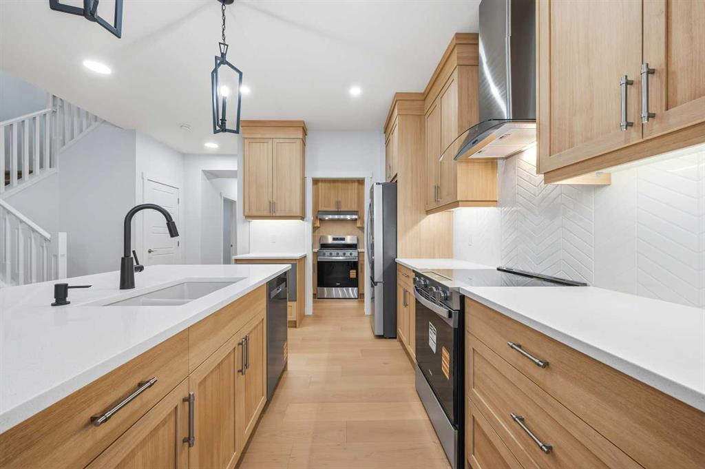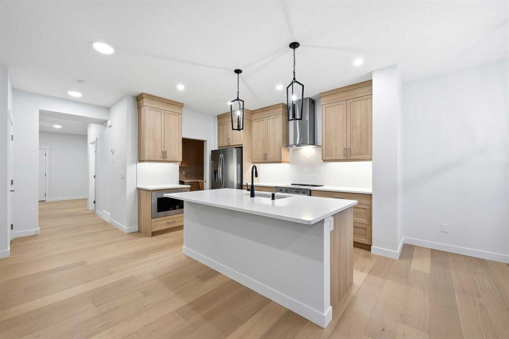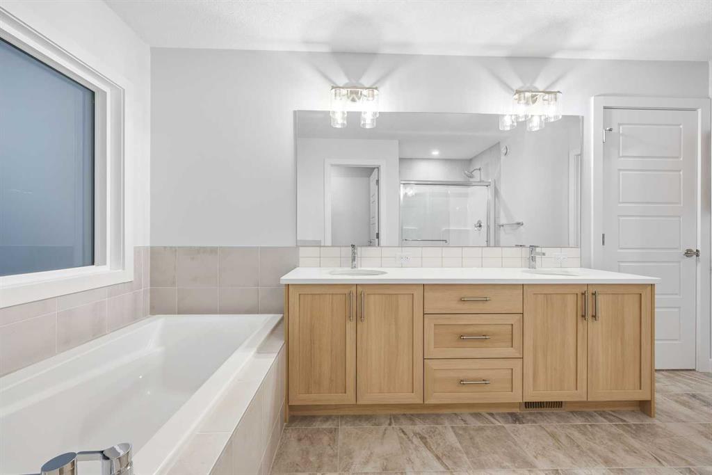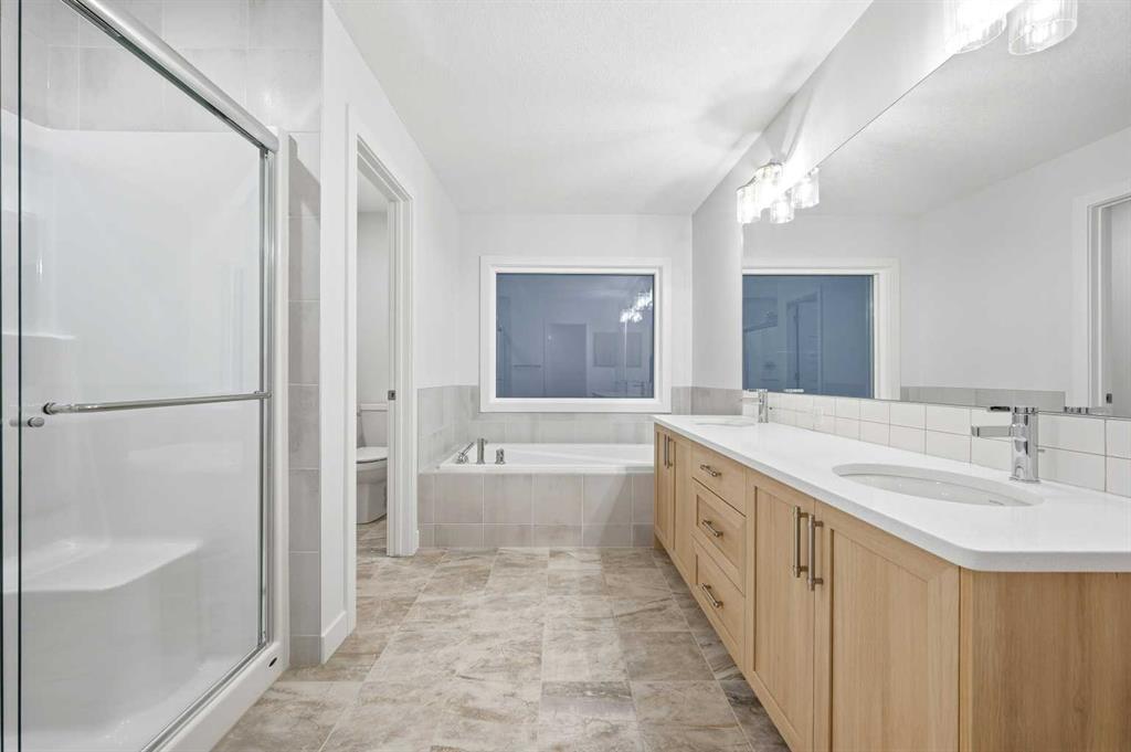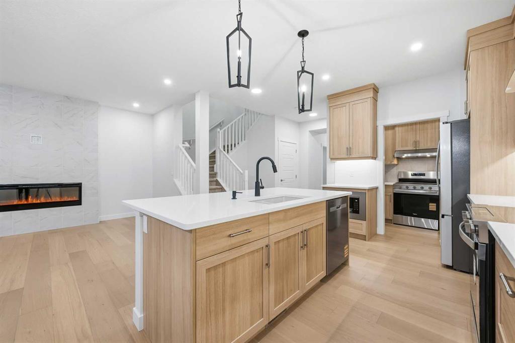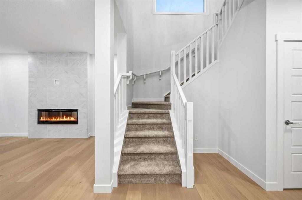 # Virtual Tour # 5 BED 4 FULL BATH | MAIN FLOOR BED ROOM,DEN & FULL BATH | SPICE KITCHEN | SIDE ENTRANCE | 2 MASTER BEDROOMS | Discover amazing value and the perfect blend of luxury and convenience in the sought-after community of Homestead .This 2 story Lawson model built by Trico Homes sits on EXTRA LONG 120 FT LOT and features 2,578 sq ft , 5 bedrooms, 4 full bathrooms, and an attached double garage. Upon Entering, you will be greeted by spacious foyer, a den on the left side and a bedroom on the right with a full Bath. The main level features an open-concept connecting the living room, kitchen, and dining nook. The gourmet kitchen is a chef's dream, with upgraded cabinets, a contrasting island with a convenient eating bar, quartz countertops, and upgraded stainless steel appliances, including an oversized fridge, built-in microwave, and a electric range. Additional highlights include soaring ceilings and a fully equipped SPICE KITCHEN with extra cabinetry, a GAS stove, and a sink. Vinyl plank flooring runs throughout the main floor for a sleek look. The great room offers ELECTRIC FIREPLACE wrapped around Tiles and sliding patio doors leading to a backyard. Upstairs, the open staircase with railing leads to a generously sized bonus room, 4large bedrooms Including 2 MASTER BEDROOMS , laundry room and 3 full bath. The master bedroom includes a walk-in closet and a luxurious 5-piece ensuite. Basement comes with a side entrance, 9 ft ceiling, 2 large egress windows, tankless hot water and a lot more. High-end finishes such as upgraded tile, lighting, and countertops elevate the home’s interior. Beyond the home itself, the community of Homestead is growing fast and smart—with major future amenities already approved, including two brand-new schools, a cricket pitch, a 3-acre community association site, a soccer field, pickleball and basketball courts, plus parks, ponds, and a 19-acre environmental wetland complete with a sheltered gazebo and over 4 kms of connected walking paths. This is a neighborhood built with lifestyle, recreation, and long-term value in mind—making it one of Calgary’s most exciting and well-planned new developments. This is more than a home—it’s a long-term investment in one of Calgary’s most promising, family-focused communities.