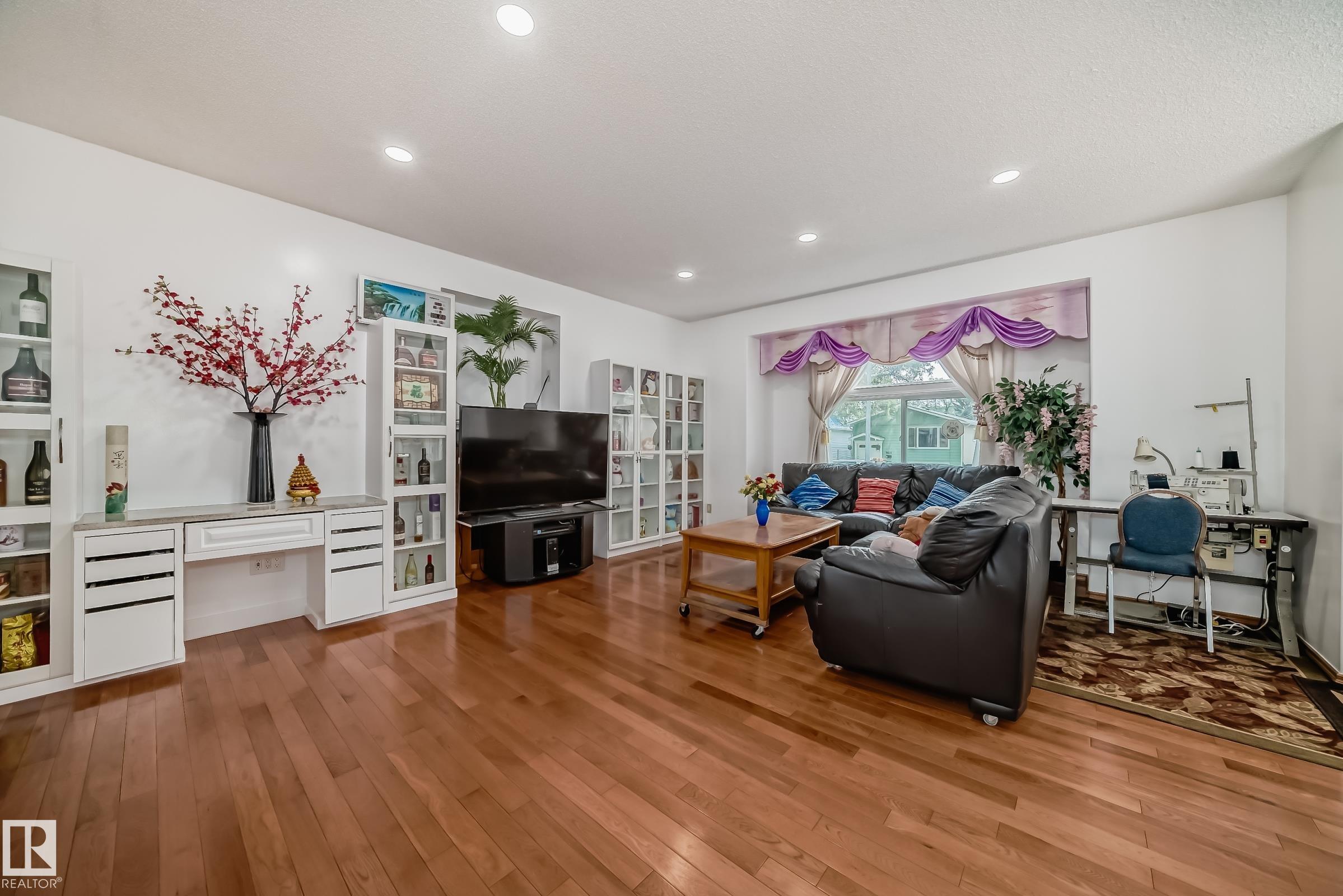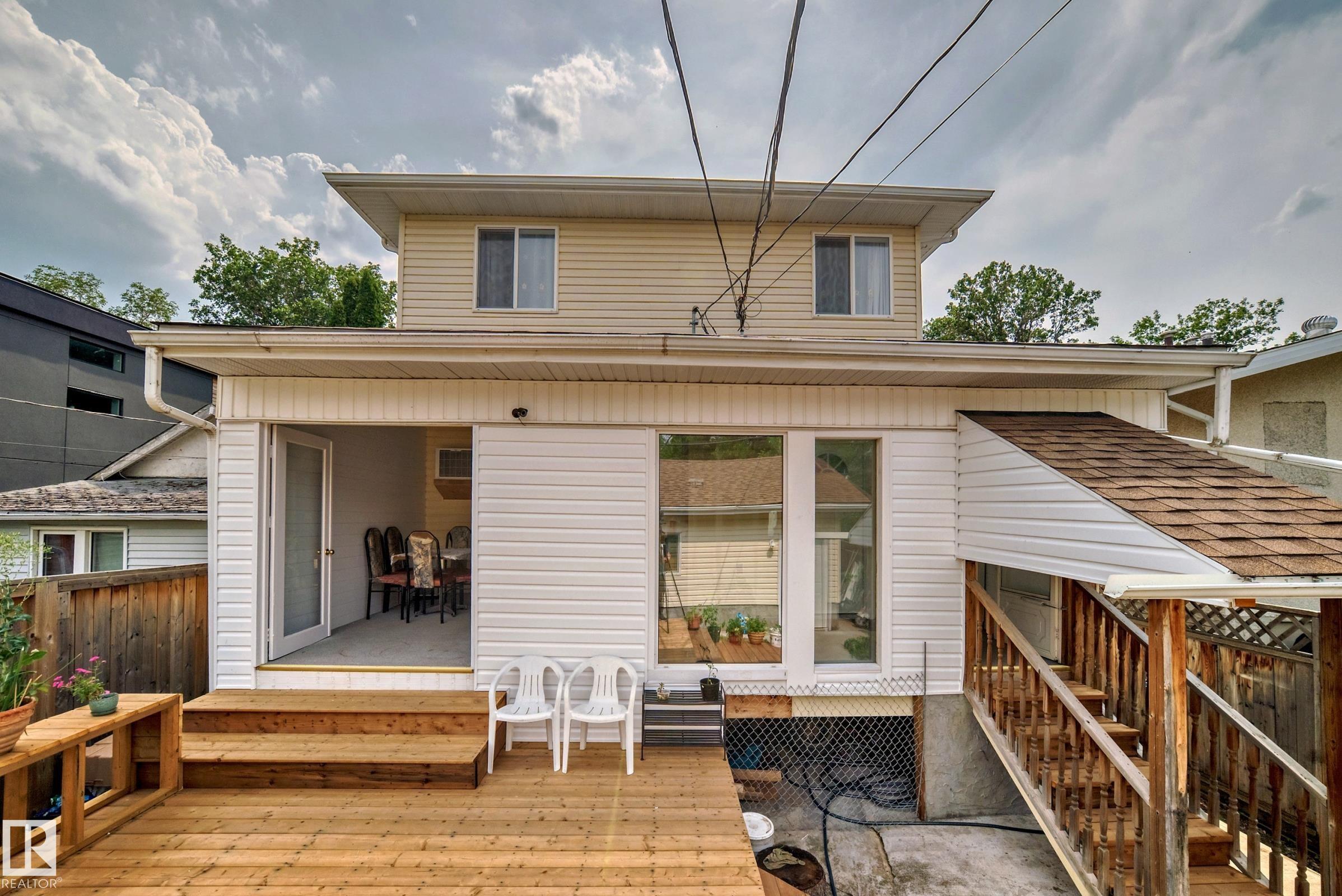 Custom built 2 storey with a total of 5 bedrooms and a second kitchen in basement located at the sought after Ritchie neighbourhood. High ceiling in foyer. Gleaming hardwood floor on main and stairways. Cozy living room with electric fireplace. Open kitchen with new light fixtures, white cabinets , granite countertops, central island, walk in pantry and ceramic tiled floor. Dining area with patio door to sunroom. Upstairs features 3 spacious bedrooms and 4 pcs bath. Primary bedroom with 5 pcs ensuite including jacuzzi and double sink. Basement has side door entry, 9'H ceiling and fully finished with kitchen, 2 bedrooms, 4pcs bath and laundry room. Low maintenance backyard with large new deck. Other outstanding features including Hi efficiency furnace, newer hot water tank, 2 sets of washer and dryer and new garage shingles. Conveniently located with close proximity to schools, bus, shops, ravine and easy access to U of A, Whyte Ave and downtown core. Excellent family home.