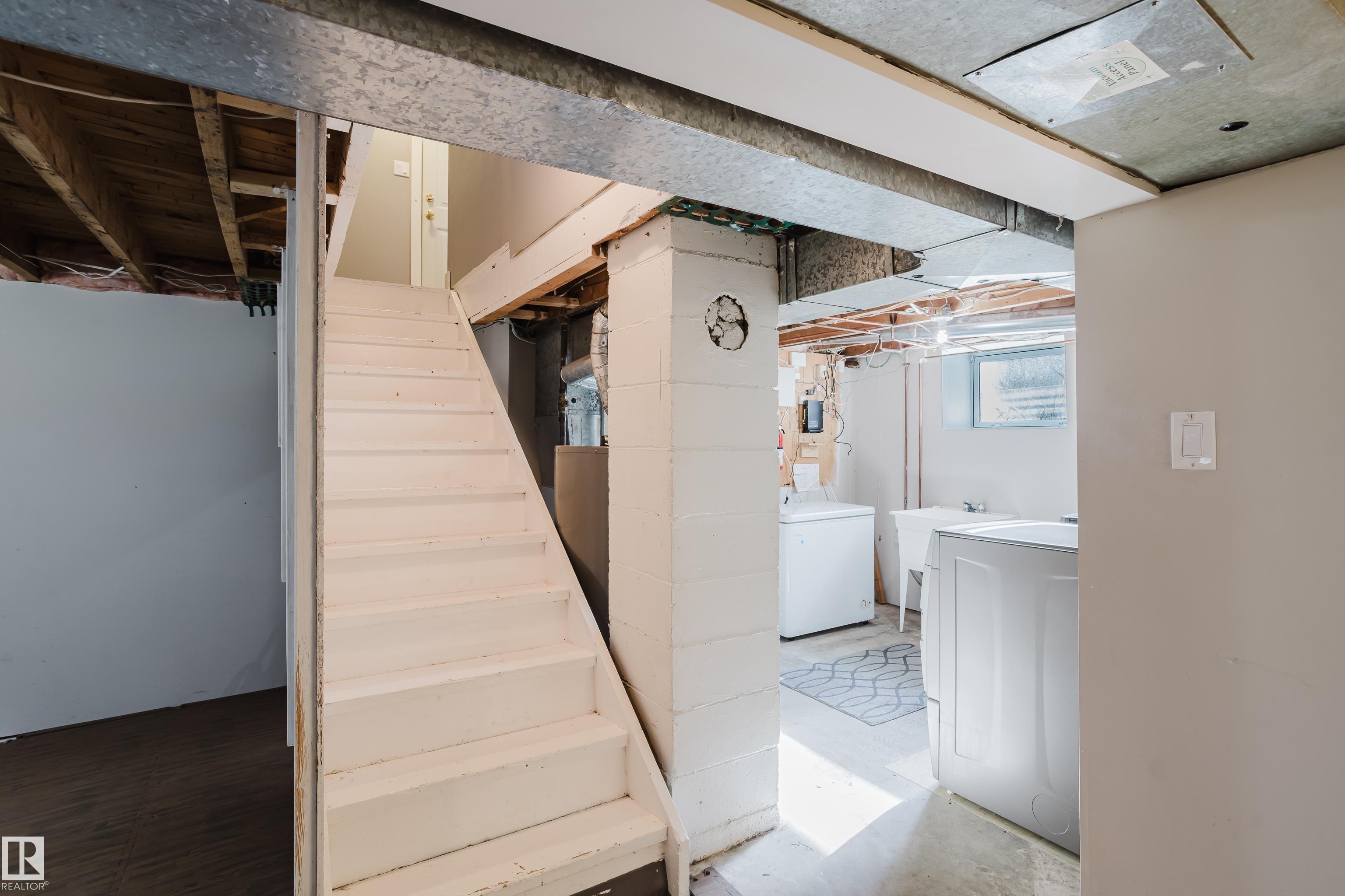 Welcome to family-friendly Glenwood! This Westend bungalow sits on a massive 50' x 150' lot—ideal for growing families who enjoy their privacy or savvy investors. The home has seen some upgrades over the years, including weeping tile, a sump pump, plumbing and electrical improvements to add peace of mind. The bright, open main floor features a welcoming living room and a functional kitchen with laminate flooring, perfect for family meals or entertaining. Two backyard sheds provide ample storage for bikes, tools, and seasonal gear. The partially finished basement offers lots of flexible space for a recreation room, home office, or future suite development. Surrounded by mature trees and green space, this home combines privacy with convenience. Schools, shopping, playgrounds, public transit, and major roadways are all nearby, making day-to-day living easy. Whether you’re looking for a starter home waiting for your imagination or a solid investment opportunity, this Glenwood gem checks all the boxes!