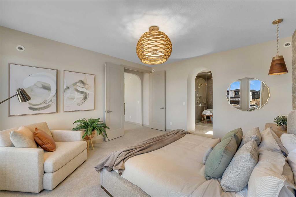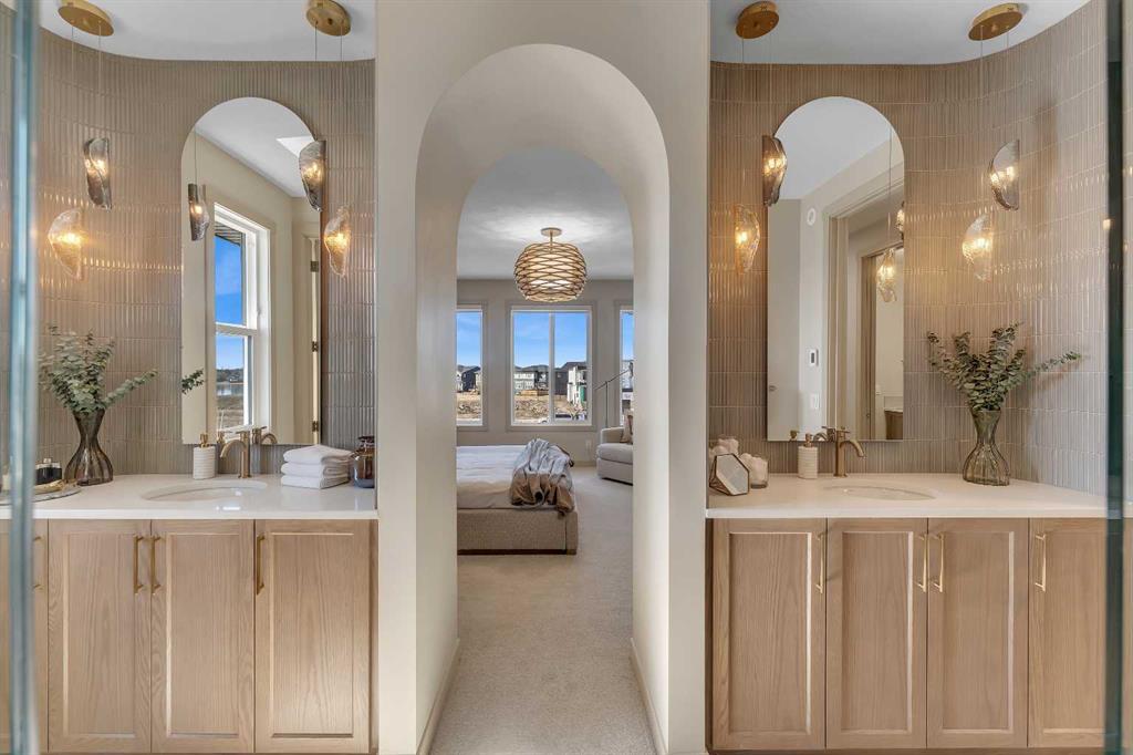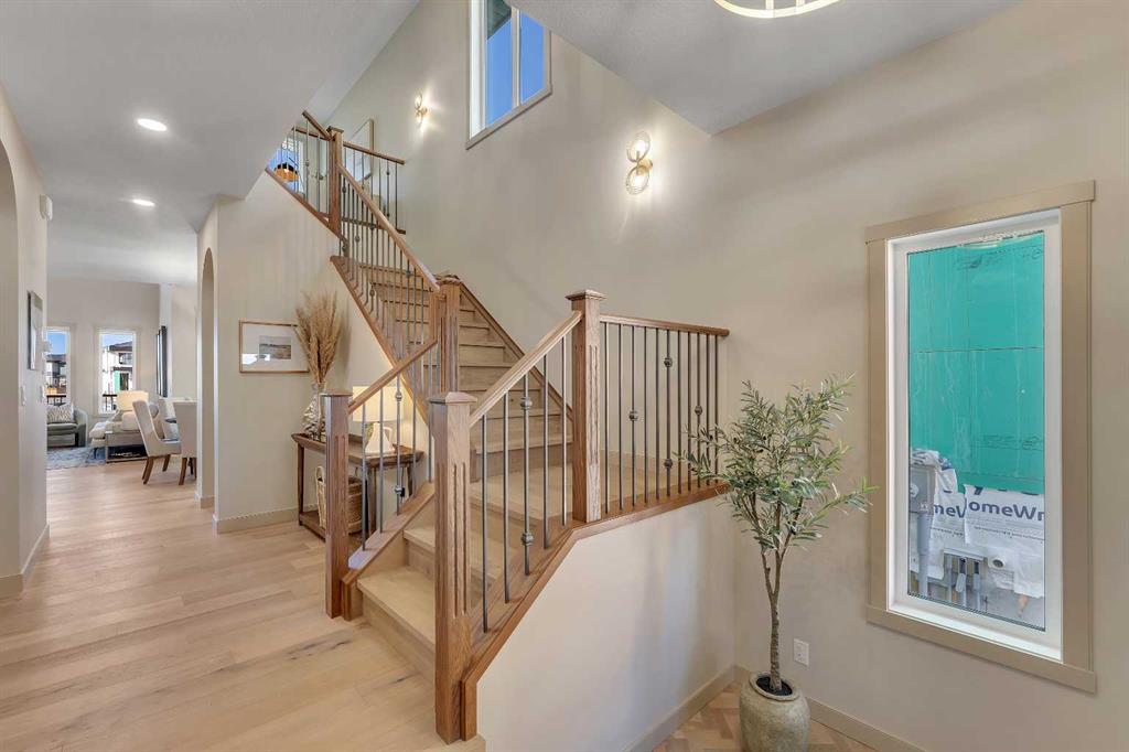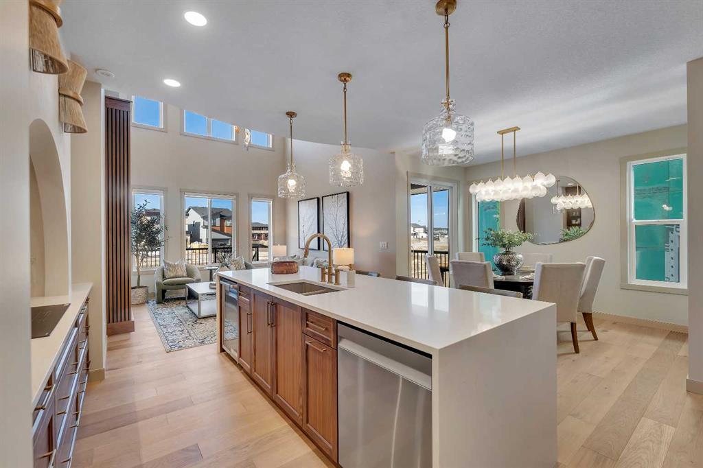 Step into a home that feels curated and luxurious, with European influence, soft lines, warm textures, and elevated by striking architectural details. Welcome to the Alliston at Home Show Home available for purchase with a leaseback. 973 South Shore Terrace is a fully finished, air-conditioned masterpiece offering over 4,400 sq ft with 7 bedrooms, 6 bathrooms, a main-floor bedroom with an ensuite and an additional powder room, a main-floor office, a spice kitchen, and an oversized garage. The main floor is designed to impress with a bright, open layout and engineered hardwood floors that span the entire space. The kitchen takes center stage with floor-to-ceiling cabinetry, a spacious waterfall island, and a sleek stainless steel appliance package that will please the home's chef, along with an attached spice kitchen featuring a gas range and additional prep space. The space flows naturally into the dining and living areas, perfect for entertaining, while the two-story great room boasts striking windows that flood the space with natural light, anchored by a stunning focal-point fireplace. Just off the main living area, a private office offers the perfect balance of productivity and quiet. The main-floor bedroom, complete with an ensuite bath, provides exceptional convenience, while the additional powder room on this level adds to the home's functional design. The mudroom and ample storage keep all your essentials organized with access from the oversized garage. Upstairs, the space opens beautifully with an airy "open-to-below" feature that adds both drama and light. The primary suite feels like a boutique hotel retreat, complete with a spacious walk-in closet and a spa-inspired ensuite designed for unwinding at the end of the day. The additional three bedrooms upstairs all feature walk-in closets, with two of the bedrooms sharing a luxurious 5-piece ensuite. An additional full bathroom functions perfectly for the third bedroom, while a convenient laundry room completes the upper level, making everyday chores a breeze. The fully finished basement extends the living space even further, featuring a wet bar, the 6th and 7th bedrooms, and a full bathroom. This lower level also has its own separate entrance, adding flexibility for guests or multi-generational living arrangements. Whether it's movie nights, a home gym, or a games area, this space is designed to adapt to your lifestyle. Every inch of this home has been carefully considered from the flow to the finishes, creating a space that feels elevated yet livable, polished and welcoming. Living in South Shore, Chestermere is one of the most sought-after communities, offering a lifestyle hard to replicate. With the lake just minutes away, you'll spend summers on the water, paddleboarding, boating, or simply enjoying sunset walks along the shoreline. The community is thoughtfully planned with pathways, parks, and green spaces woven throughout, creating a true neighborhood feel. Quick access to Calgary makes commuting easy