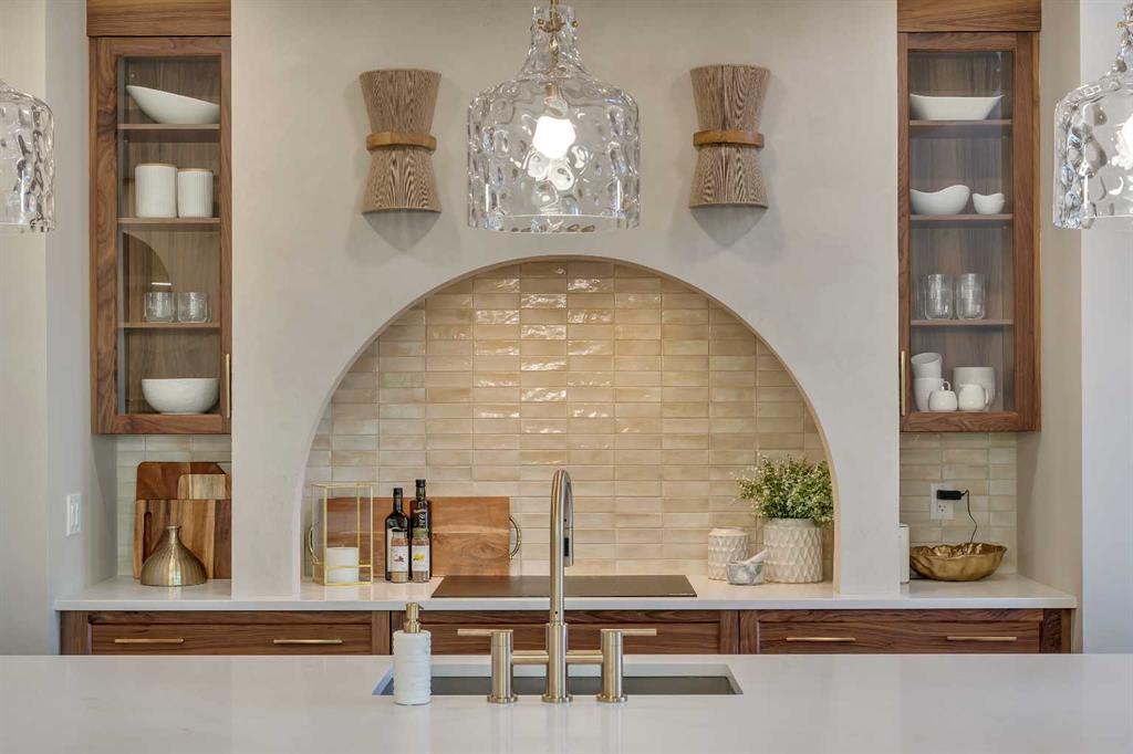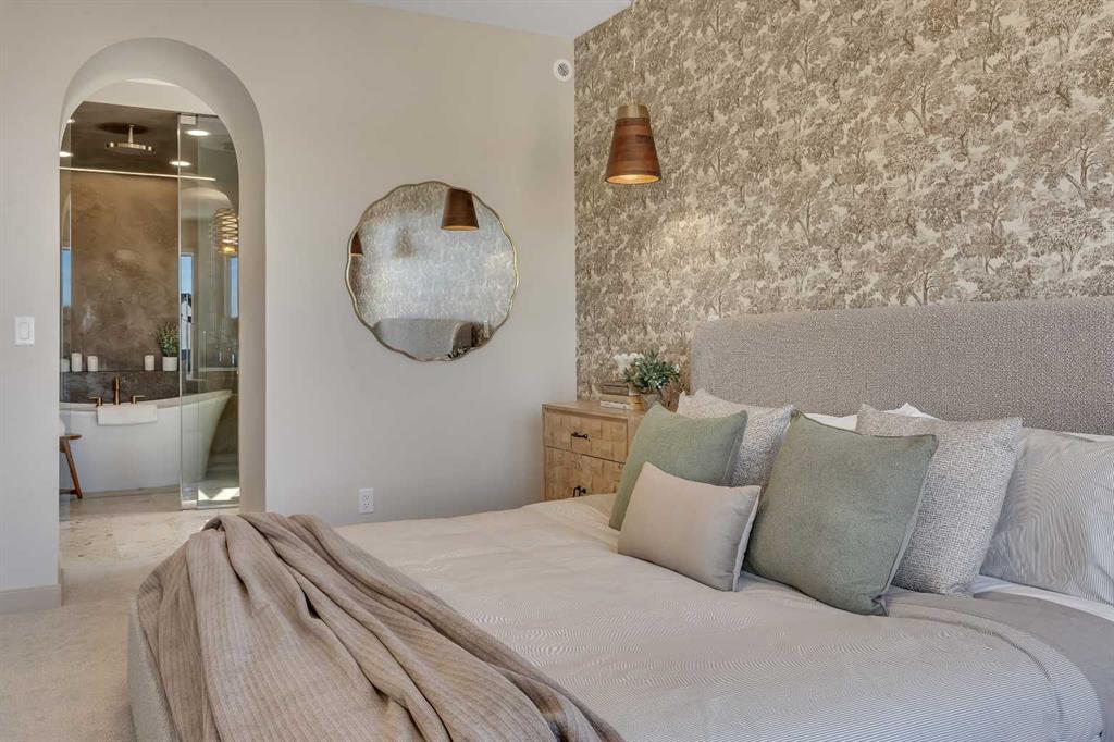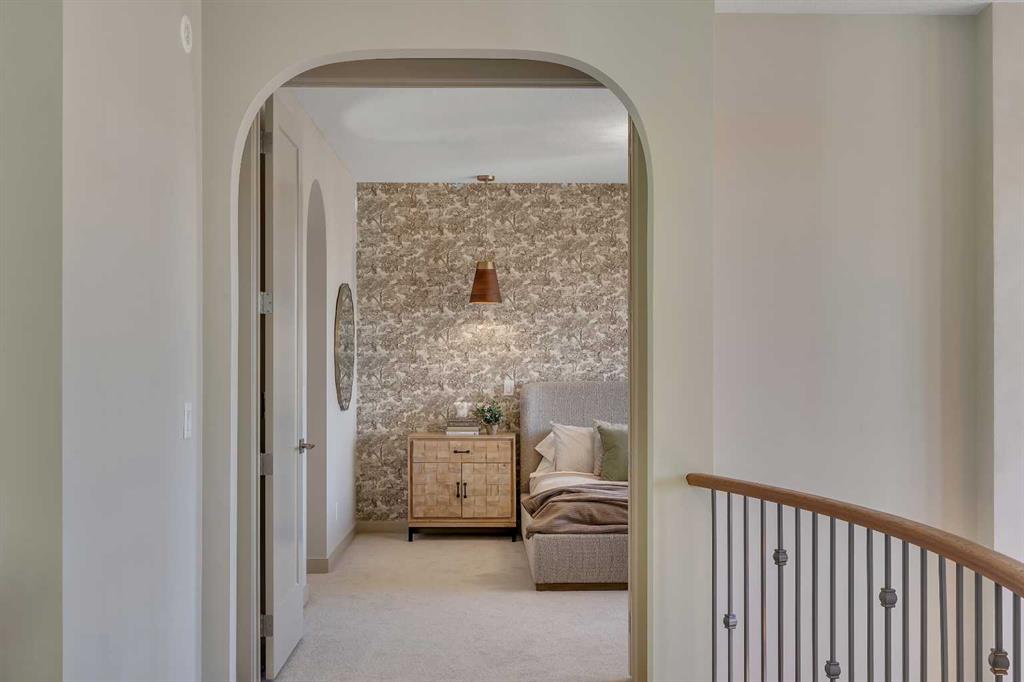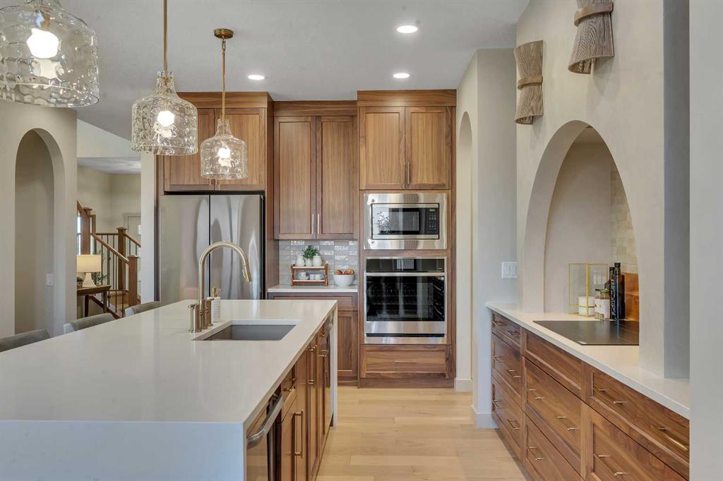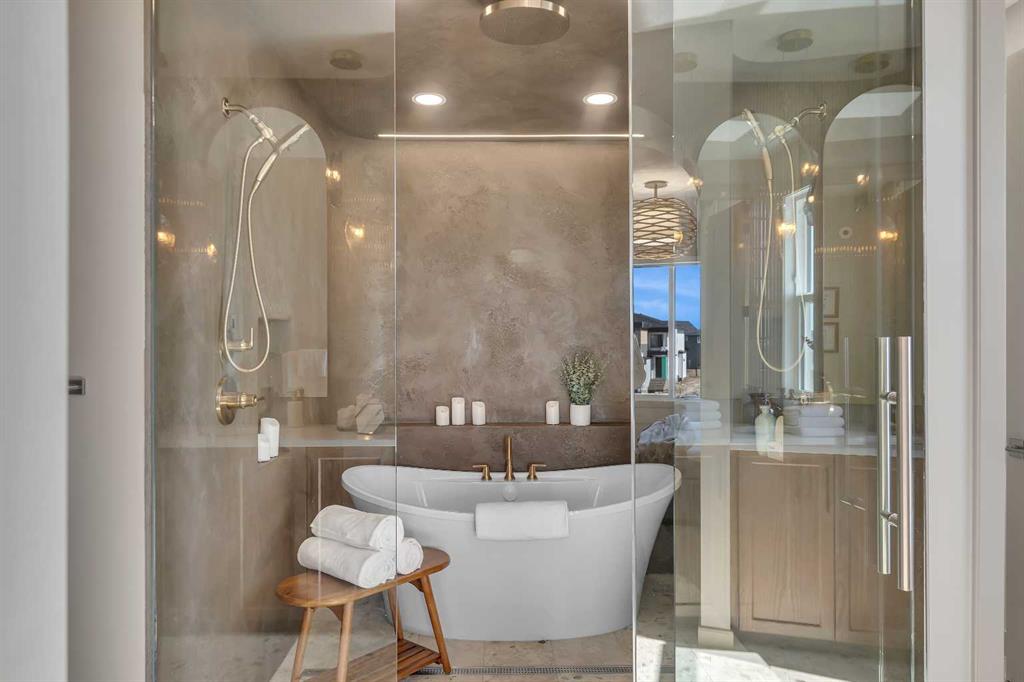 Step into a home that feels curated and luxurious, with European influence, soft lines, warm textures, and elevated by striking architectural details. Welcome to the Alliston at Home Show Home available for purchase with a leaseback. 973 South Shore Terrace is a fully finished, air-conditioned masterpiece offering over 4,400 sq ft with 7 bedrooms, 6 bathrooms, a main-floor bedroom with an ensuite and an additional powder room, a main-floor office, a spice kitchen, and an oversized garage. The main floor is designed to impress with a bright, open layout and engineered hardwood floors that span the entire space. The kitchen takes center stage with floor-to-ceiling cabinetry, a spacious waterfall island, and a sleek stainless steel appliance package that will please the home's chef, along with an attached spice kitchen featuring a gas range and additional prep space. The space flows naturally into the dining and living areas, perfect for entertaining, while the two-story great room boasts striking windows that flood the space with natural light, anchored by a stunning focal-point fireplace. Just off the main living area, a private office offers the perfect balance of productivity and quiet. The main-floor bedroom, complete with an ensuite bath, provides exceptional convenience, while the additional powder room on this level adds to the home's functional design. The mudroom and ample storage keep all your essentials organized with access from the oversized garage. Upstairs, the space opens beautifully with an airy "open-to-below" feature that adds both drama and light. The primary suite feels like a boutique hotel retreat, complete with a spacious walk-in closet and a spa-inspired ensuite designed for unwinding at the end of the day. The additional three bedrooms upstairs all feature walk-in closets, with two of the bedrooms sharing a luxurious 5-piece ensuite. An additional full bathroom functions perfectly for the third bedroom, while a convenient laundry room completes the upper level, making everyday chores a breeze. The fully finished basement extends the living space even further, featuring a wet bar, the 6th and 7th bedrooms, and a full bathroom. This lower level also has its own separate entrance, adding flexibility for guests or multi-generational living arrangements. Whether it's movie nights, a home gym, or a games area, this space is designed to adapt to your lifestyle. Every inch of this home has been carefully considered from the flow to the finishes, creating a space that feels elevated yet livable, polished and welcoming. Living in South Shore, Chestermere is one of the most sought-after communities, offering a lifestyle hard to replicate. With the lake just minutes away, you'll spend summers on the water, paddleboarding, boating, or simply enjoying sunset walks along the shoreline. The community is thoughtfully planned with pathways, parks, and green spaces woven throughout, creating a true neighborhood feel. Quick access to Calgary makes commuting easy