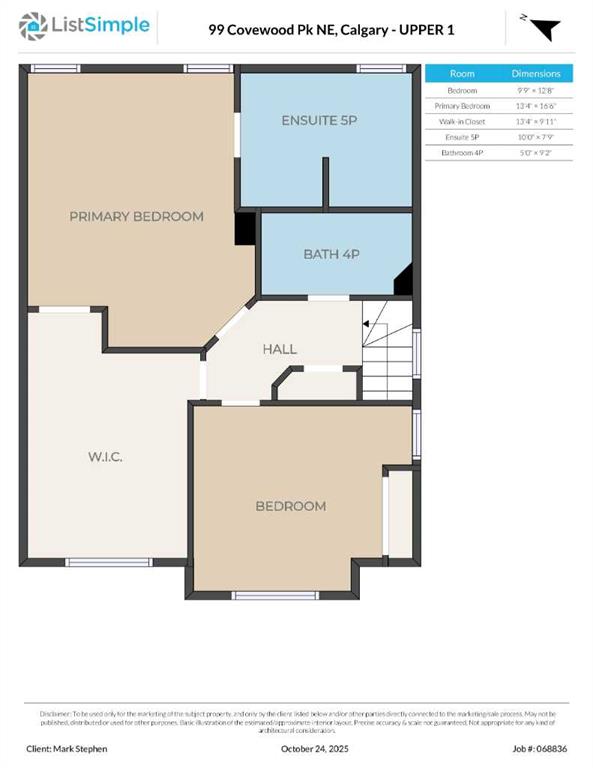 | Bedroom - Primary | 13`4" x 16`6" | Upper |